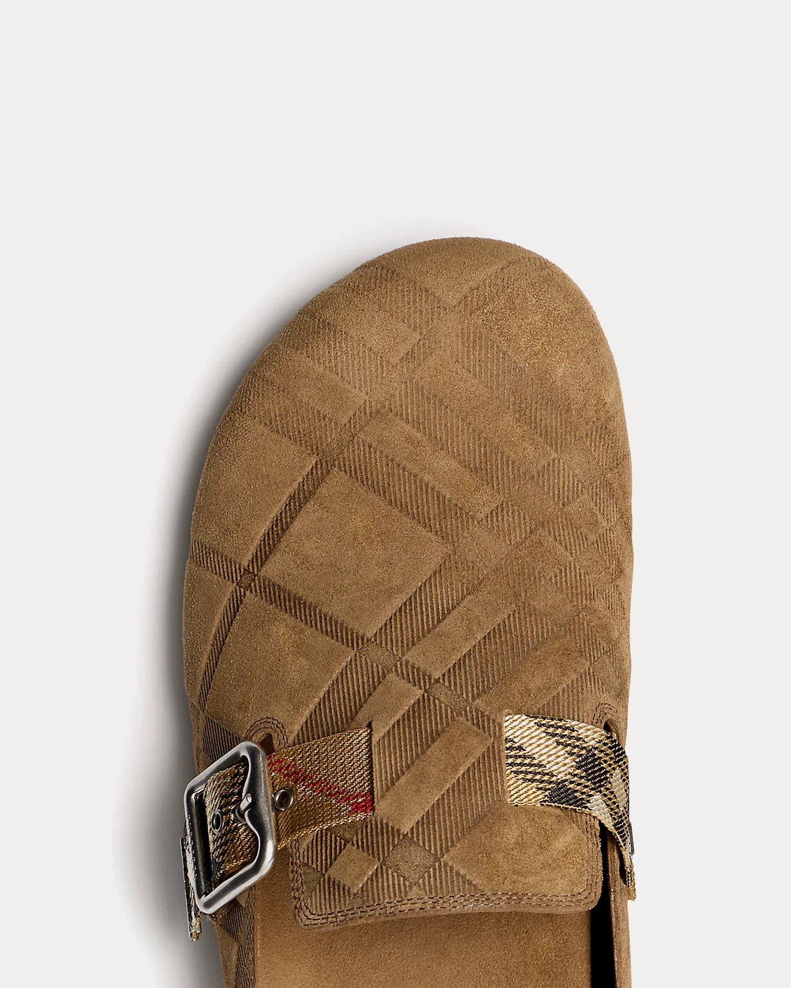 Une bride réglable à boucle B, finement tissée en jacquard avec l’emblématique Burberry Check, ajoute une touche signature de style britannique intemporel. Conçus pour la polyvalence et le confort, ces sabots allient harmonieusement tradition et modernité pour une déclaration sophistiquée dans n’importe quelle garde-robe.