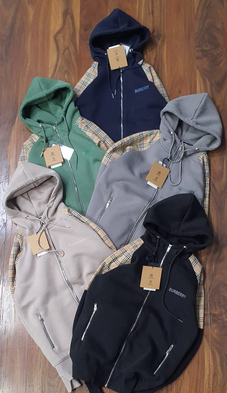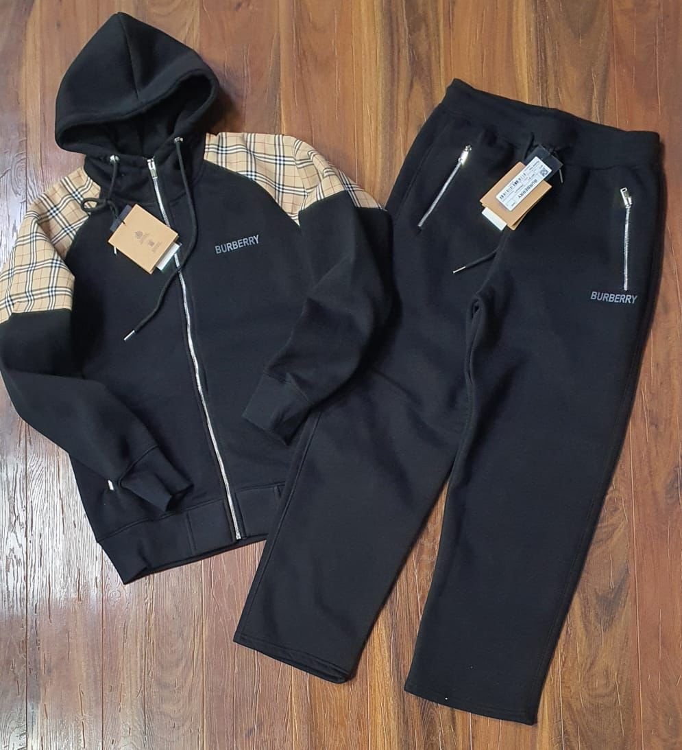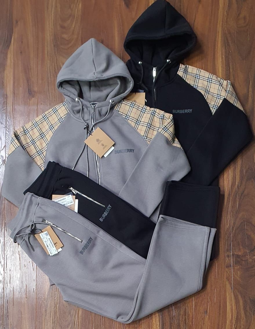 BURBERRY || Survêtement à capuche zippé et à empiècements à carreaux vintage pour hommeBURBERRY || Survêtement à capuche zippé et à empiècements à carreaux vintage pour homme