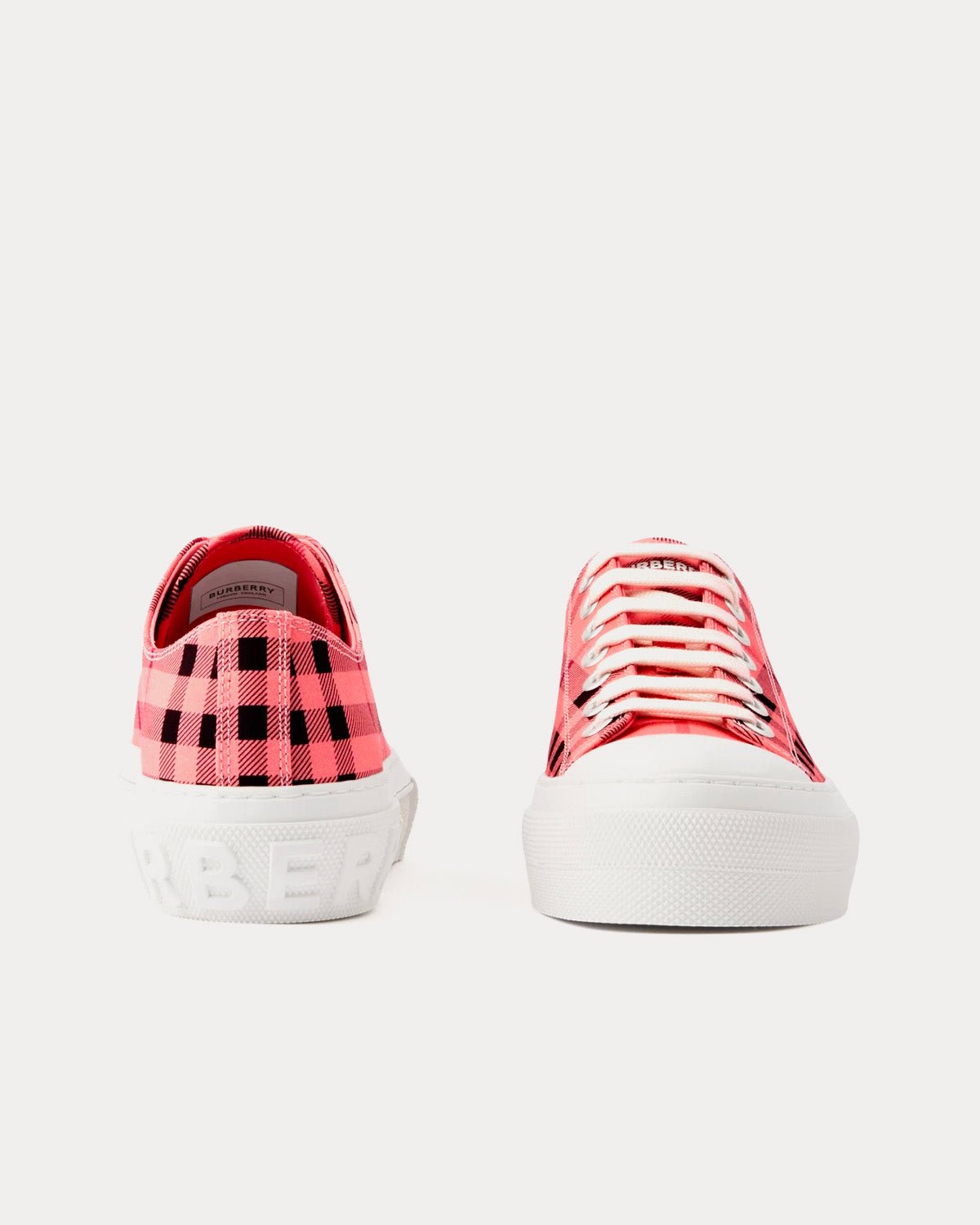 Baskets basses Burberry en coton à carreaux rose bonbonBaskets basses Burberry en coton à carreaux rose bonbon