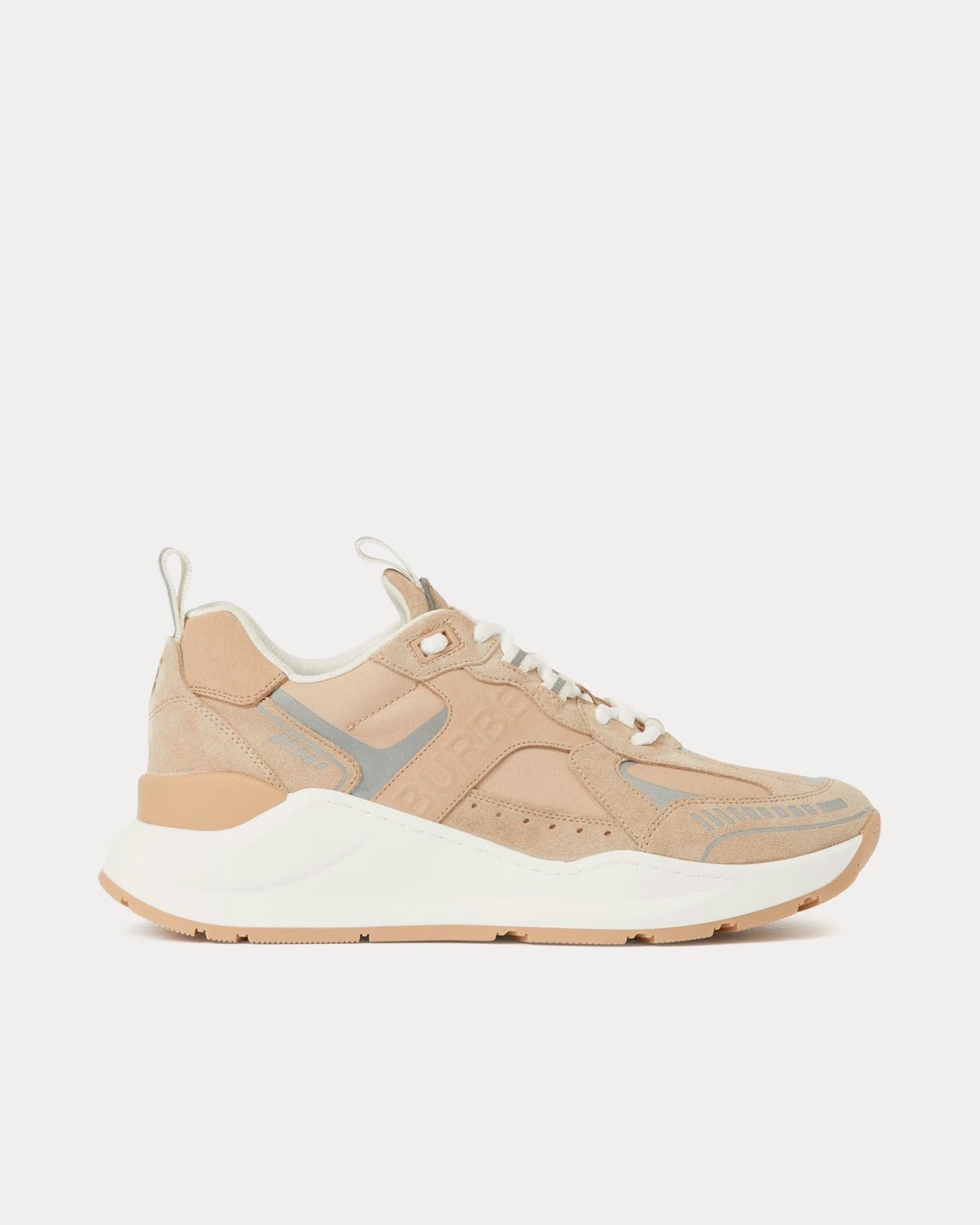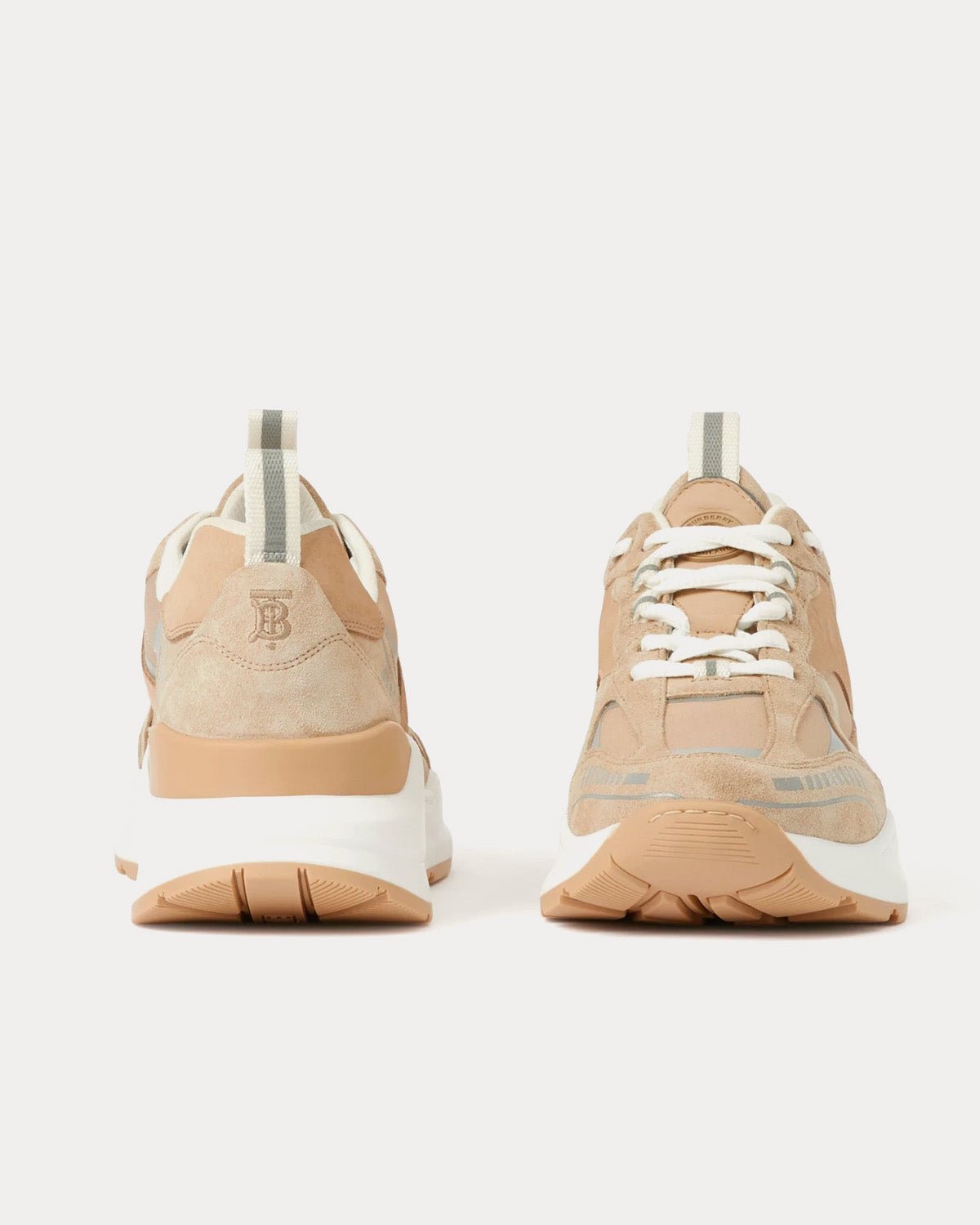 Baskets basses Burberry à carreaux, daim et coton, fauve doux / pêche poudré