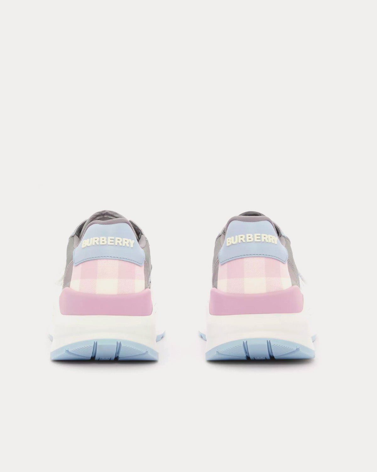 Baskets basses Burberry en cuir, daim et nylon à carreaux gris pâleBaskets basses Burberry en cuir, daim et nylon à carreaux gris pâle