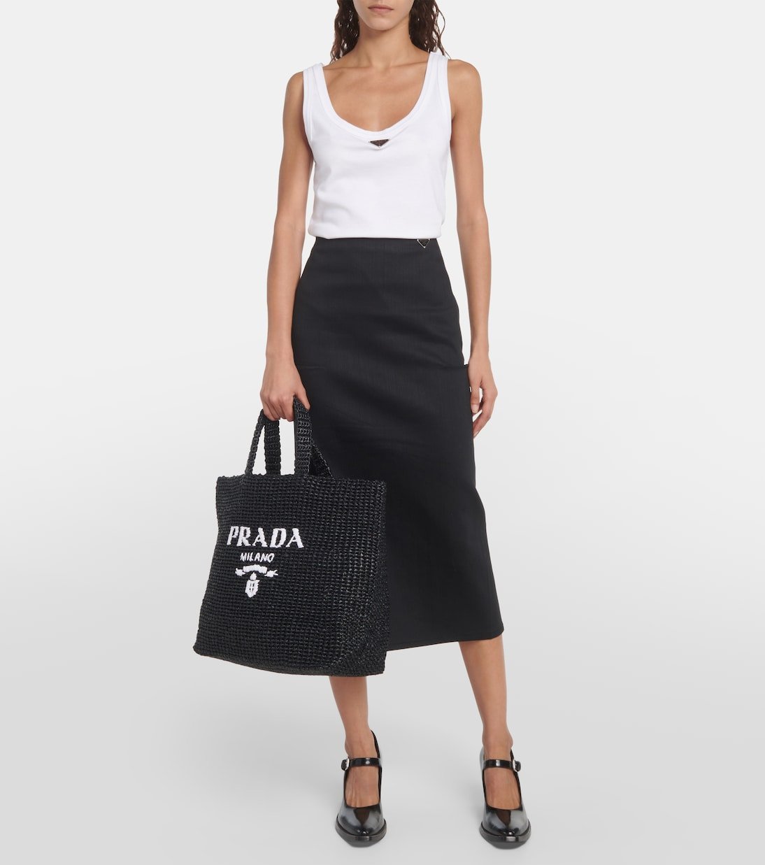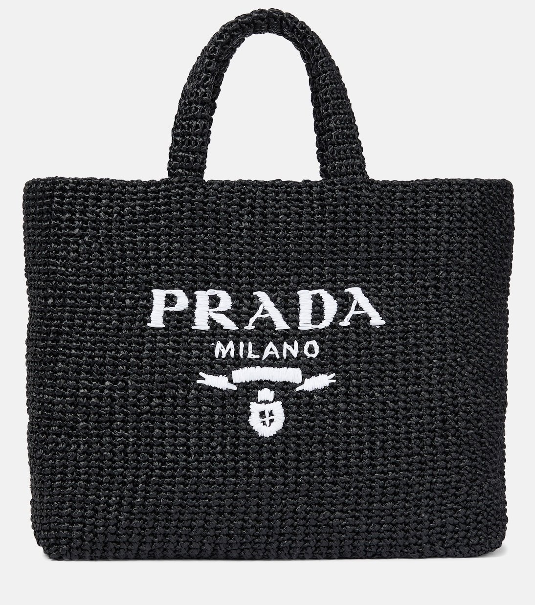 Ce cabas effet raphia de Prada sera votre allié tout au long de l’été. Il est relevé d’un tissage serré et agrémenté du logo brodé sur le devant.