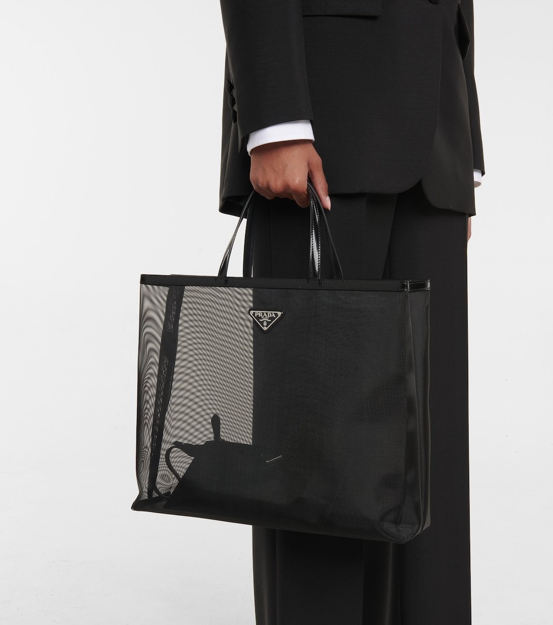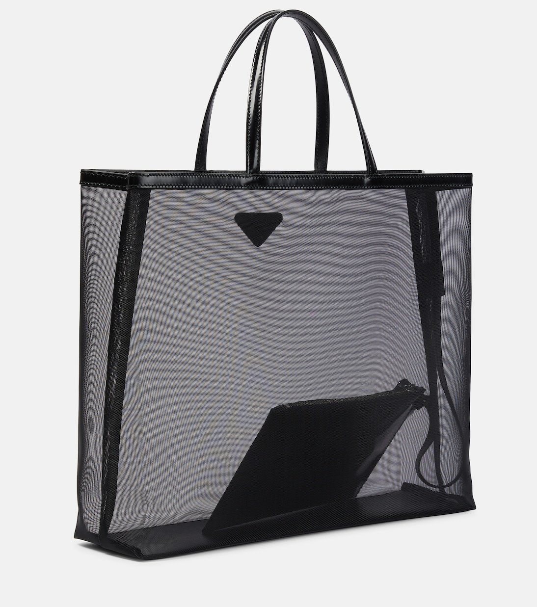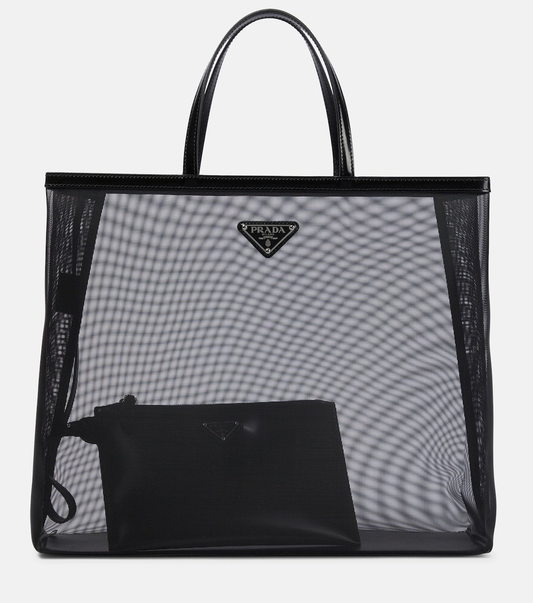 Parfait pour les journées au bureau ou en rendez-vous, le cabas Large de Prada vous séduira par son format spacieux. Confectionné en résille rigide noire, il est bordé de finitions en cuir qui répondent à la pochette siglée intérieure.