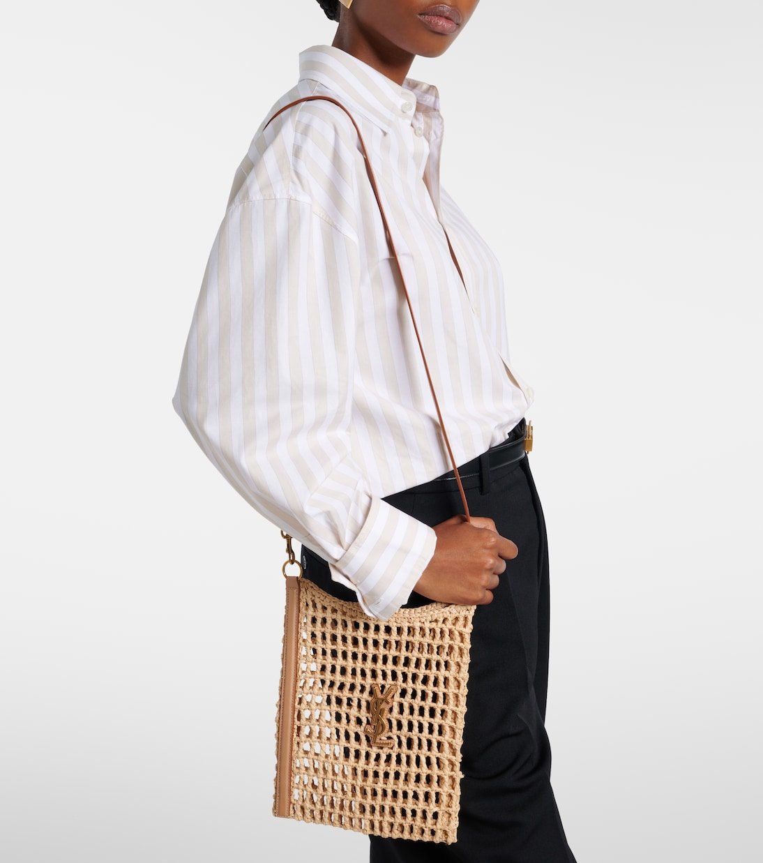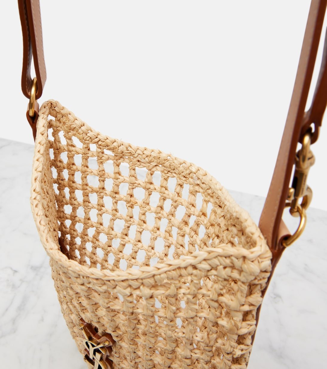 Le cabas Oxalis de Saint Laurent est idéal pour les journées de vacances ensoleillées. Crocheté à la main en raphia et bordé de cuir, ce modèle Mini arbore le monogramme Cassandre signature de la maison sur le devant.