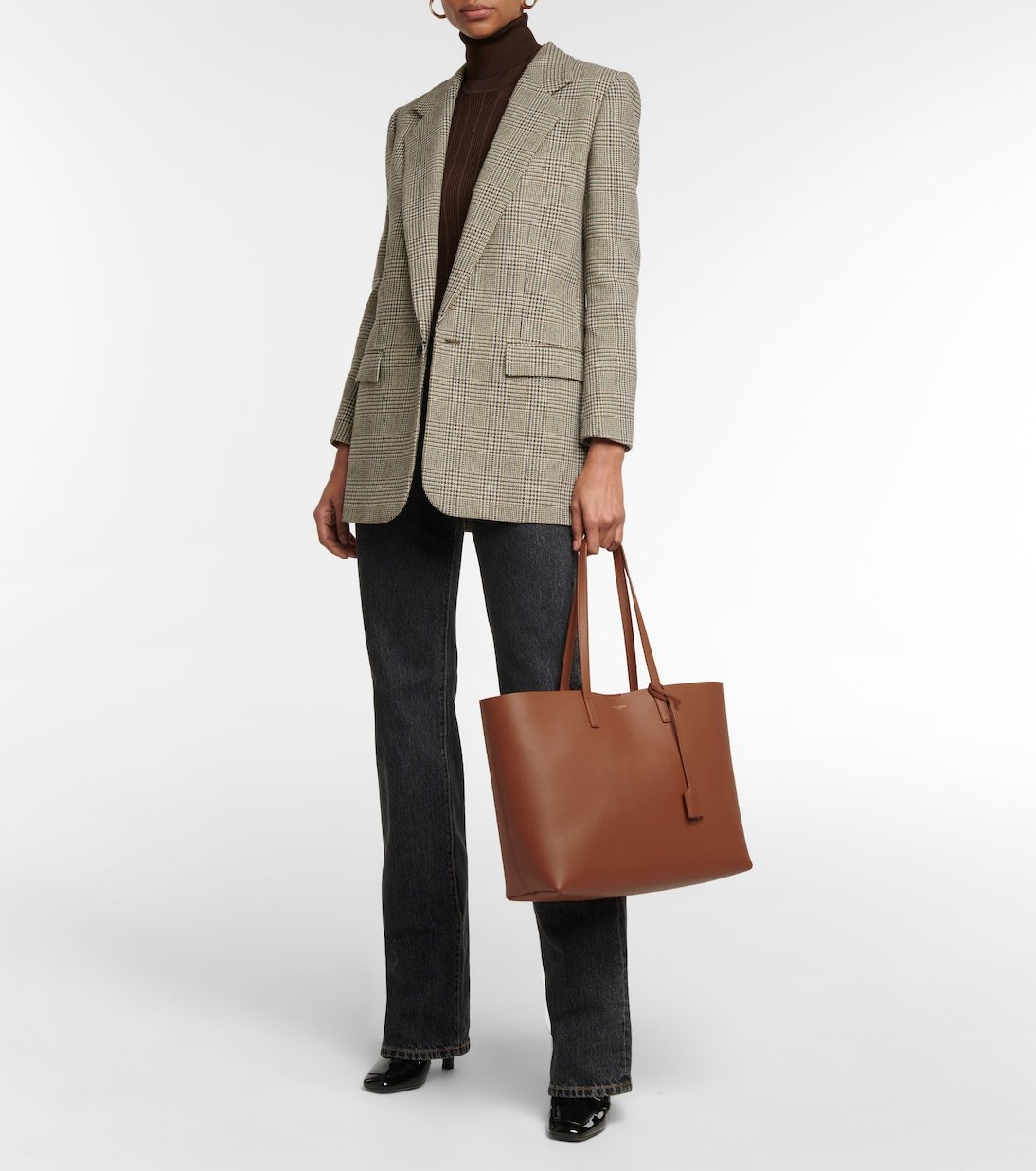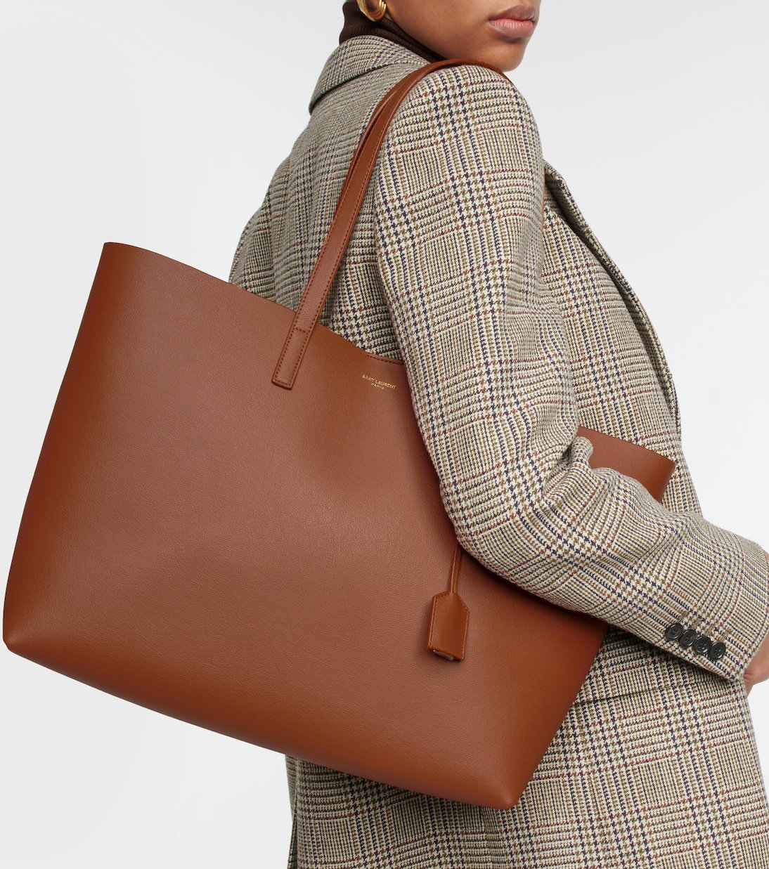 Simplifiez-vous la vie avec le cabas Shopping E/W de Saint Laurent. Réalisé en cuir marron foncé, il est doté d’anses supérieures qui permettent de le porter aisément, tandis que son intérieur spacieux accueillera tout ce dont vous avez besoin.