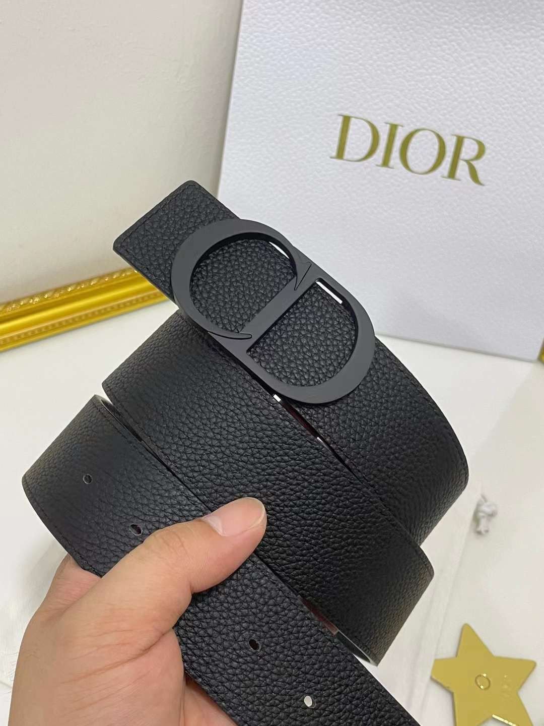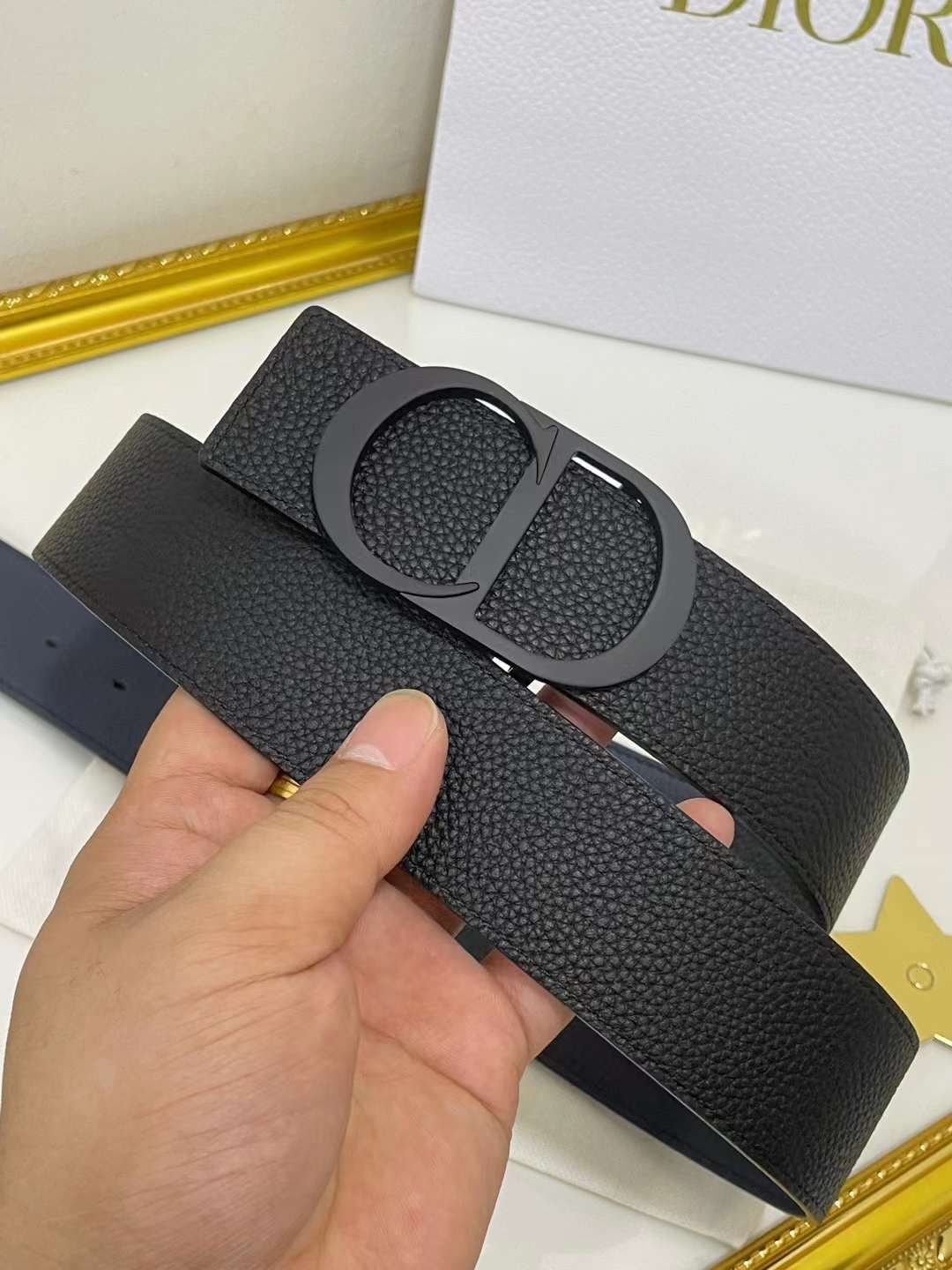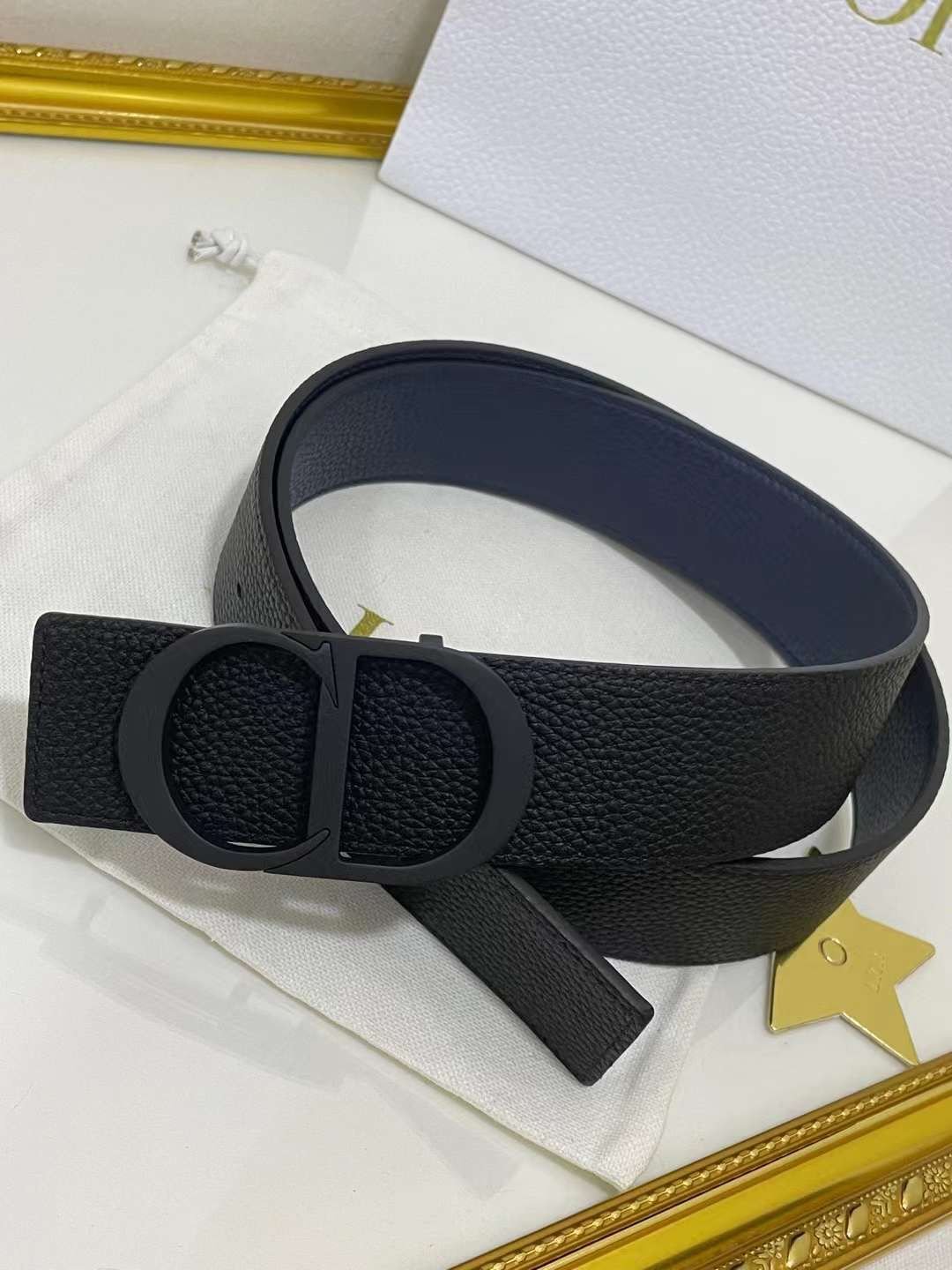 Ceinture réversible Christian Dior Homme en cuir de veau grainé GHW (Noir/Bleu Marine)