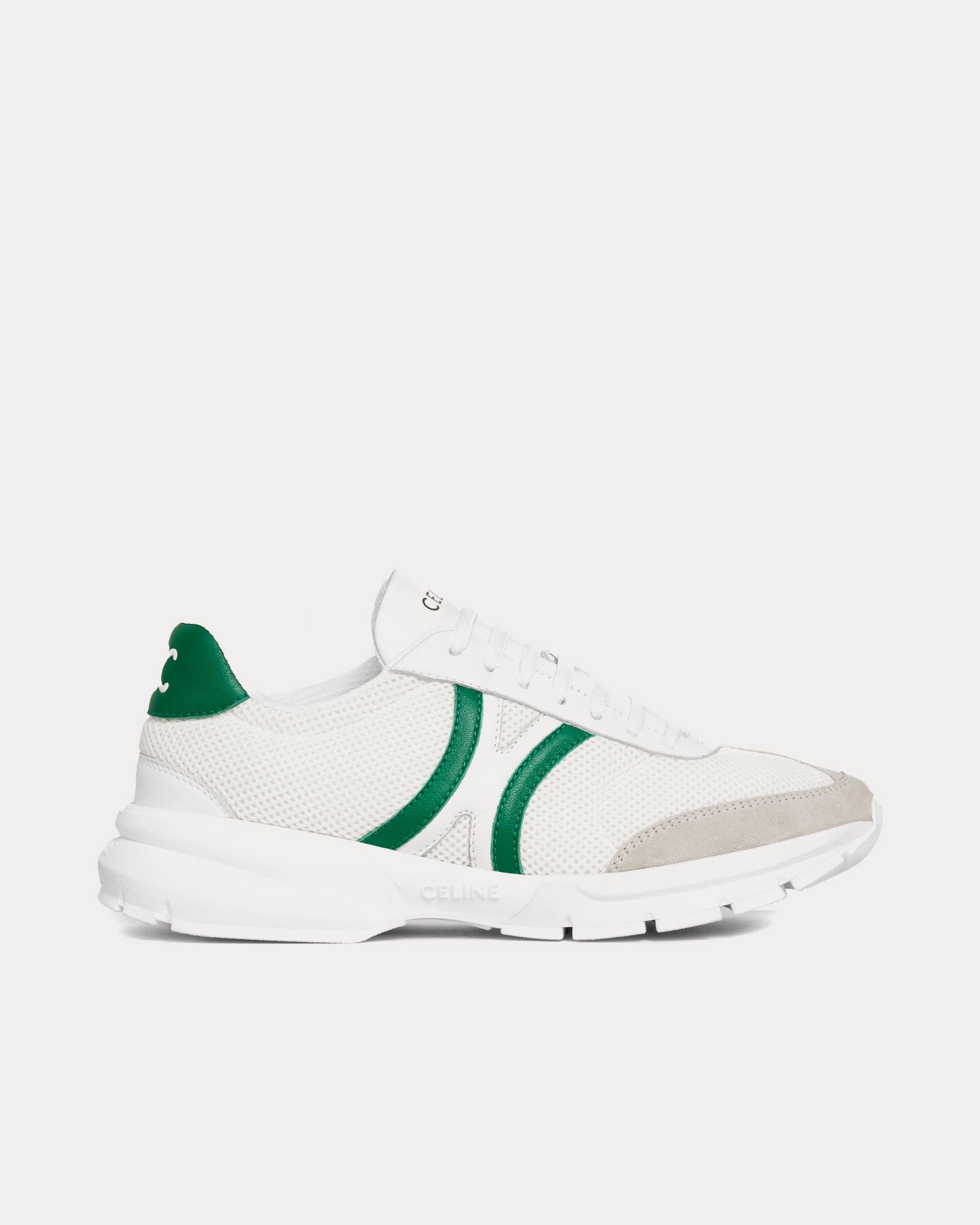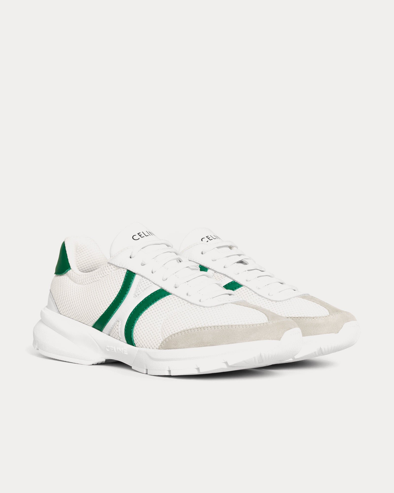 Baskets basses Celine CR-01 Runner en mesh, cuir de veau et daim blanc optique / vert / gris