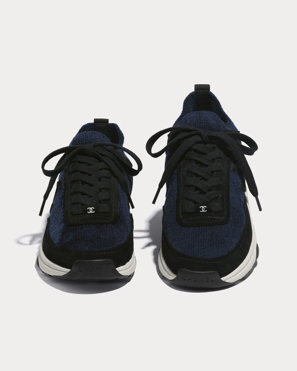 Baskets basses Chanel en tissu et cuir de veau suédé bleu et noir