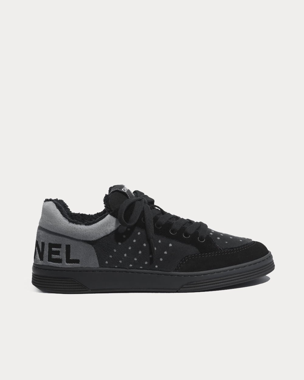 Baskets basses Chanel en tissu et cuir de veau suédé gris