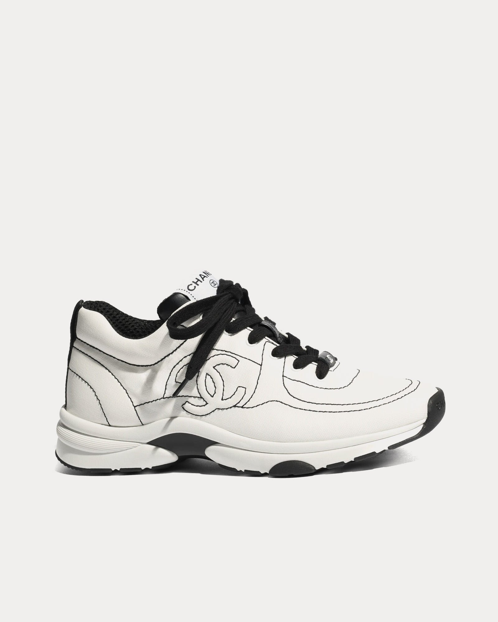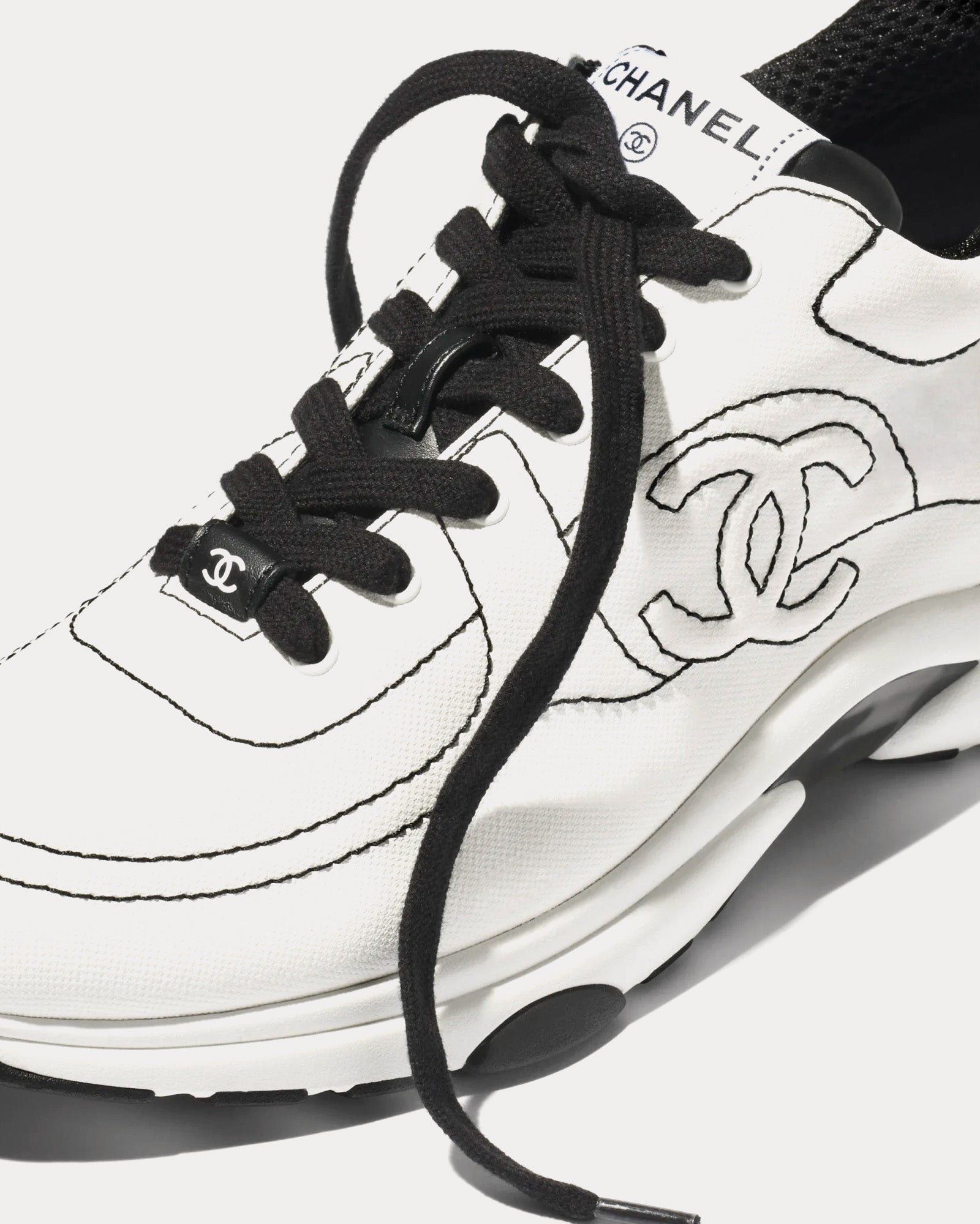 Baskets basses Chanel en coton blanc/noirBaskets basses Chanel en coton blanc/noir