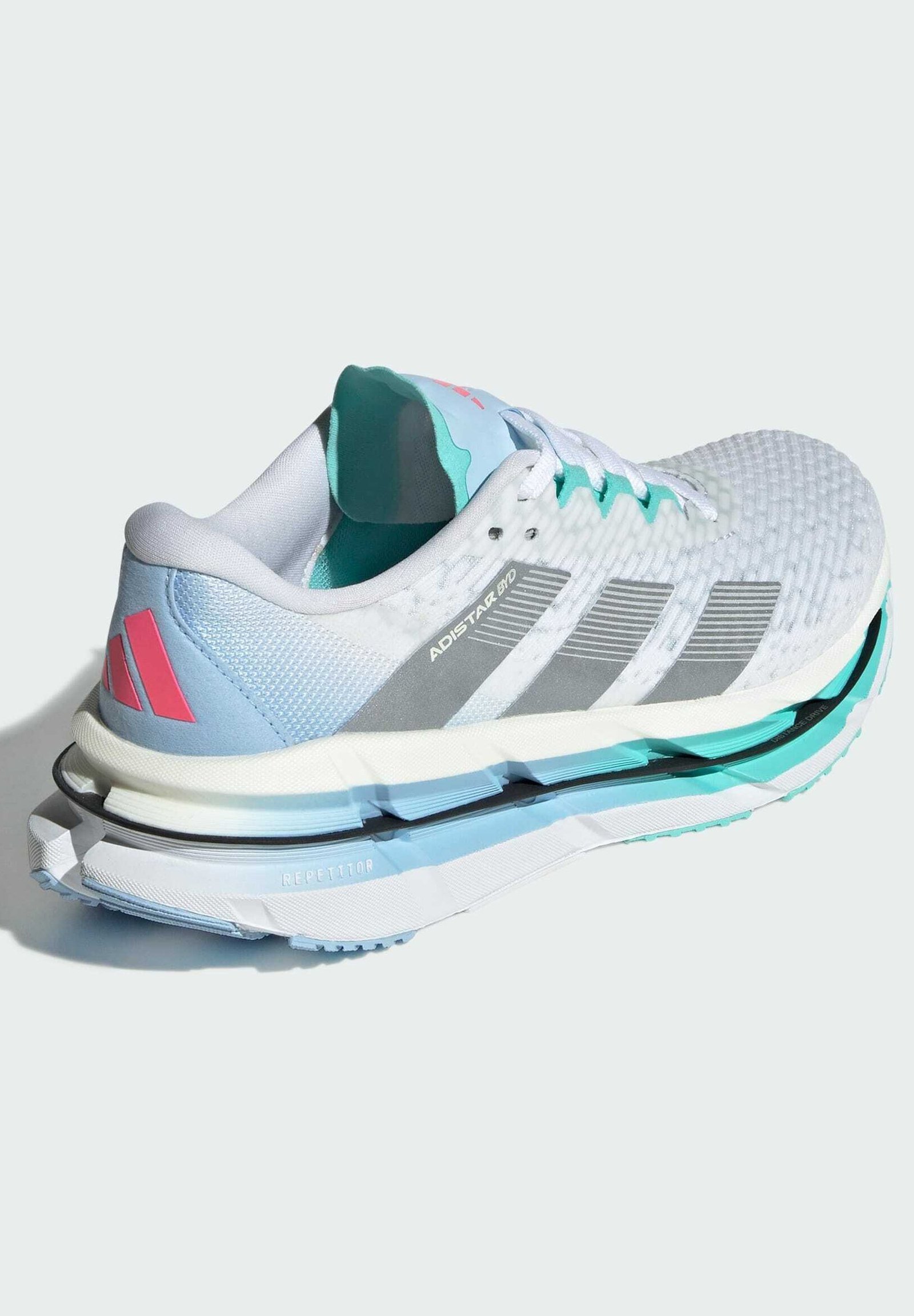 Matière et entretien Dessus / Tige : Textile Doublure : Textile Semelle de propreté : Synthétique Semelle d’usure : Caoutchouc naturel Épaisseur de la doublure : Doublure protégeant du froid Détails du produit Quand la journée appelle à une course de fond, répondez avec un rythme rapide et régulier dans ces chaussures de running Adistar d’adidas. La semelle intermédiaire REPETITOR 2.0 apporte une sensation d’énergie à la foulée tout en enveloppant le talon pour un soutien supplémentaire kilomètre après kilomètre. L’amorti Lightstrike Pro et la plaque Distance Drive infusée de carbone sous le pied assurent une performance soutenue sur la longue distance. La semelle extérieure en caoutchouc Continental™ offre une adhérence fiable sur surfaces humides et sèches, permettant de viser un record personnel dans toutes les conditions. Ce produit contient au moins 20% de matériaux recyclés. En réutilisant des matériaux déjà créés, nous contribuons à réduire les déchets et notre dépendance aux ressources finies, tout en diminuant l’empreinte environnementale des produits que nous fabriquons. Sport : Running Idéal pour : Running quotidien Bout de la chaussure : Rond Forme du talon : Plat Fermeture : Laçage Propriétés : Respirant Extras : Talon renforcé, bout renforcé Semelle d’usure : Antidérapante, souple, antidérapante Semelle intérieure : Rembourrée, amovible, préformée, perforée Référence : AD541A2ER-A11 Voir les informations sur la fabrication Taille & coupe Hauteur de talon : Sans talon Voir le guide des tailles adidas Performance Suivre