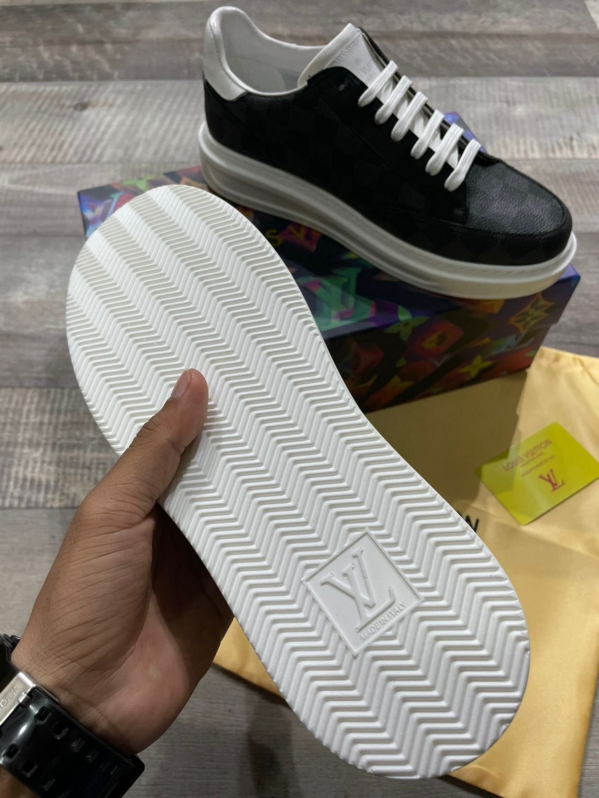 Découvrez le savoir-faire et la qualité des CHAUSSURES NOIRES PREMIUM CUBE DESIGN. Conçues avec des baskets de haute qualité, ces chaussures offrent une durabilité supérieure et sont livrées avec une boîte d’origine, un sac de transport, une housse de protection et une carte de visite. Article n° 2023 en magasin.