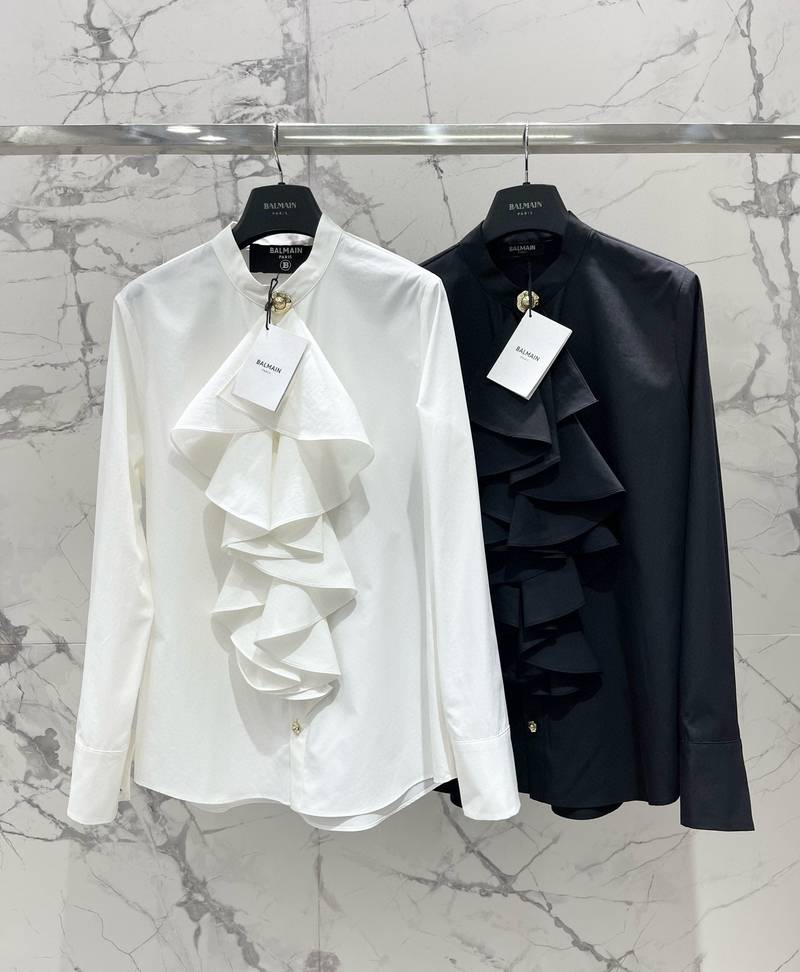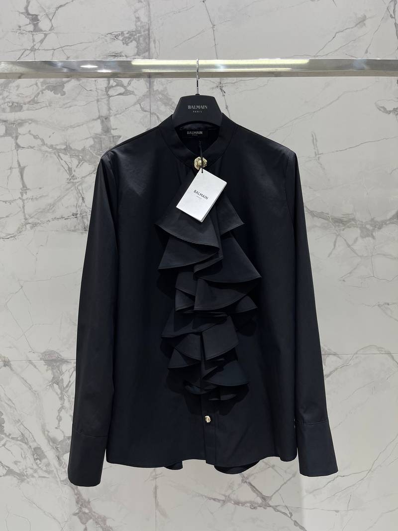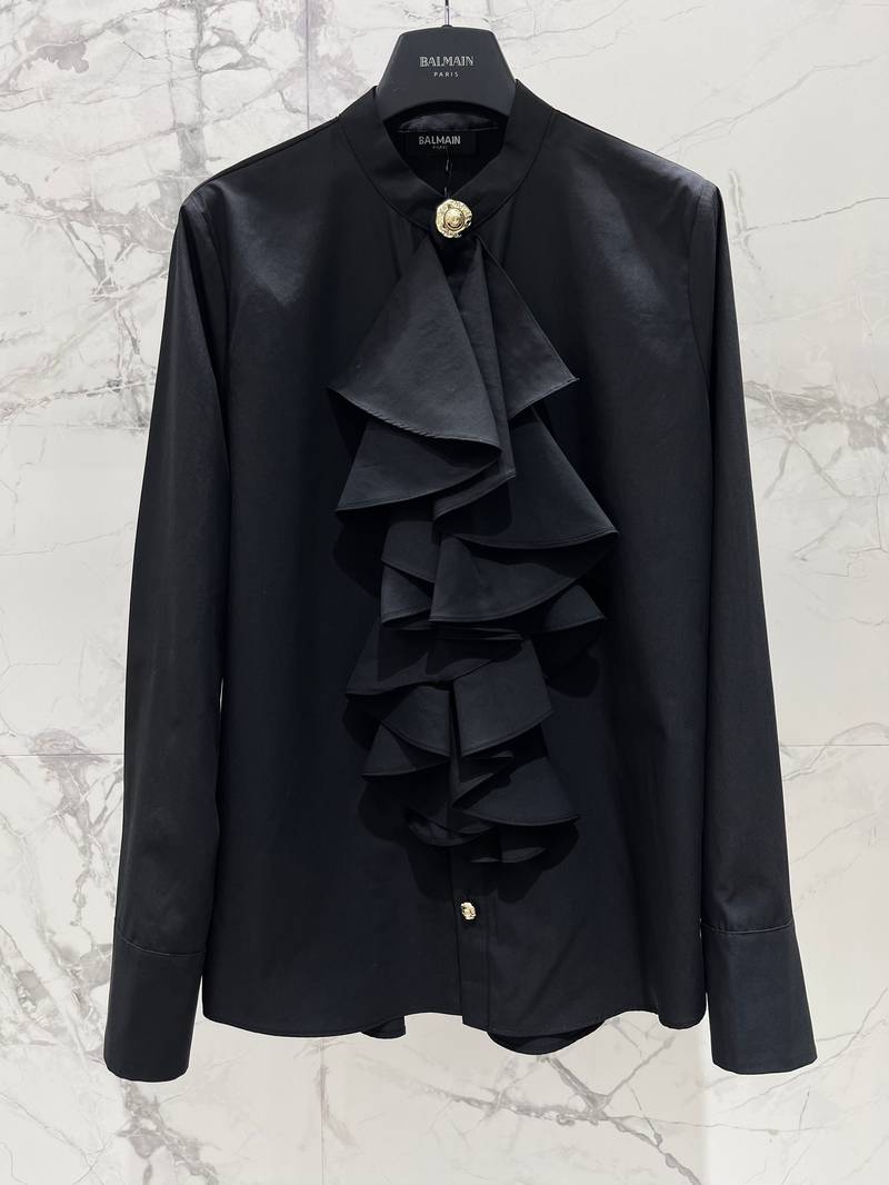 Chemise Balmain à volants et boutons dorés – coupe éléganteChemise Balmain à volants et boutons dorés – coupe élégante
