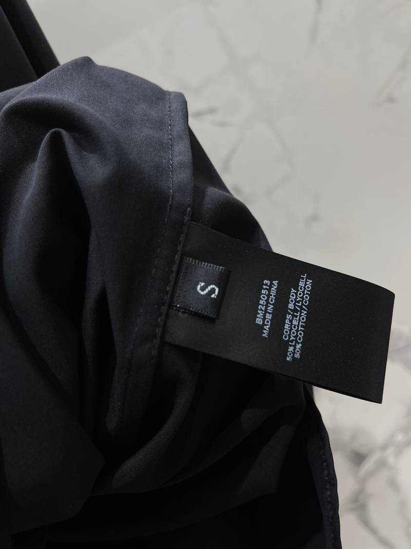 Les poignets sont également ornés de boutons dorés travaillés, renforçant l’identité premium de la pièce. Sa coupe fluide et légèrement structurée épouse parfaitement la silhouette tout en garantissant un confort optimal.