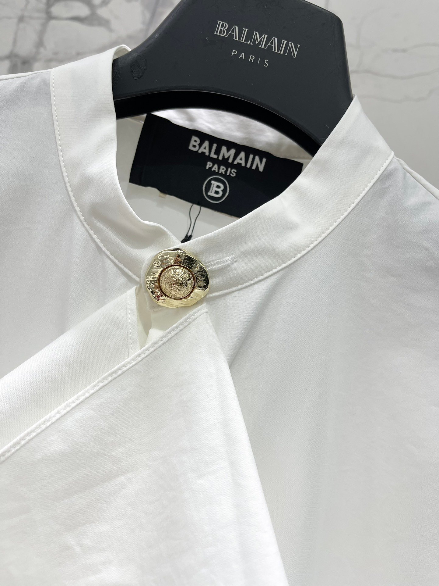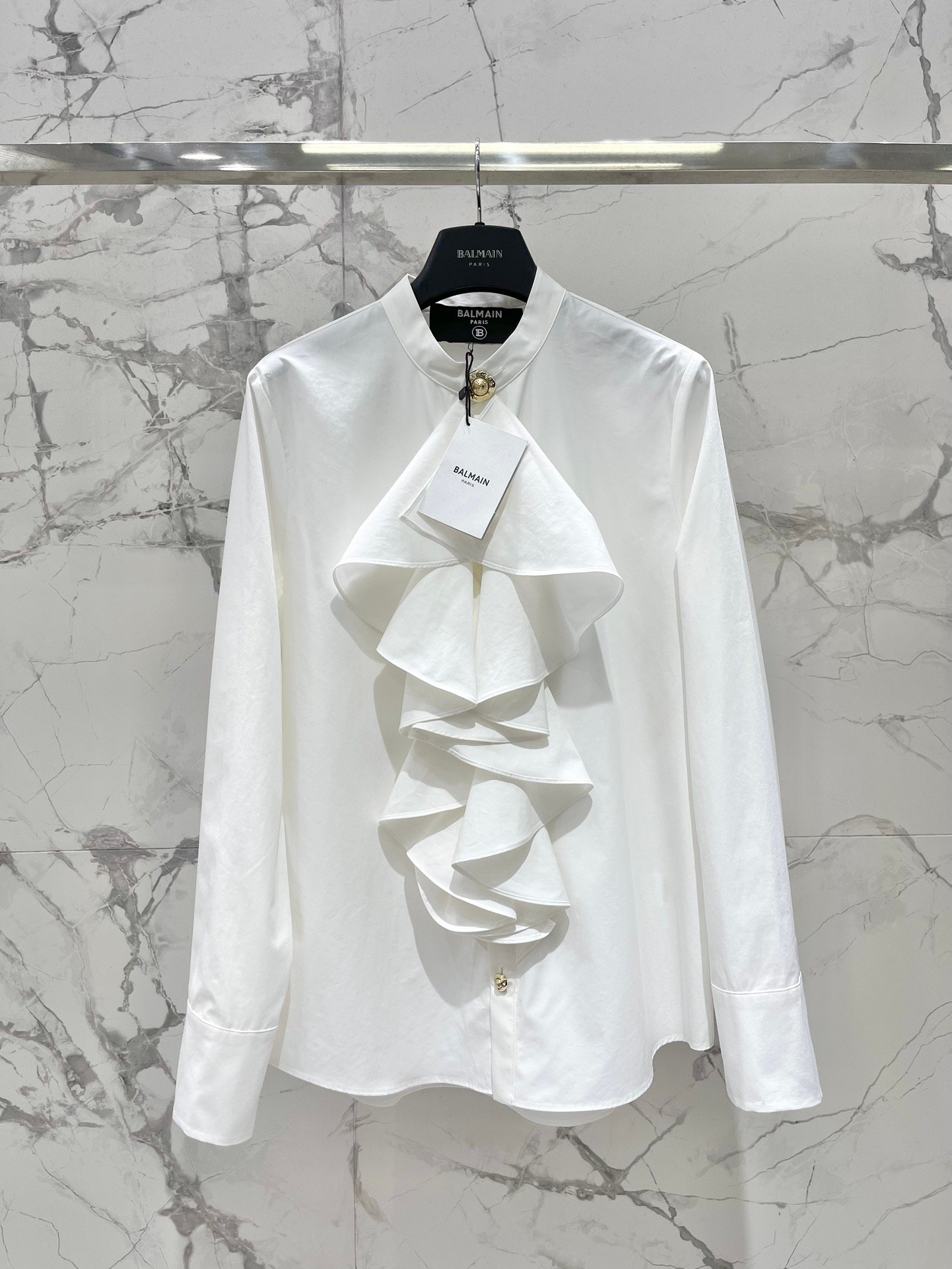 Icône de sophistication, cette chemise Balmain incarne à la perfection l’élégance structurée et le style audacieux de la maison parisienne.