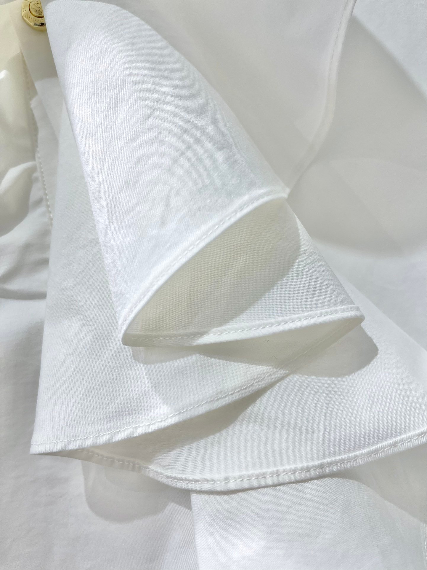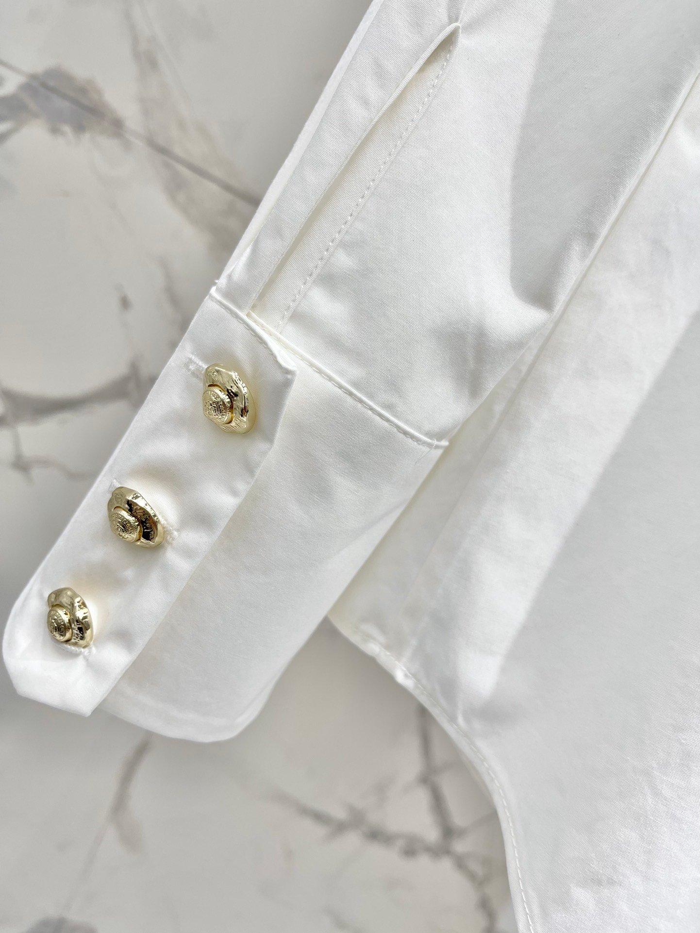 Boutons dorés signature aux poignets