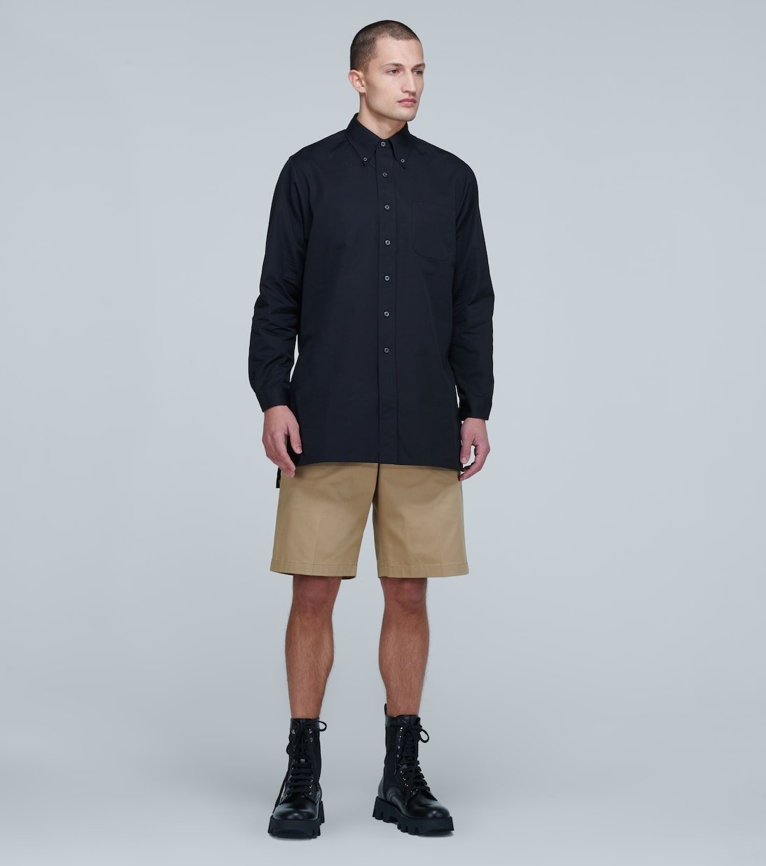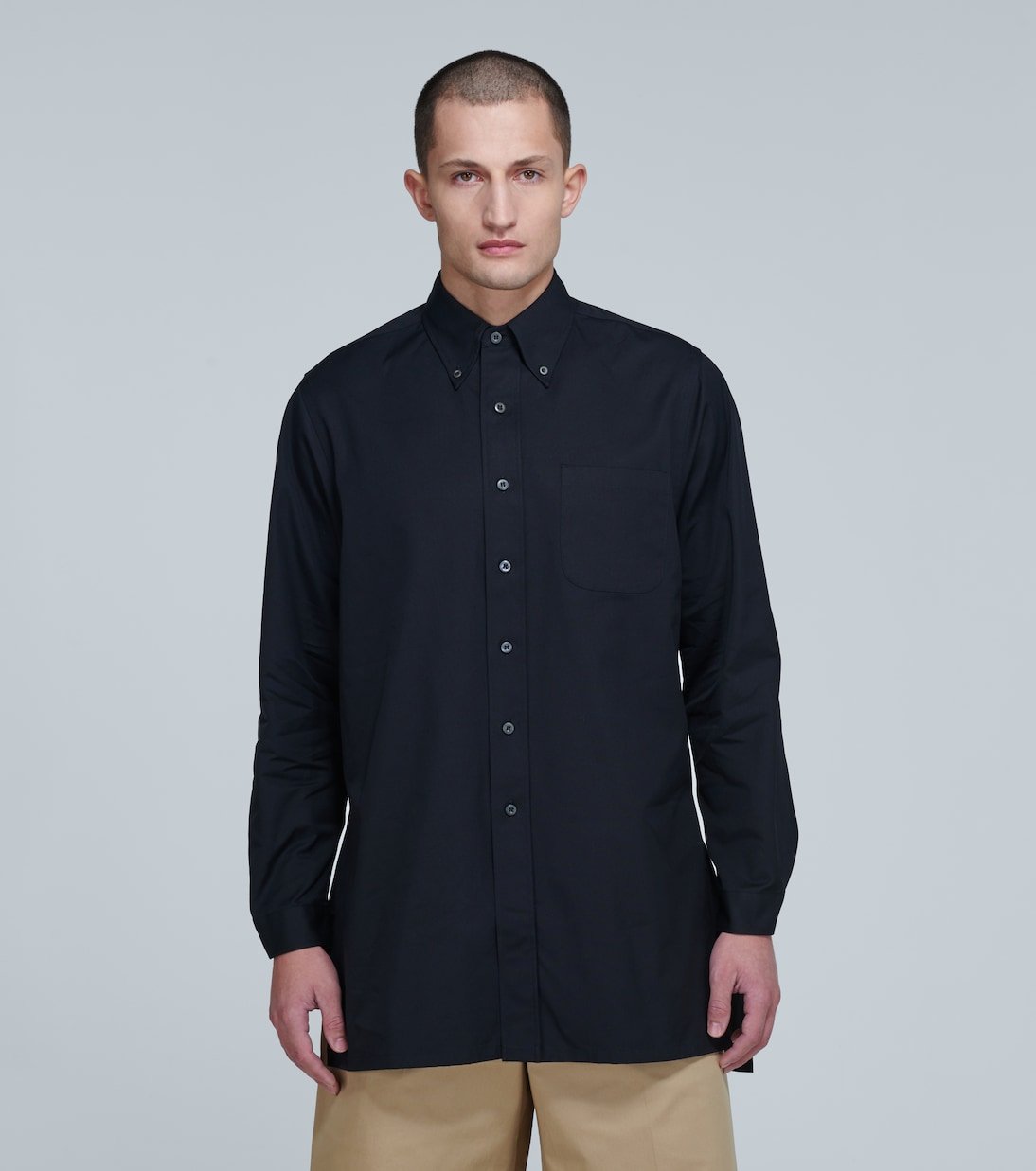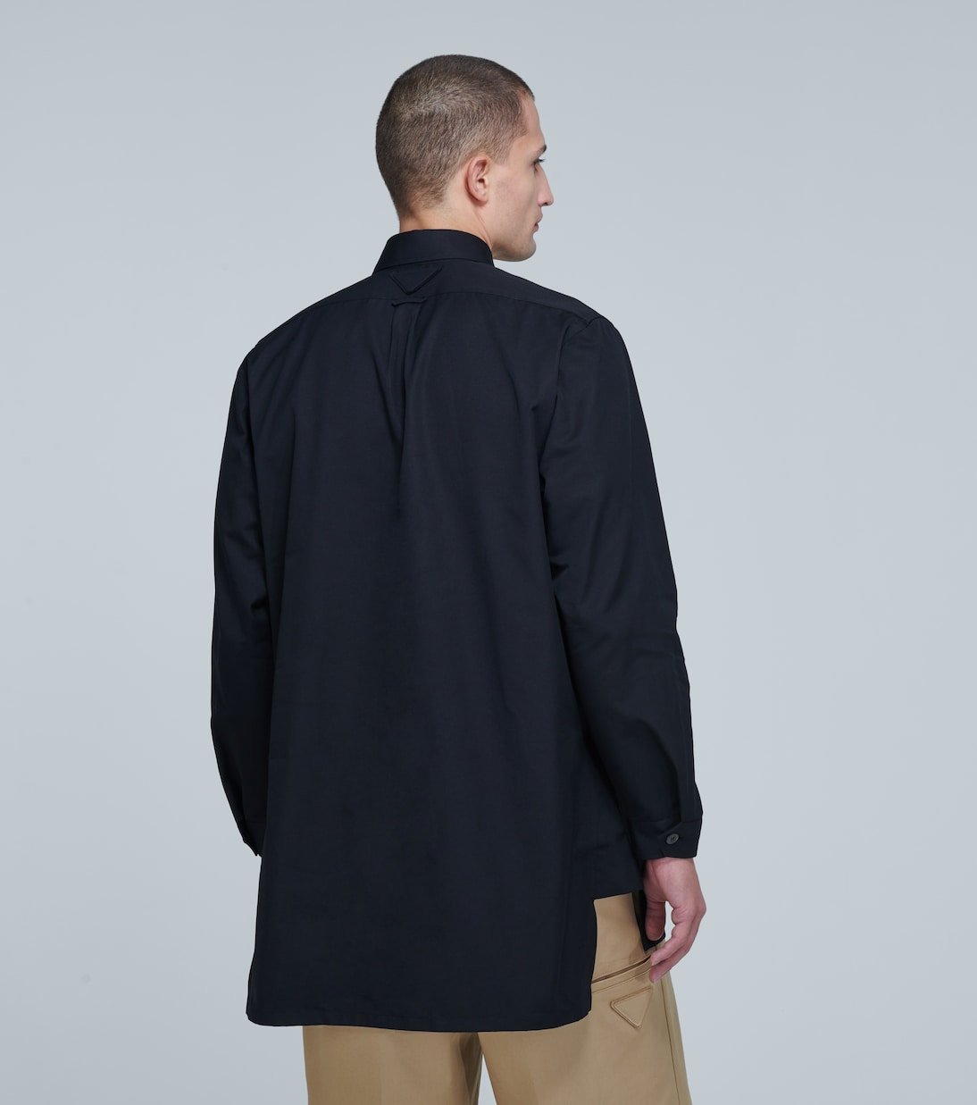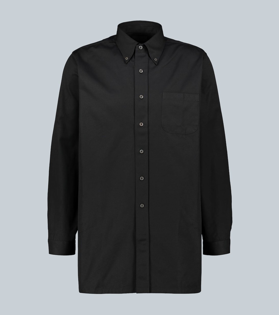 Arborant une coupe décontractée, cette chemise noire Prada est réalisée entièrement en popeline de coton. Ce modèle est doté d’une poche plaquée sur le devant et d’un ourlet droit.