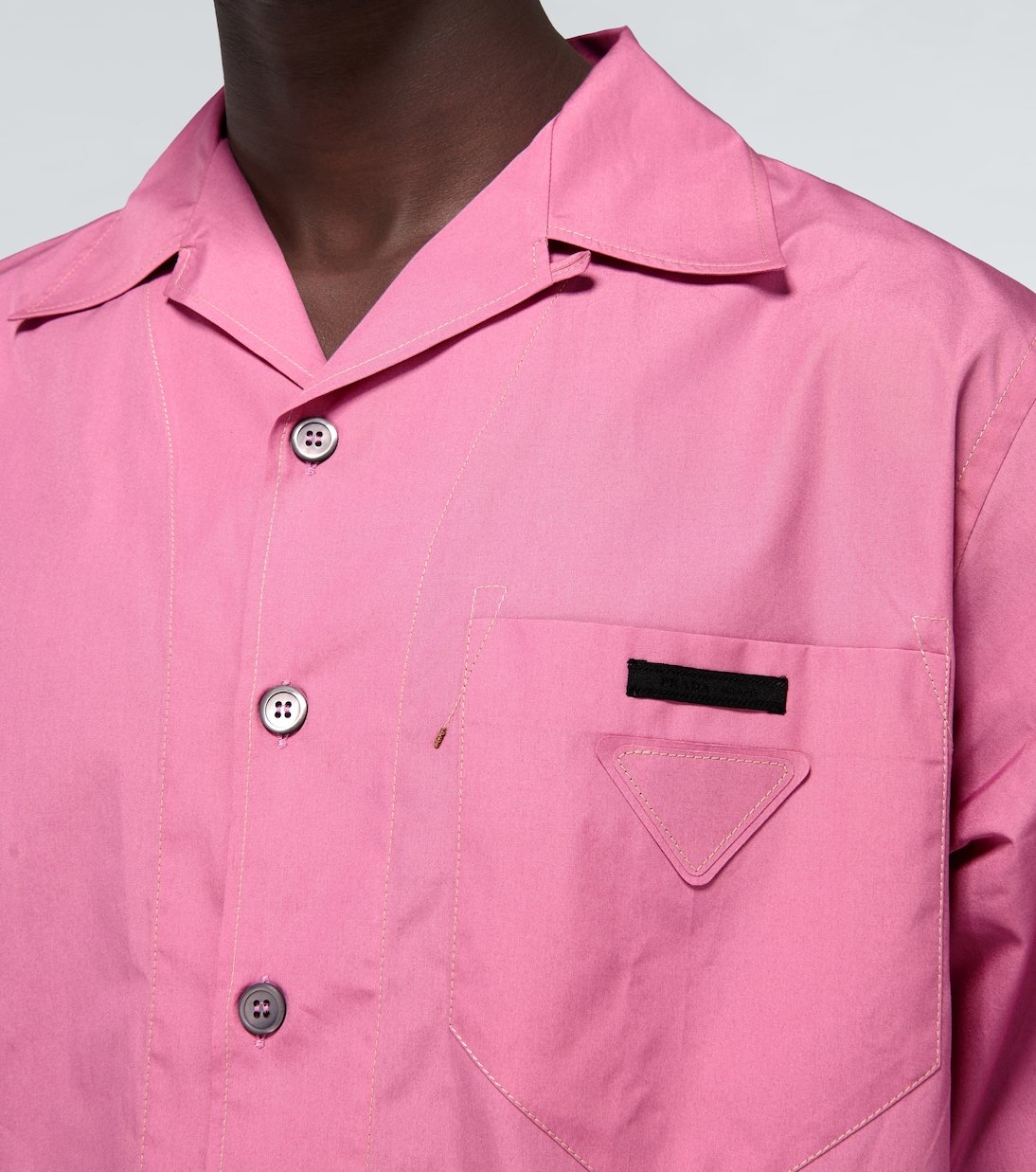 Fabriquée en 100 % popeline de coton, cette chemise Prada, au saisissant coloris bégonia, offre une coupe stretch et est ornée de coutures sur le devant.