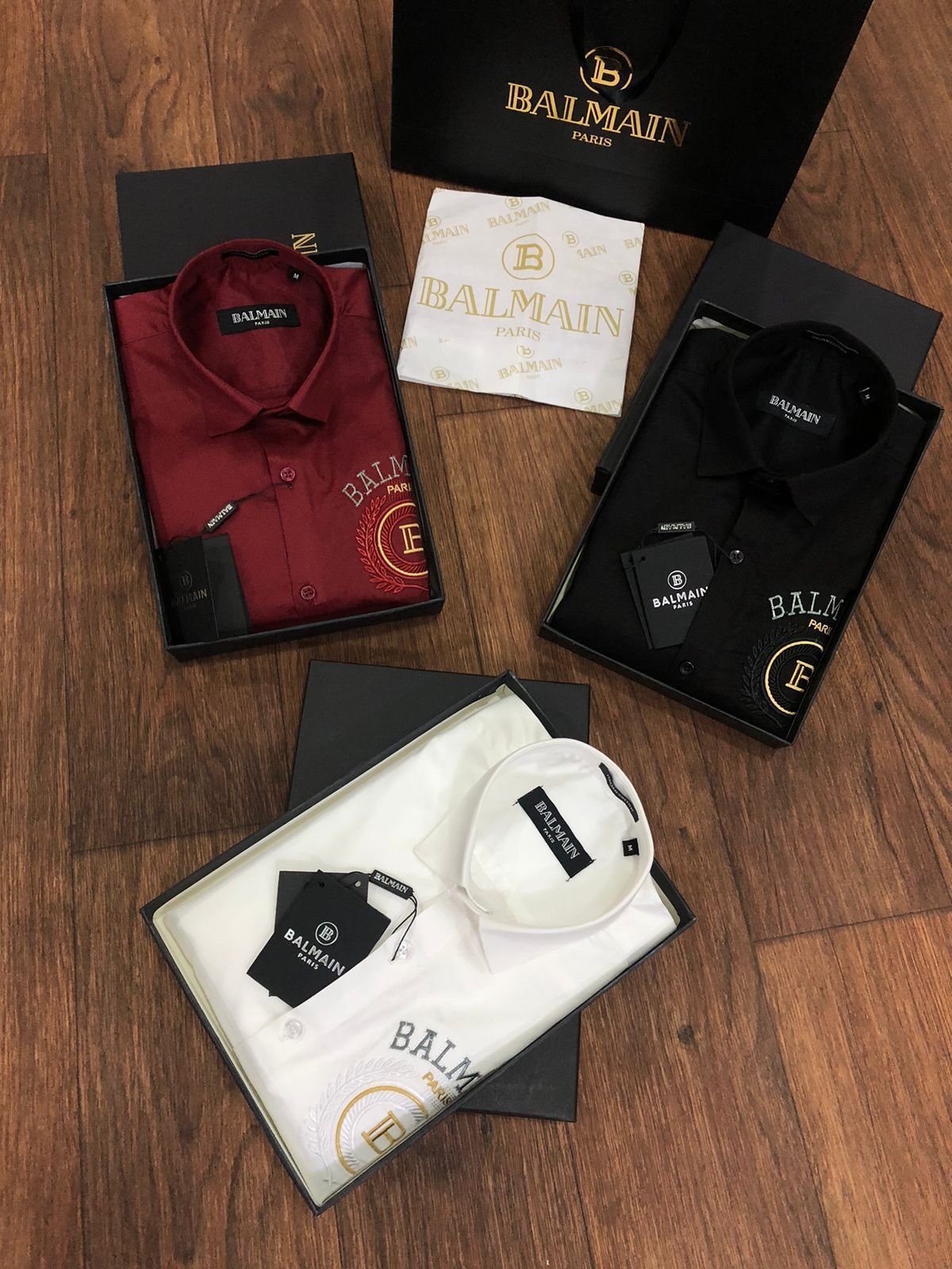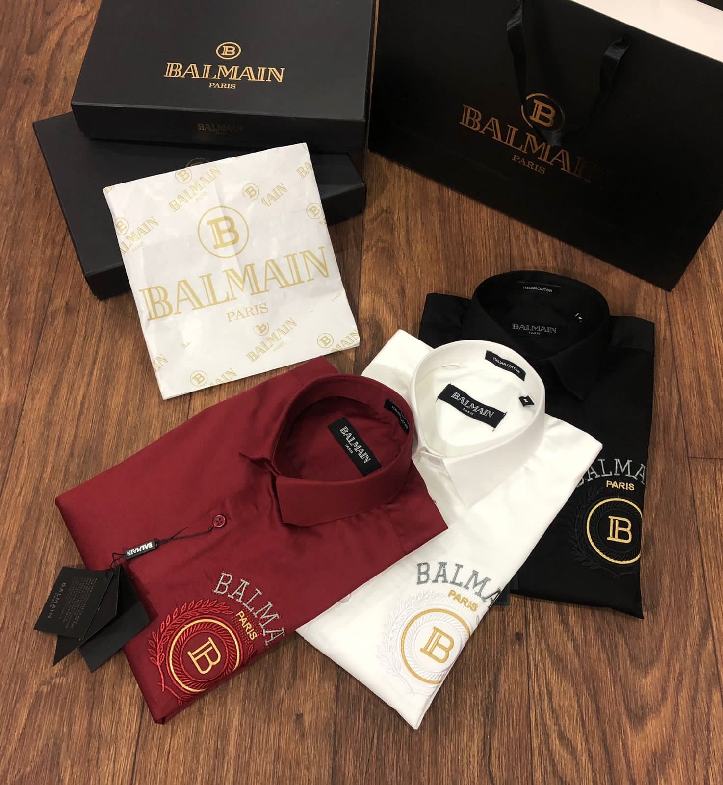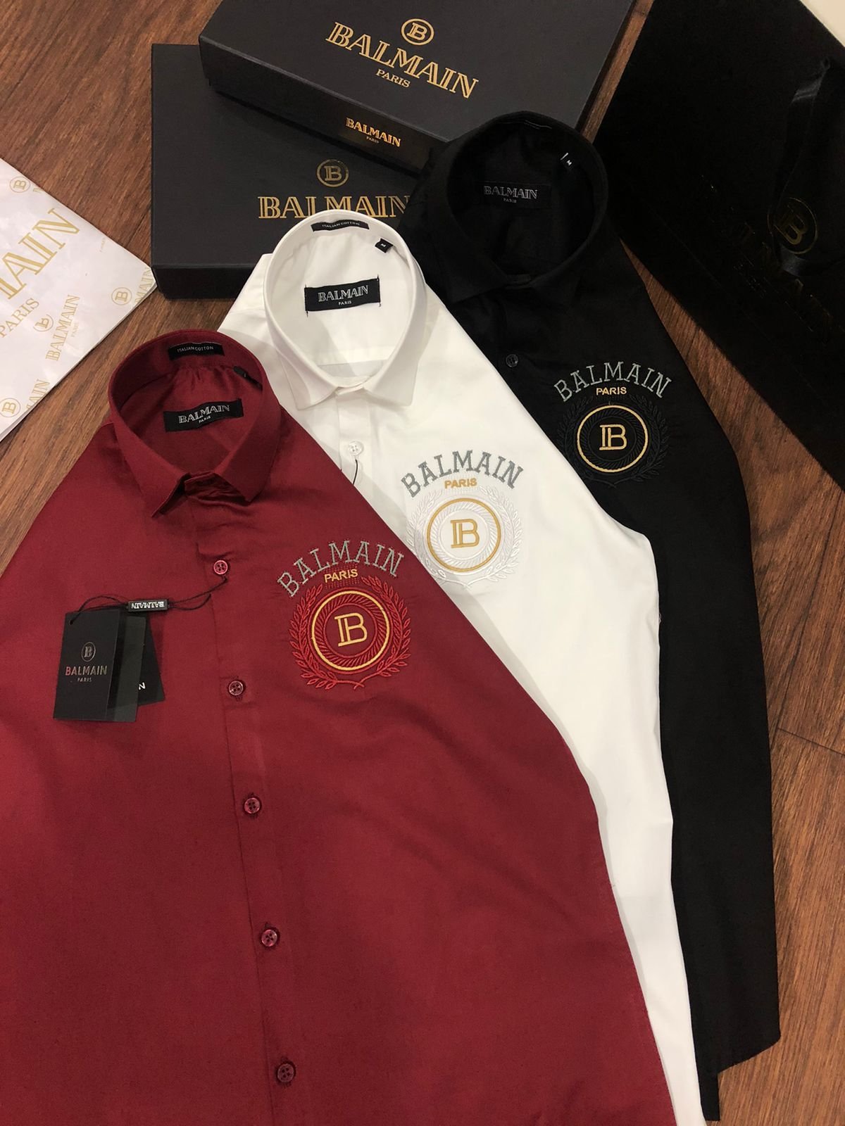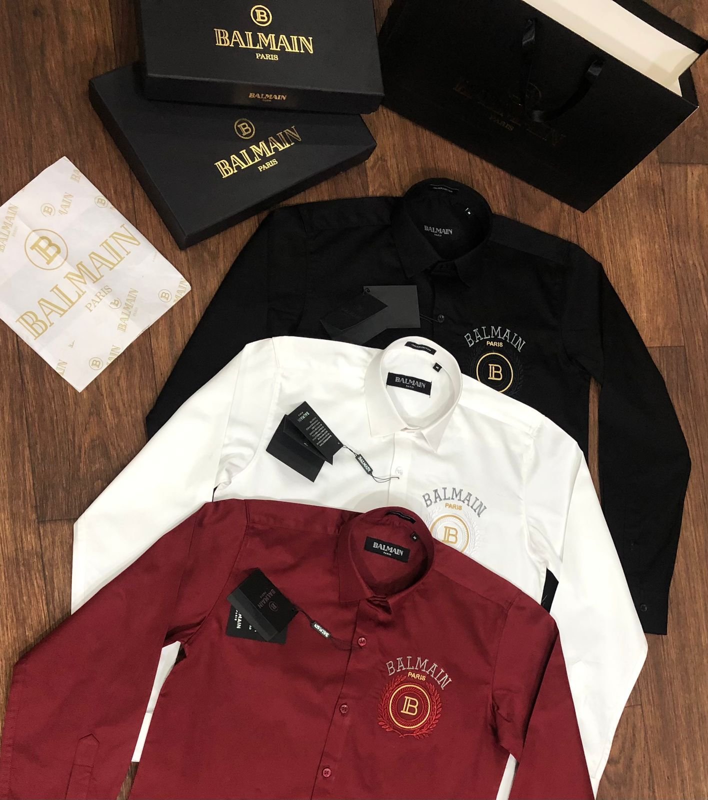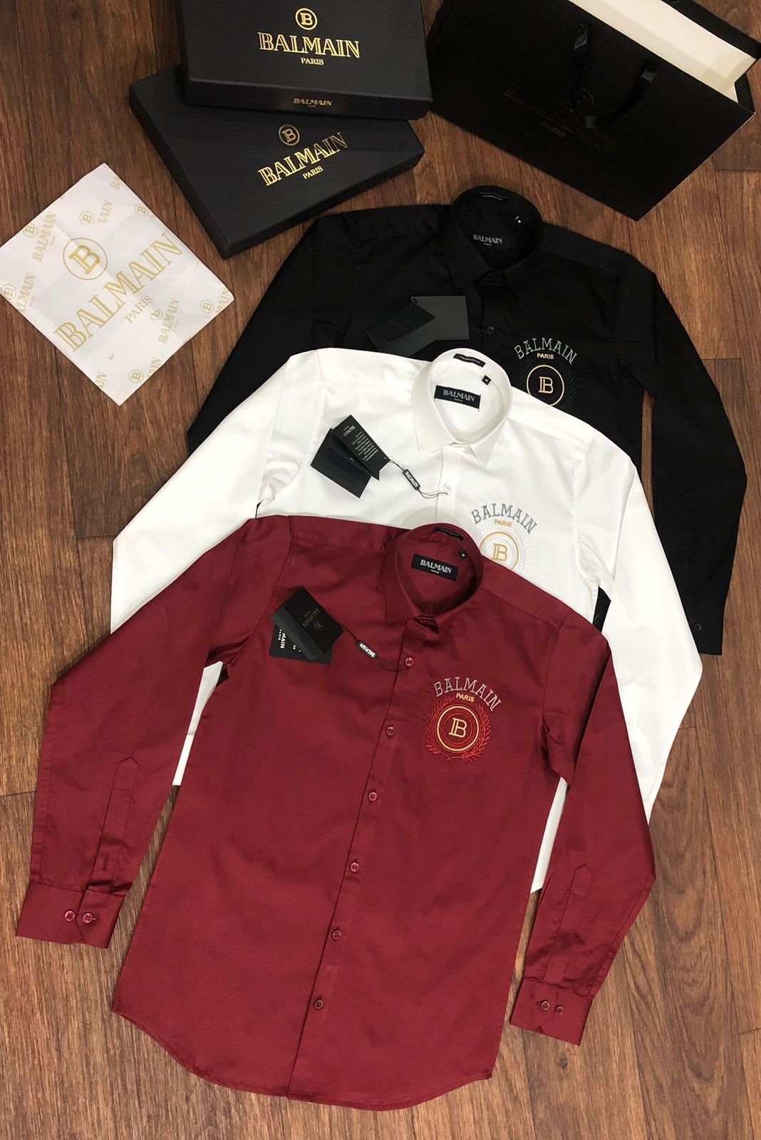 Nos chemises de qualitĂ© supĂ©rieure sont disponibles en trois couleurs, en coupe standard (article n° 2023). Elles sont confectionnĂ©es en tissu 100 % coton Raymond Mill, avec leur boĂ®te d’origine, leurs boutons embossĂ©s et leur papier sulfurisĂ© de la mĂŞme marque. Tous les accessoires correspondent aux spĂ©cifications rĂ©elles du produit.