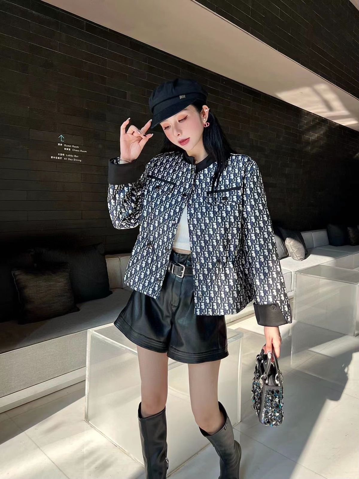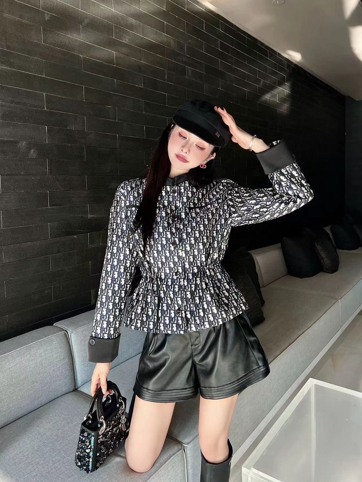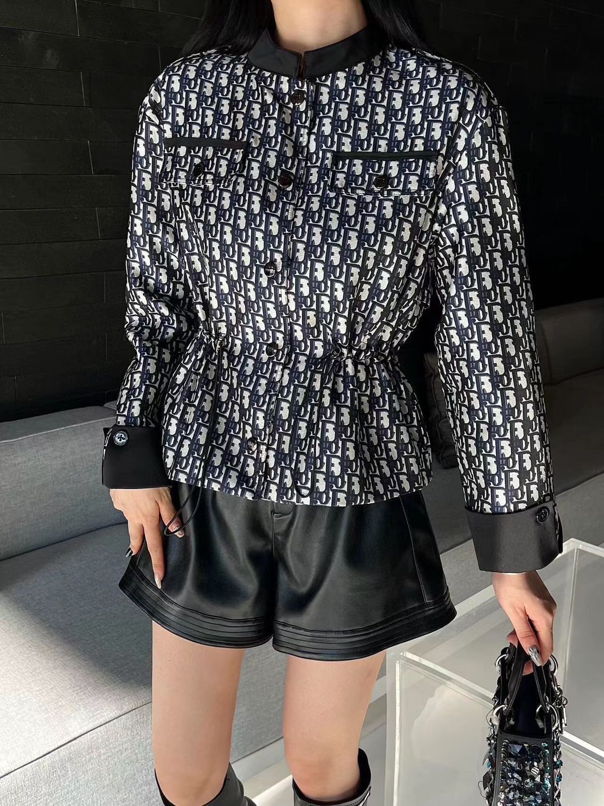 CHRISTIAN DIOR || Veste Dior noire à imprimé monogramme de qualité supérieure pour elle