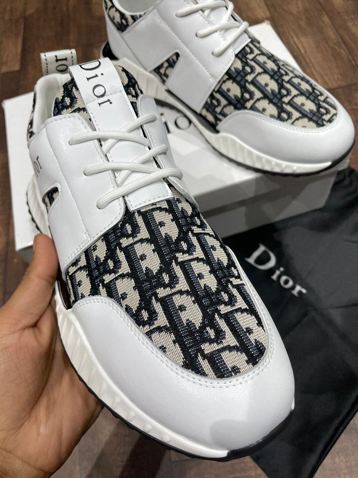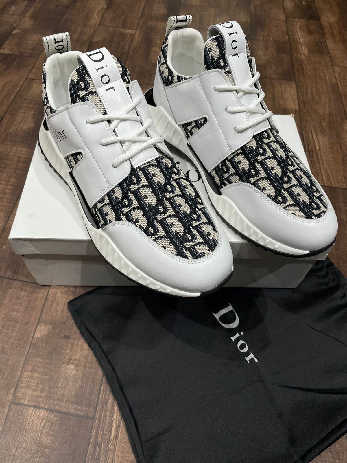 CHRISTION DIOR || Claf – Baskets en cuir avec logo – Blanc