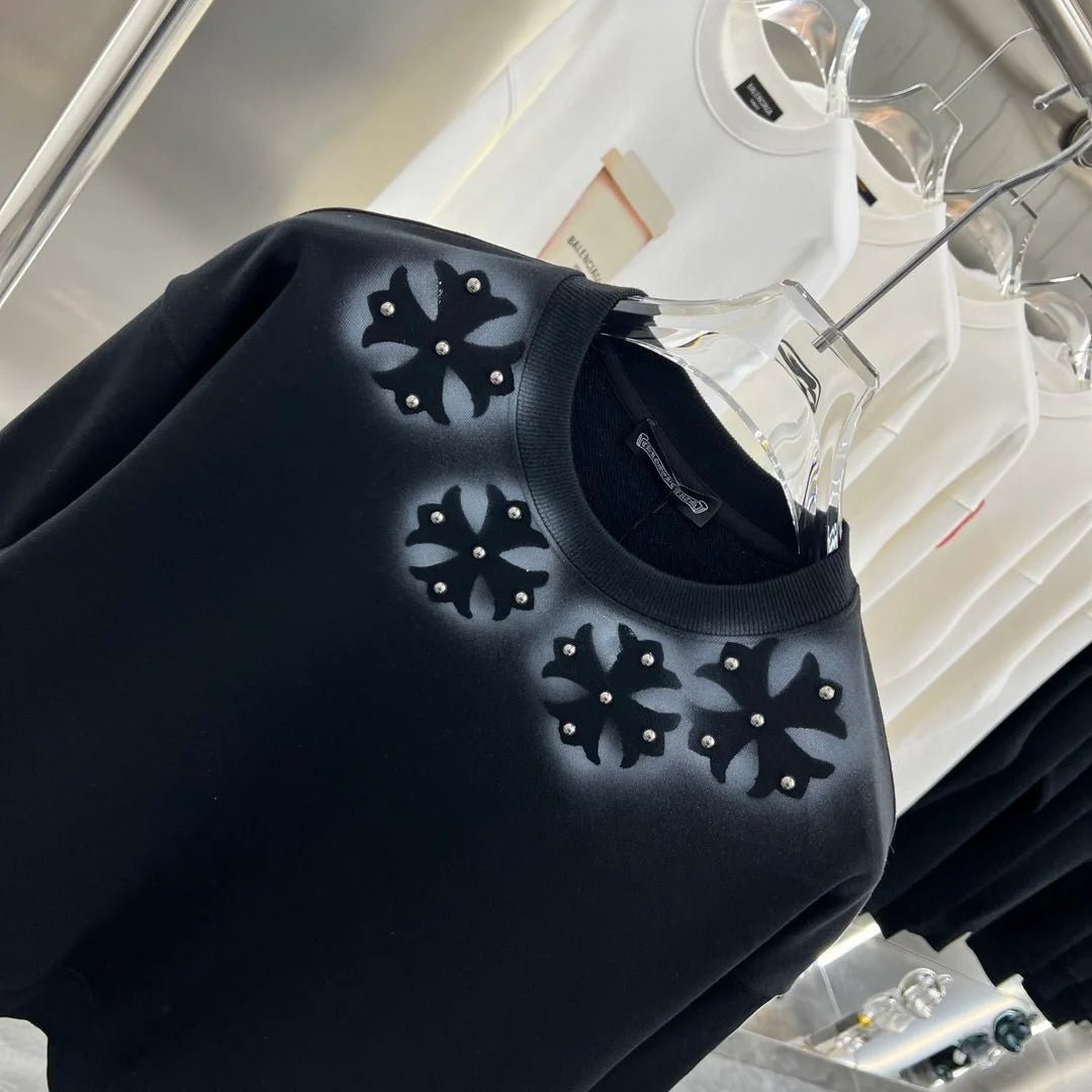 Ce sweat-shirt noir à col rond et ornements CHROME HEARTS || allie des matières de haute qualité à des détails raffinés, ce qui en fait un incontournable pour toute personne à la pointe de la mode. Sa couleur noire élégante et son design ornementé ajoutent une touche de luxe à votre garde-robe. Profitez d’un confort suprême et d’un style raffiné avec ce sweat-shirt emblématique.