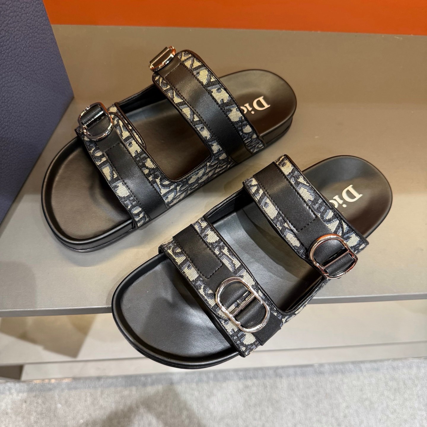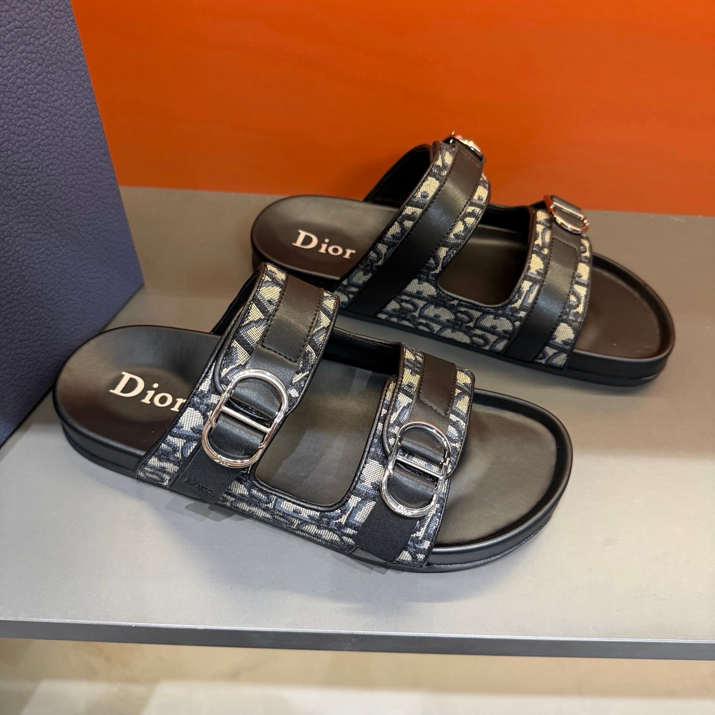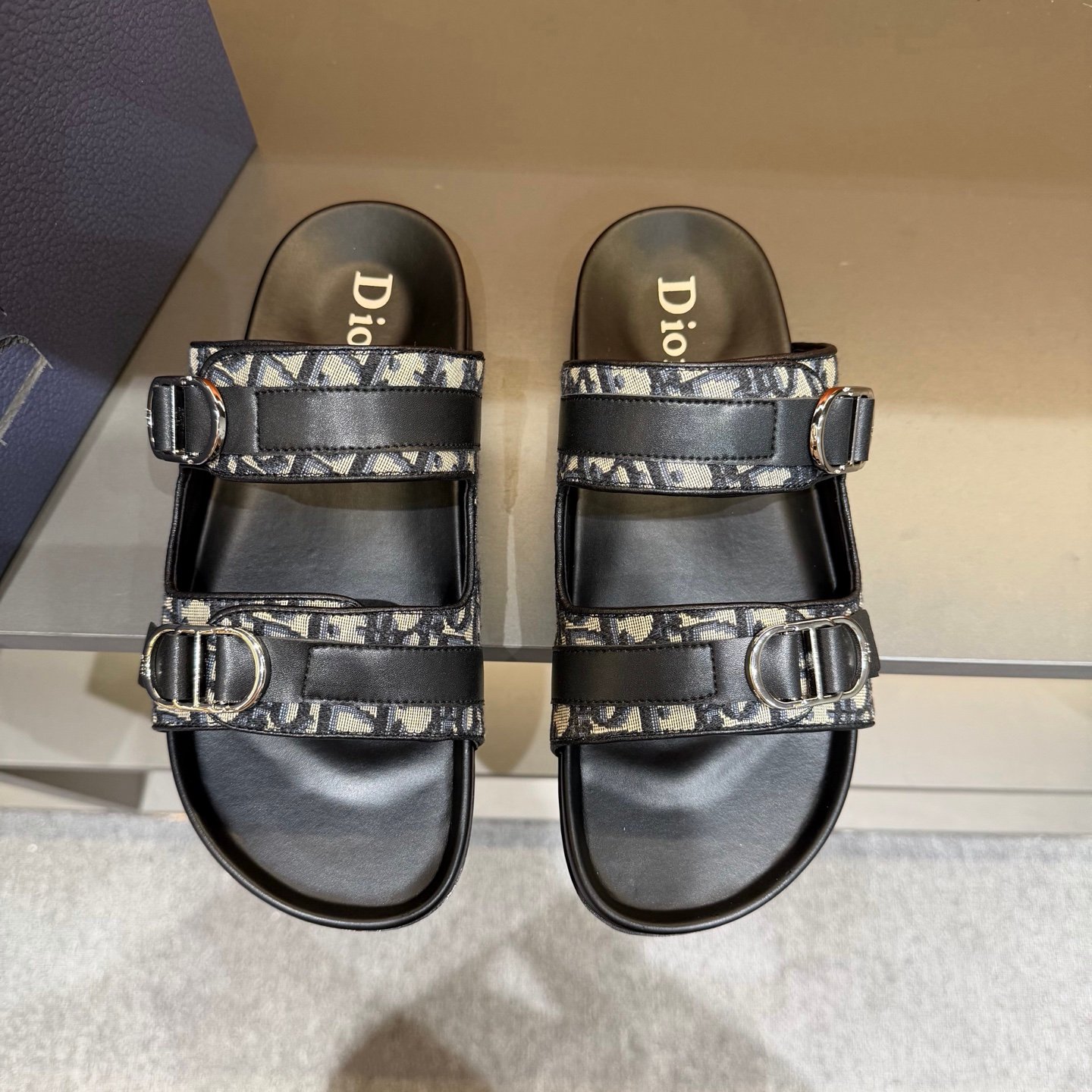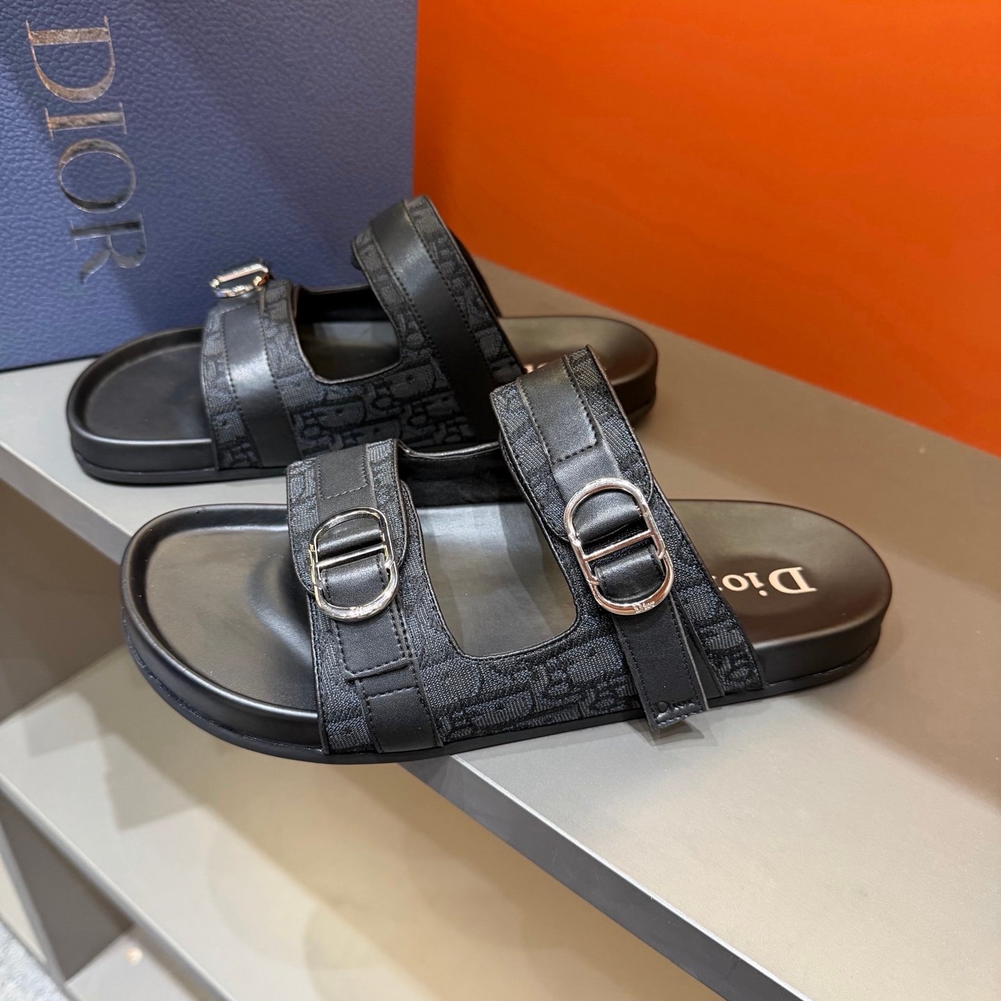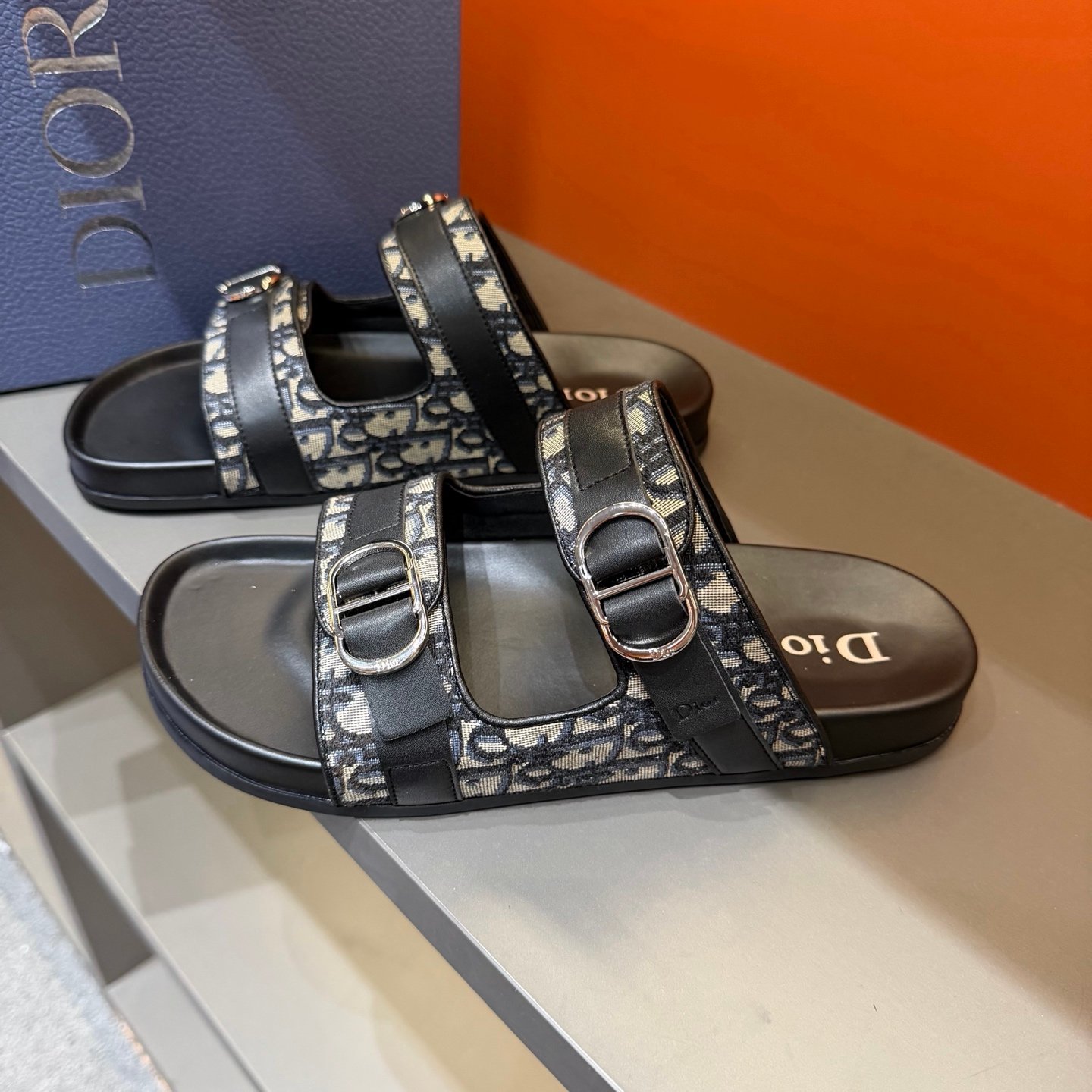 La toile monogram Dior subtilement intégrée contraste avec les finitions en cuir lisse, créant un équilibre parfait entre style urbain et raffinement. La semelle ergonomique offre un excellent confort au quotidien, idéale pour une utilisation estivale ou lifestyle.