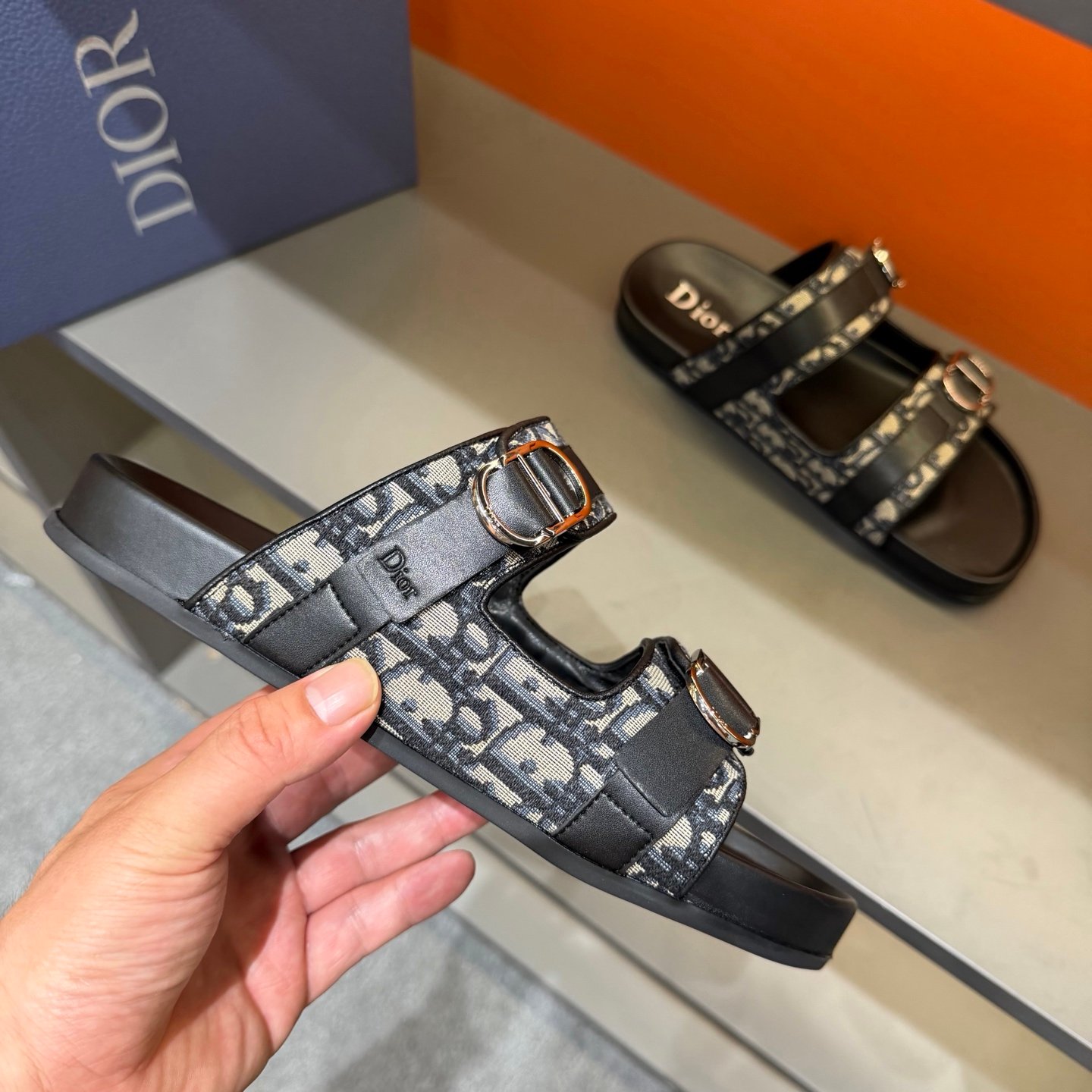 Conçues avec une silhouette épurée, elles se distinguent par leurs deux brides ajustables ornées de boucles métalliques signature CD, apportant une touche sophistiquée et reconnaissable au premier regard.