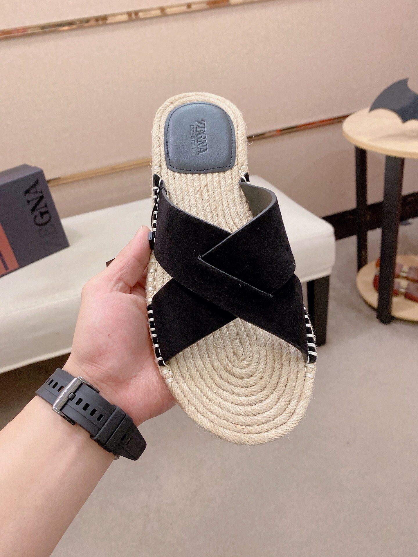 Découvrez ces claquettes Zegna au design raffiné alliant toile haut de gamme et semelle en corde tressée pour un style estival chic et naturel. Conçues pour offrir un confort optimal, elles disposent d’une semelle souple et ergonomique qui assure un excellent maintien du pied tout au long de la journée.