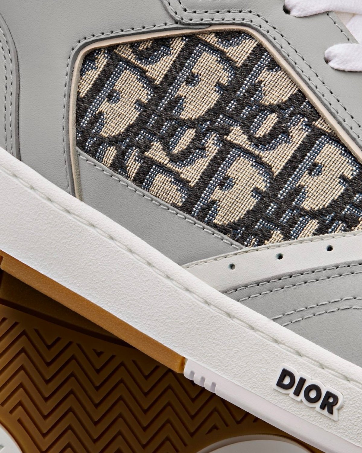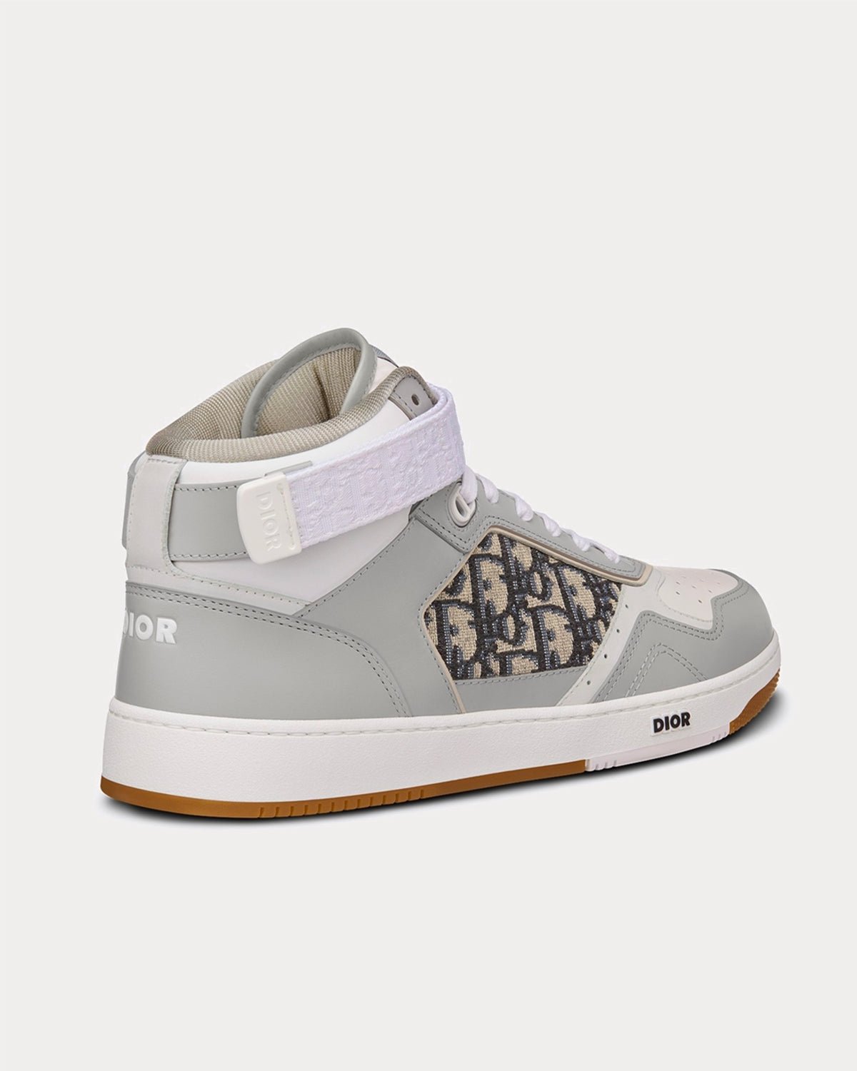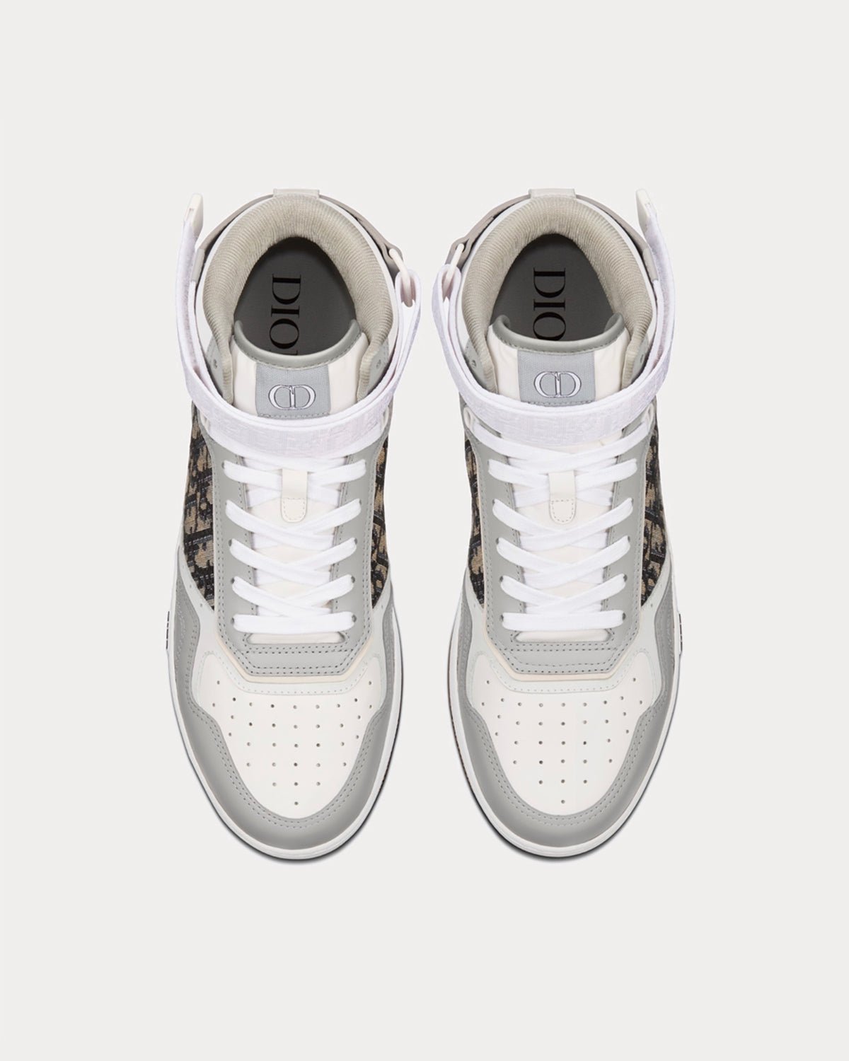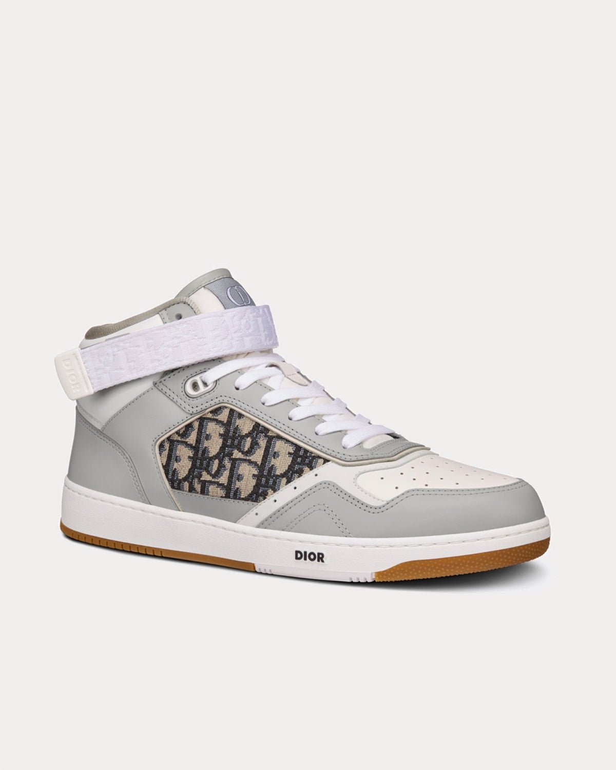 Bien que nouvelle pour cette collection, la sneaker montante B27 est déjà un incontournable de la Maison. Confectionnée en cuir de veau lisse gris et blanc, elle est ornée d’empiècements jacquard Dior Oblique beiges et noirs sur les côtés. Elle est rehaussée d’œillets « CD Icon » ainsi que de nombreux détails emblématiques sur la semelle, la languette et l’arrière en caoutchouc bicolore. Une bride réglable Dior Oblique complète le design. Cette sneaker montante sublimera tous vos looks préférés.