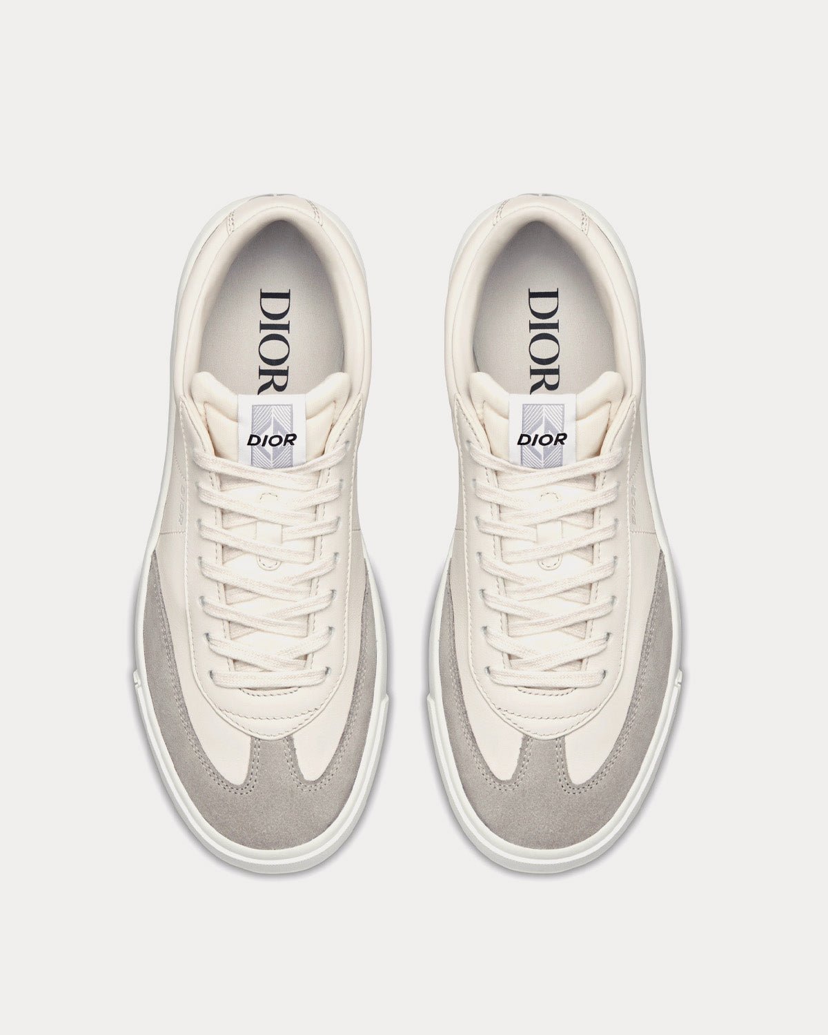 Baskets basses Dior B101 en cuir de veau lisse crème et nubuck grège