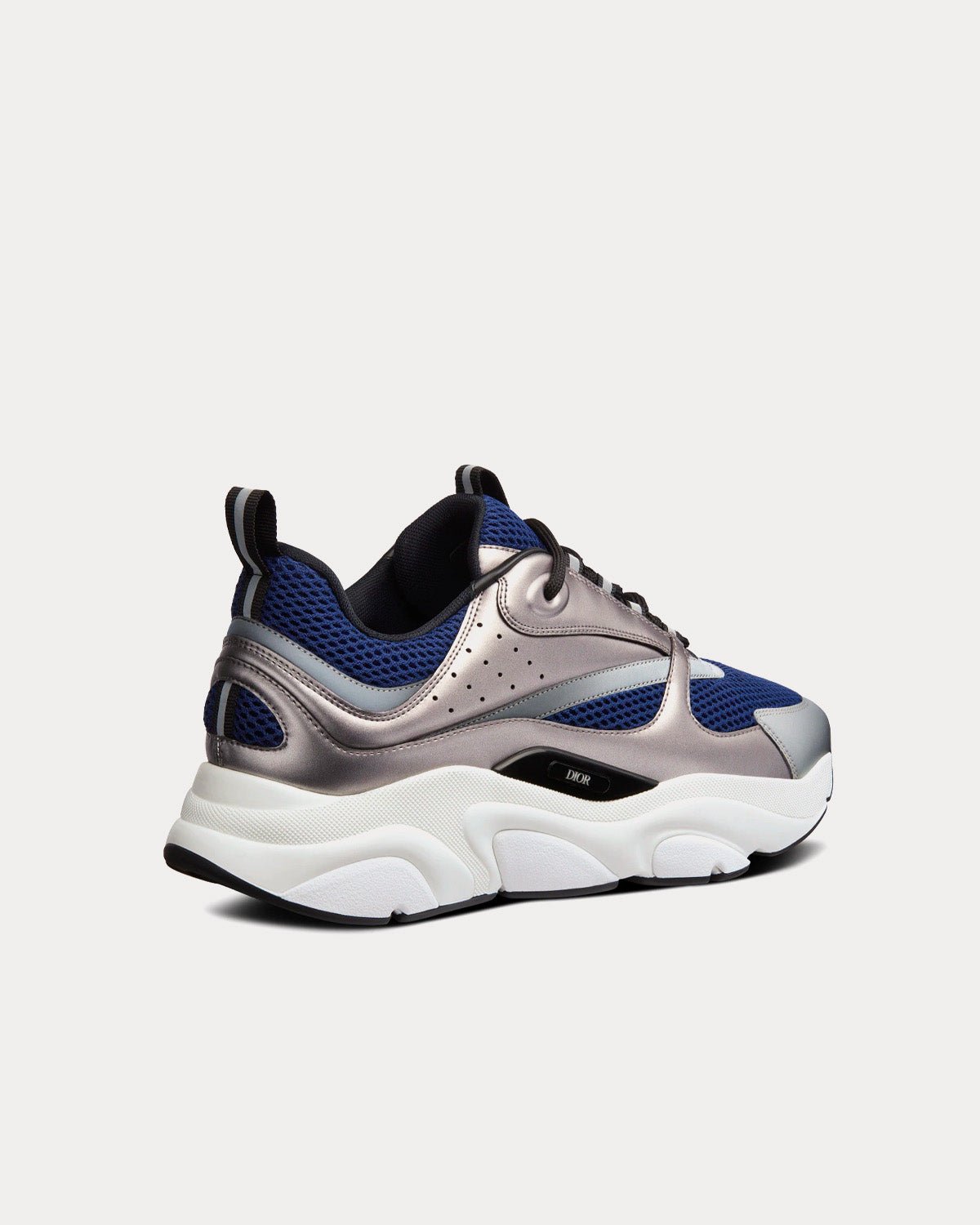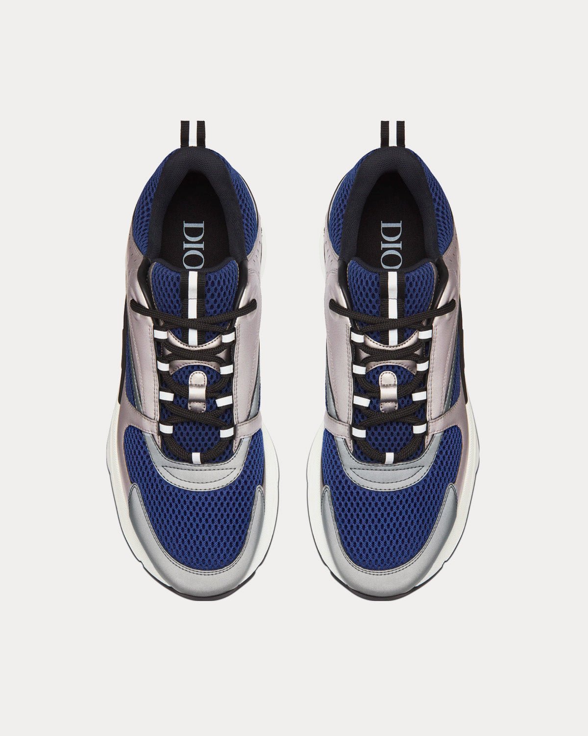 Baskets basses Dior B22 en mesh technique bleu et cuir de veau lisse argenté