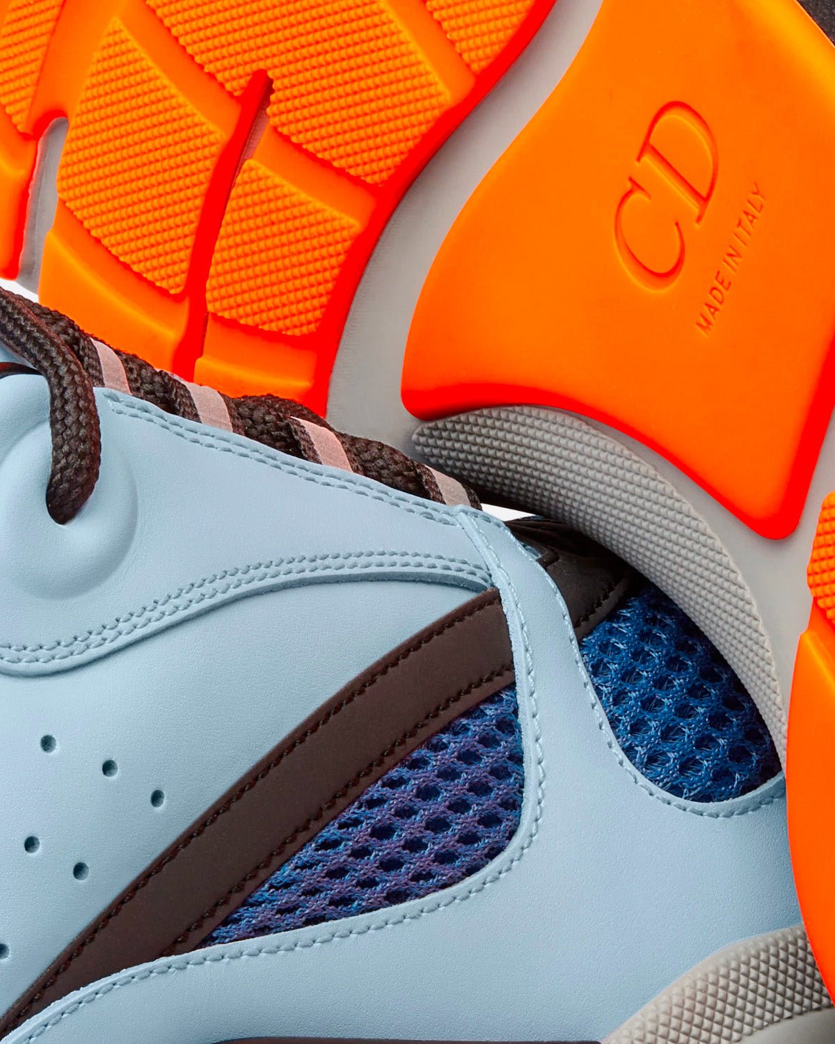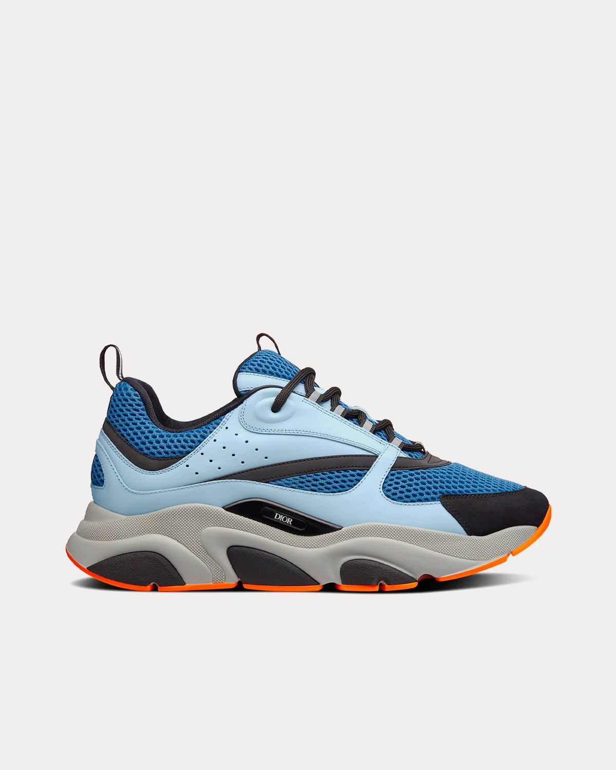 La sneaker B22 revisite la sneaker épaisse avec un regard rétro. Associant différentes matières et textures, dont du cuir de veau lisse bleu clair et de la maille technique bleue, elle affiche une esthétique sportswear audacieuse. Des lacets ronds et une signature « DIOR » en relief sur le côté complètent l’épaisse semelle en caoutchouc sculptée grise et noire à liseré orange. Portez-la avec n’importe quelle tenue décontractée pour une silhouette sportive et contemporaine.