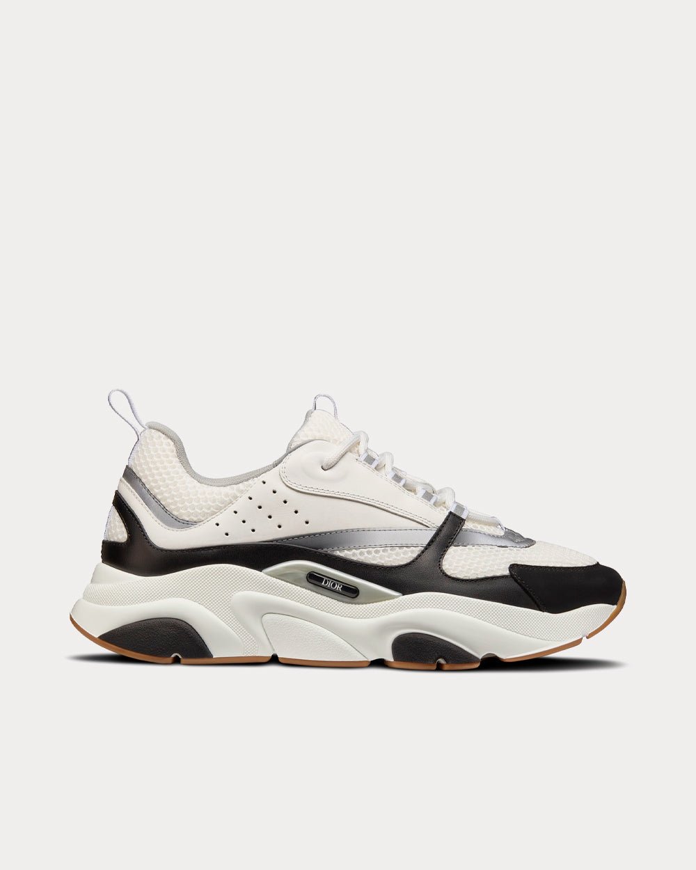La sneaker B22 revisite la sneaker épaisse avec un regard rétro. Associant différentes matières et textures, dont du cuir de veau lisse blanc et noir et de la maille technique grise, elle affiche une esthétique audacieuse d’inspiration sportive. Des lacets ronds et une signature « DIOR » en relief sur le côté complètent l’épaisse semelle blanche sculptée en caoutchouc à liseré noir. Portez-la avec n’importe quelle tenue décontractée pour une silhouette sportive et contemporaine.