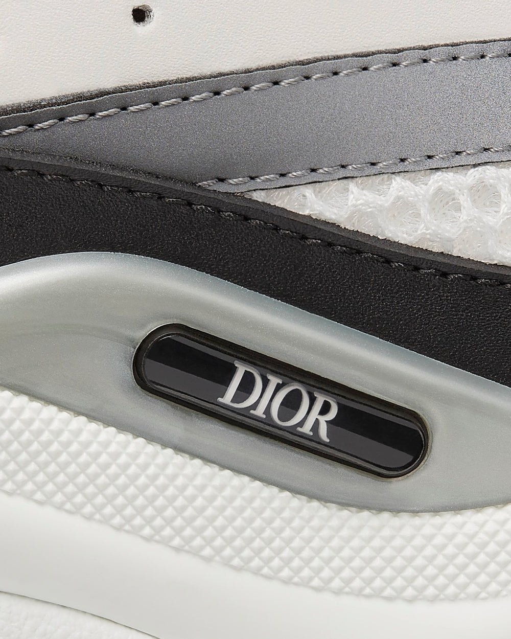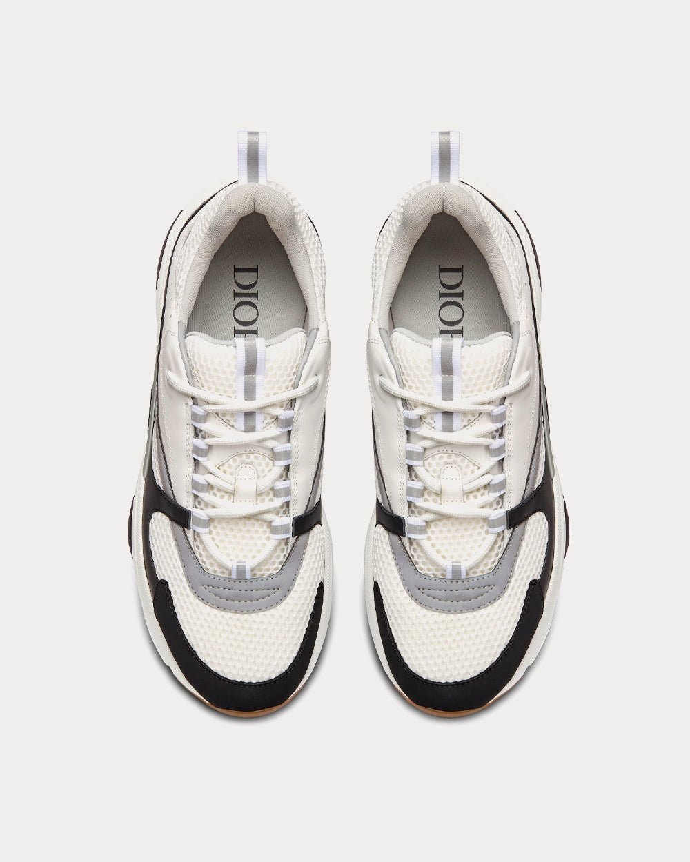 Baskets basses Dior B22 en mesh technique gris et cuir de veau lisse blanc et noir