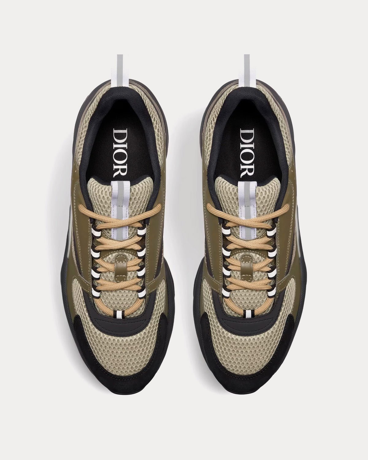 Baskets basses Dior B22 en mesh technique kaki et noir et cuir de veau kaki