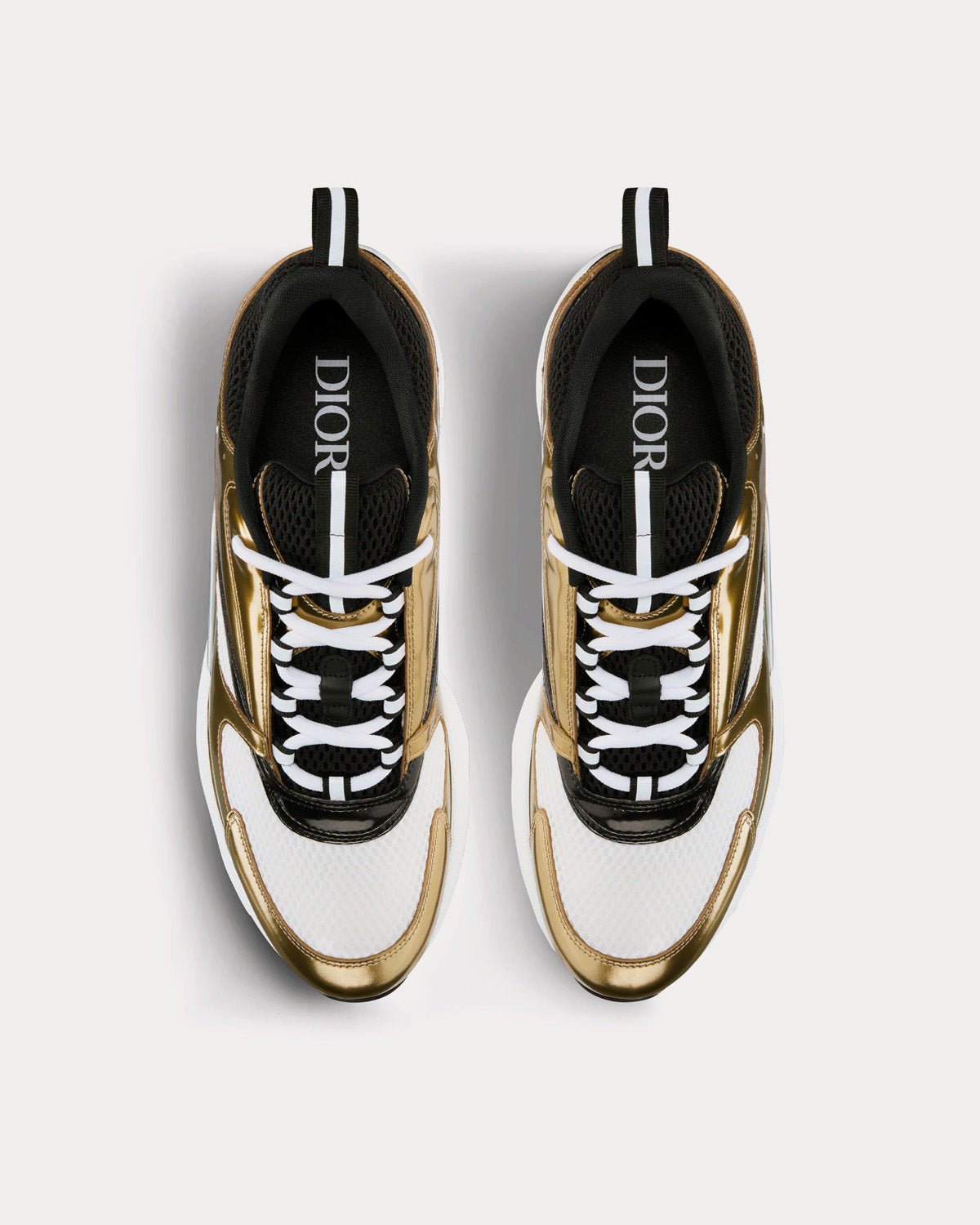 Baskets basses Dior B22 en mesh technique et cuir de veau laminé, dorées, blanches et noiresBaskets basses Dior B22 en mesh technique et cuir de veau laminé, dorées, blanches et noires