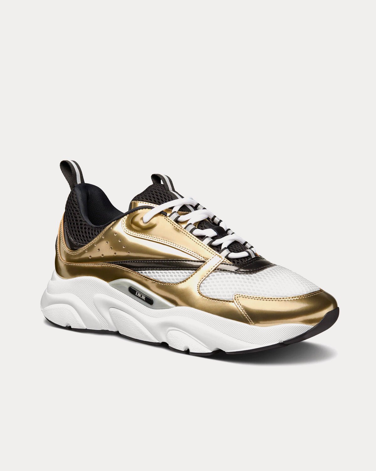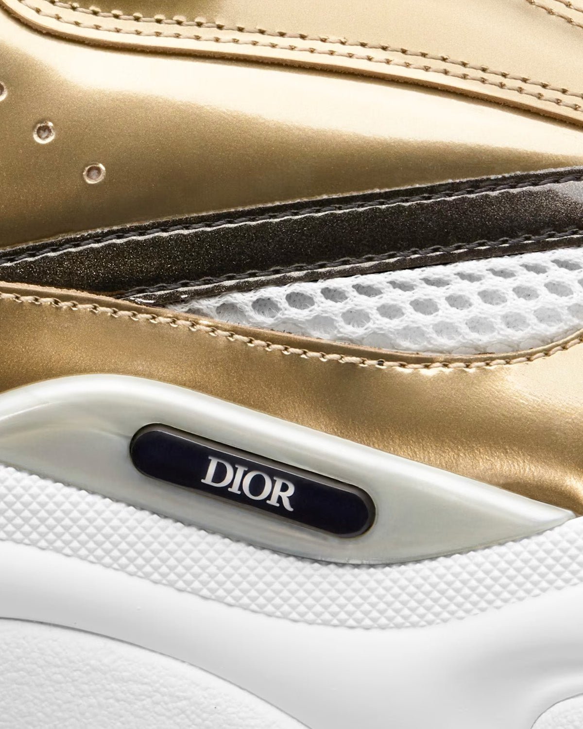 Baskets basses Dior B22 en mesh technique et cuir de veau laminé, dorées, blanches et noires