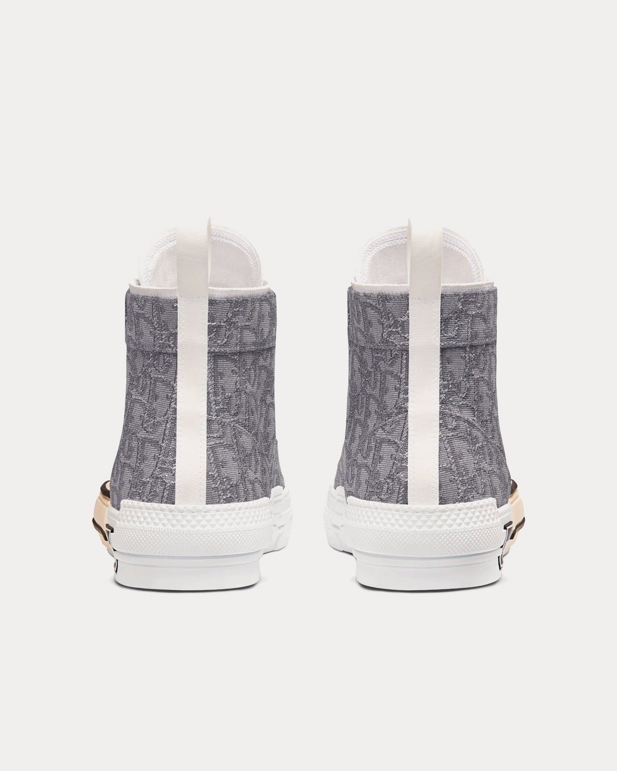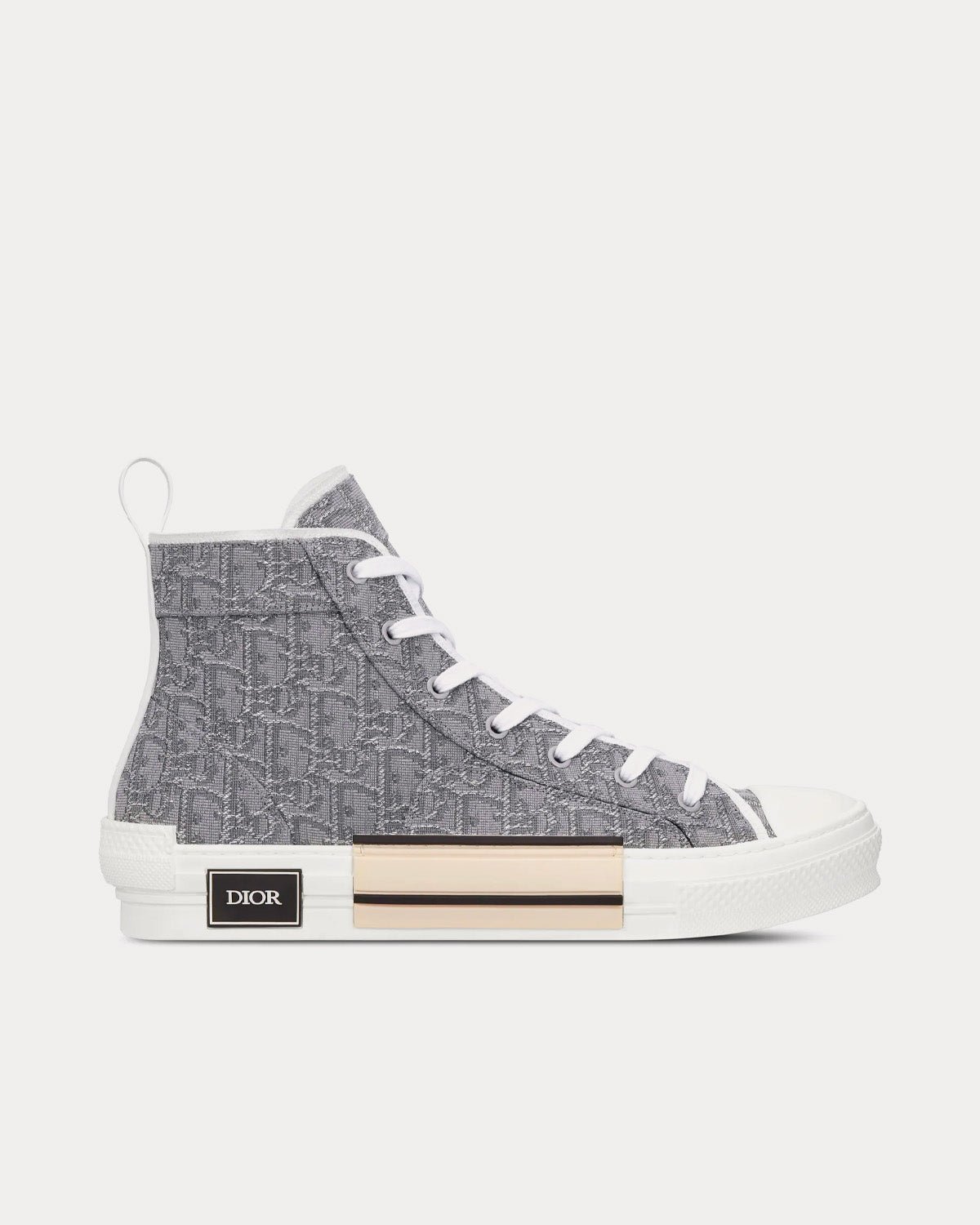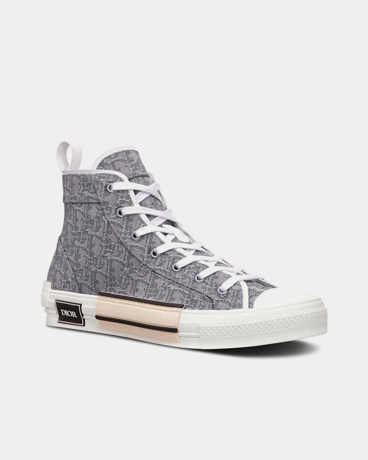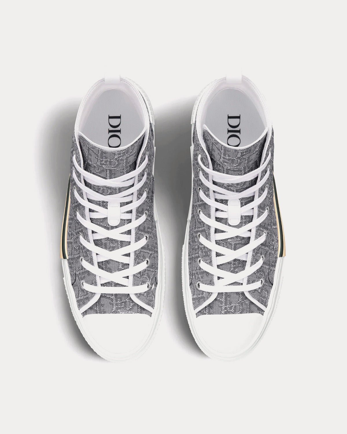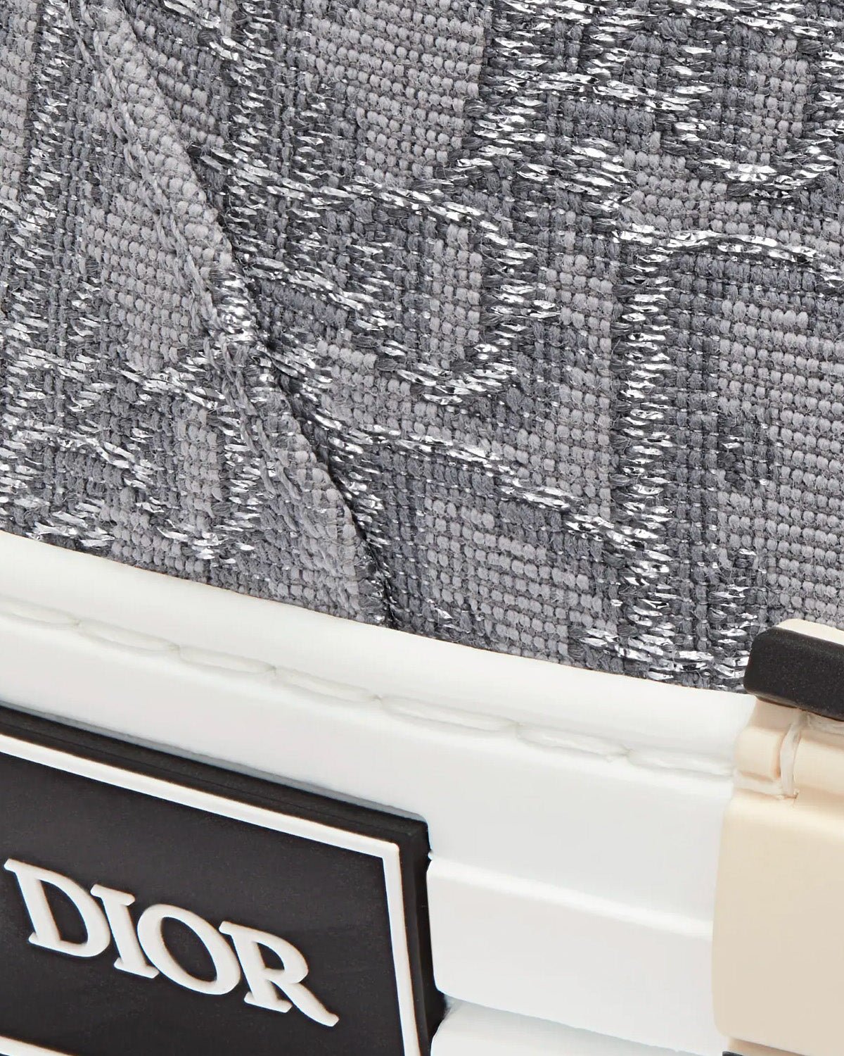La sneaker montante B23, revisitée avec audace par Kim Jones, arbore le jacquard Dior Oblique emblématique, orné de fils métalliques couleur ruthénium. Des détails essentiels, tels que des œillets et un lacet sur le devant, une semelle en caoutchouc blanc à empiècements contrastés, un bout arrondi et renforcé ainsi qu’une languette arrière au talon, rappellent les codes de la chaussure montante classique, le tout complété par une doublure en cuir de veau souple. Cette sneaker s’accorde parfaitement avec toutes les tenues décontractées.