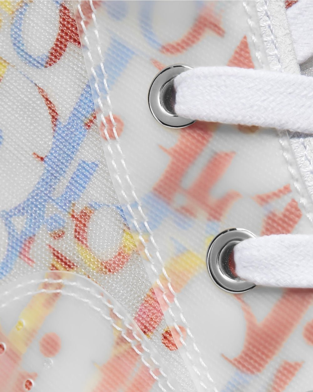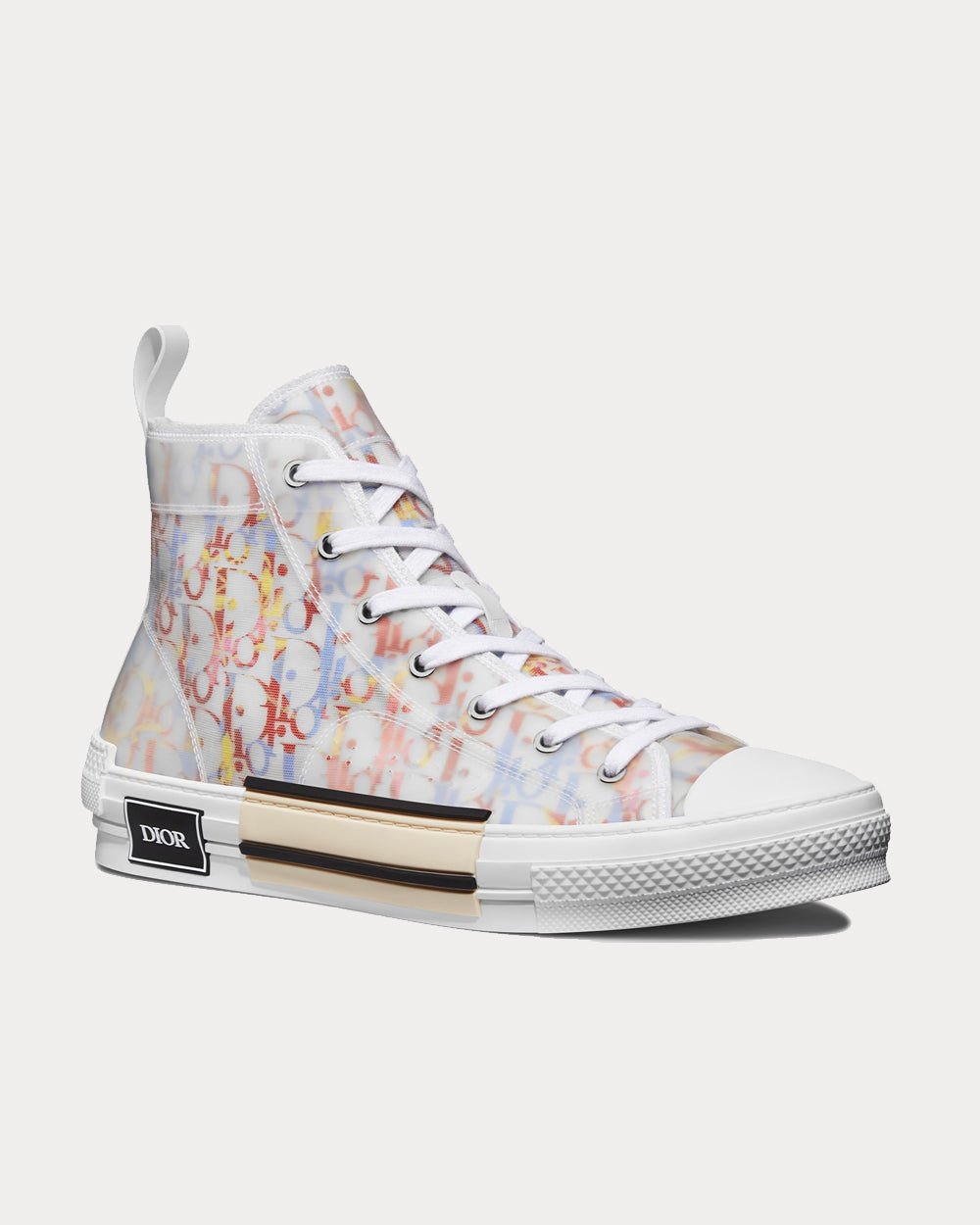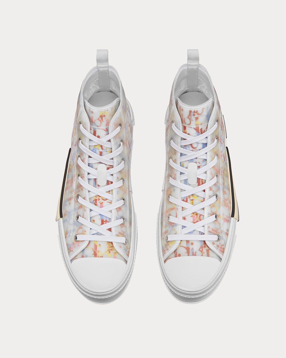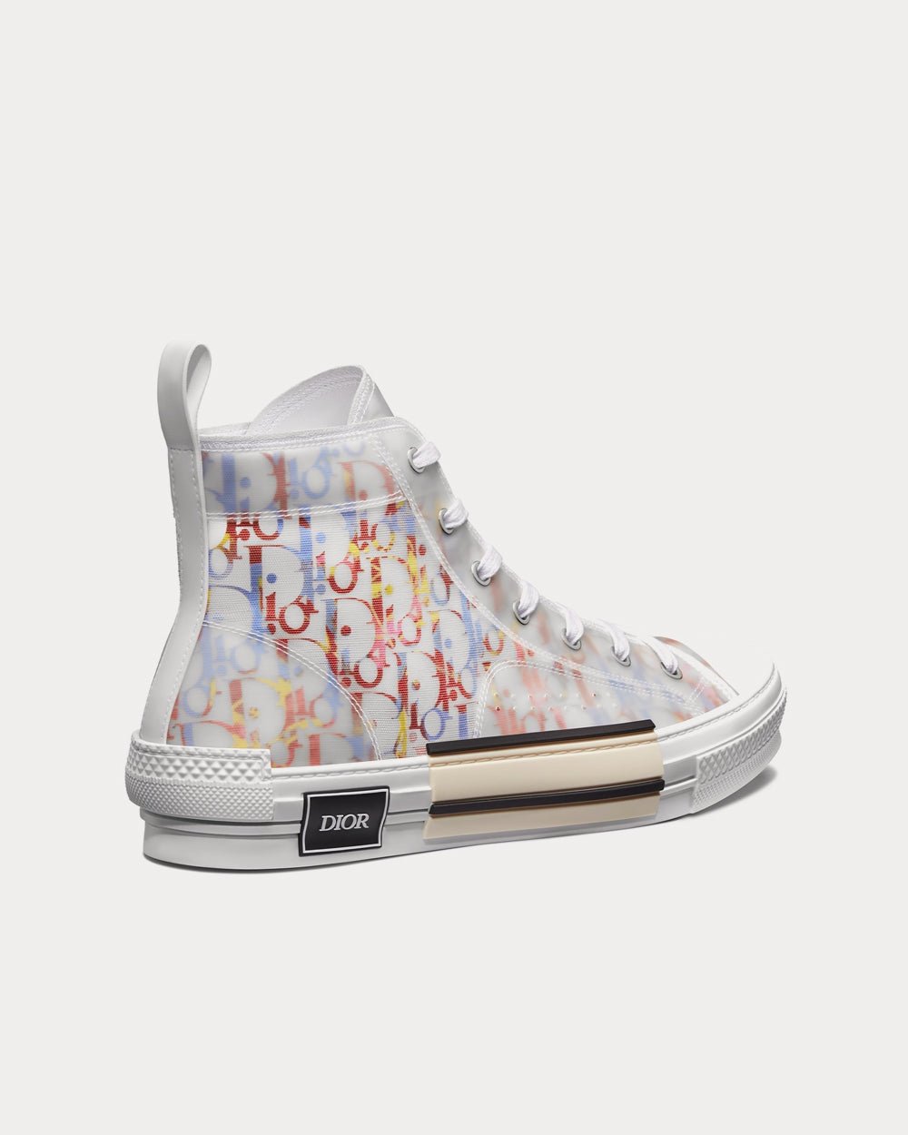 Les baskets montantes B23 Dior Oblique revisitent avec élégance une silhouette classique. Confectionnées en toile Dior Oblique multicolore emblématique, elles arborent une coque innovante en mesh transparent qui met en valeur l’intérieur imprimé. Les lacets blancs s’harmonisent avec une boucle arrière blanche, tandis que la semelle en caoutchouc blanc présente des détails déstructurés et assemblés, avec le logo « Dior » sur l’extérieur du pied.