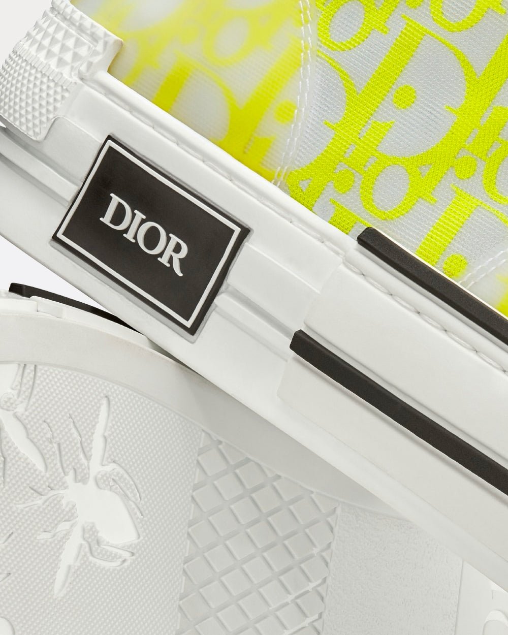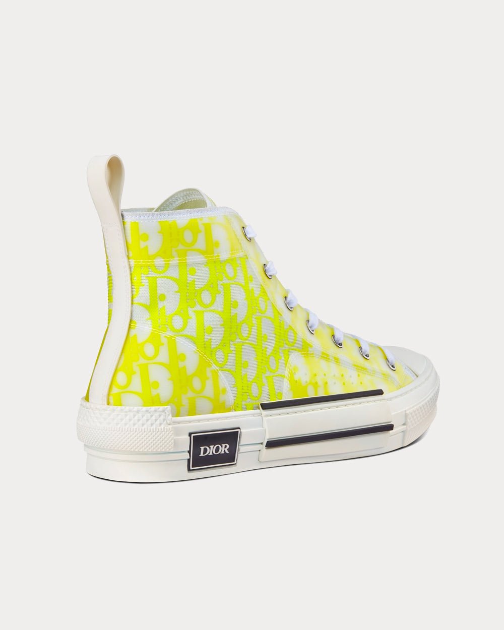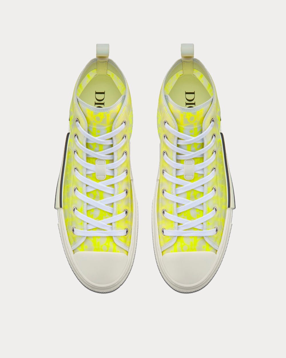 La sneaker montante B23 se distingue par sa superposition d’empiècements transparents et de toile Dior Oblique blanche et jaune. Des détails essentiels, tels que des œillets et un lacet sur le devant, une semelle en caoutchouc blanc, un bout arrondi et renforcé ainsi qu’une languette arrière, rappellent les codes de la sneaker montante classique. Rehaussée de détails contrastés sur les côtés, dont une signature « DIOR », elle s’accorde facilement avec toutes les tenues décontractées.