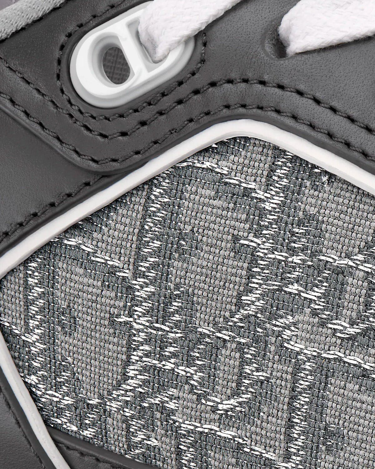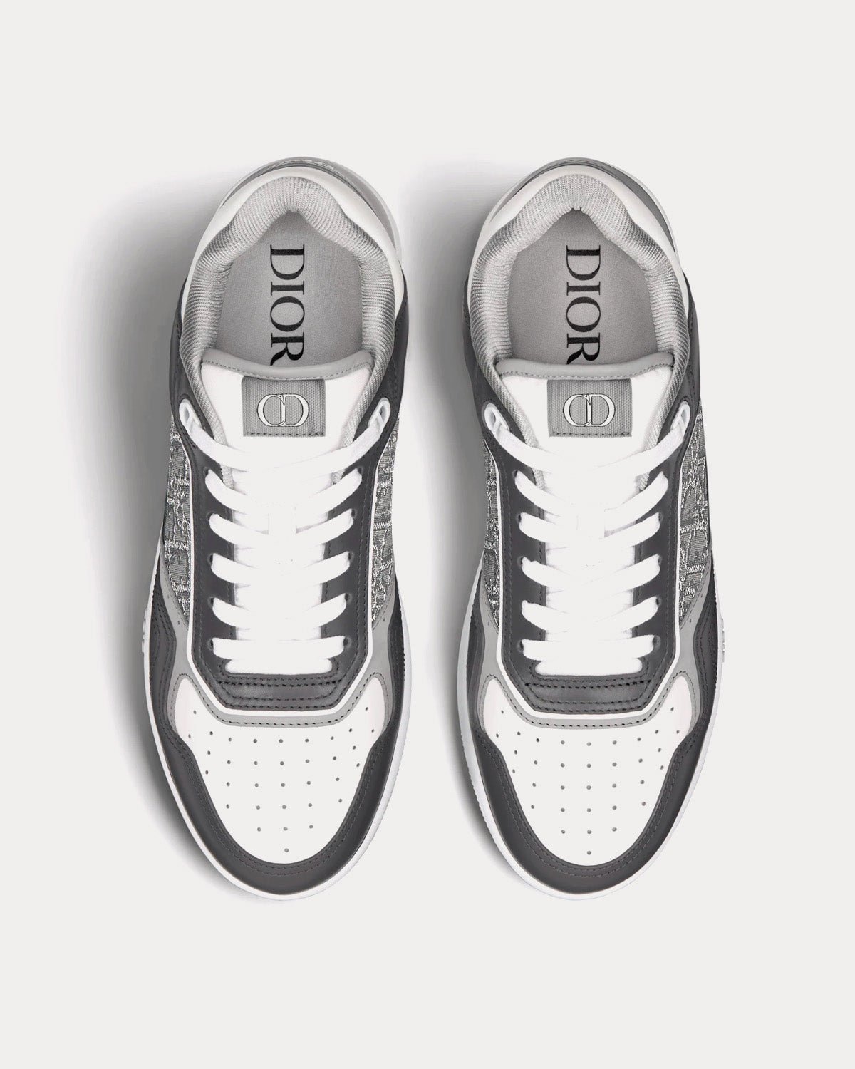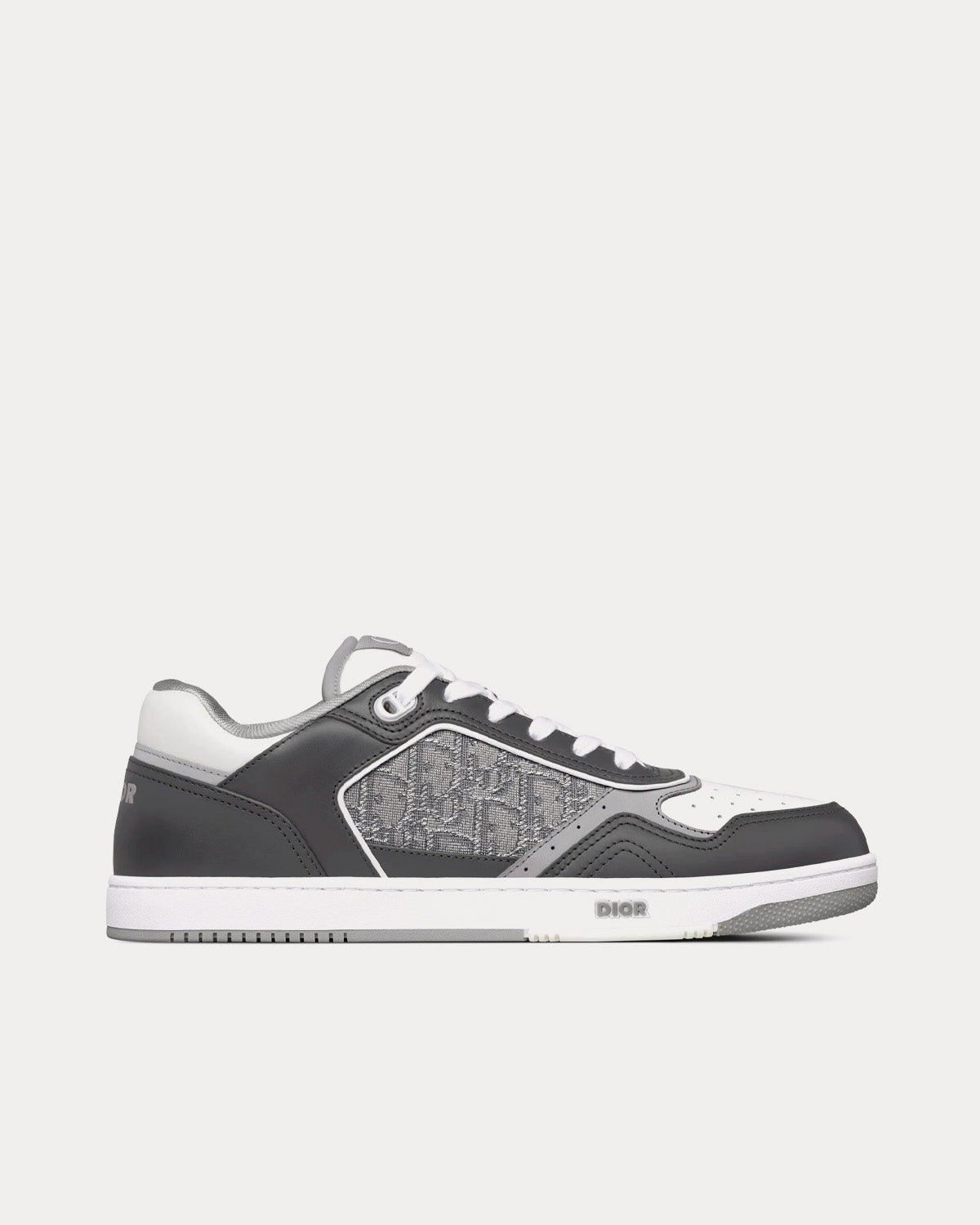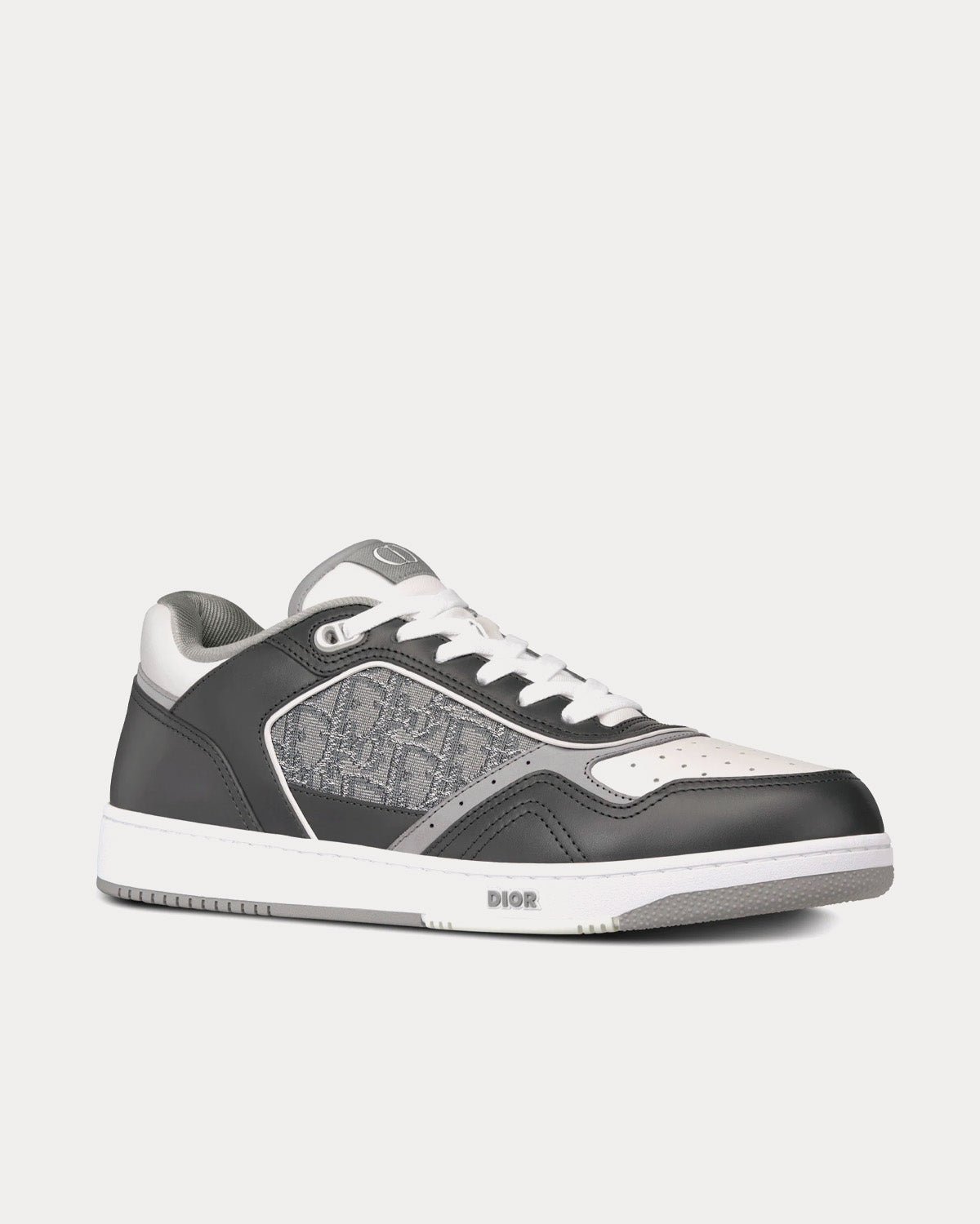 Baskets basses Dior B27 en cuir de veau lisse gris anthracite et blanc avec jacquard Dior Oblique et fil métallisé ruthéniumBaskets basses Dior B27 en cuir de veau lisse gris anthracite et blanc avec jacquard Dior Oblique et fil métallisé ruthénium