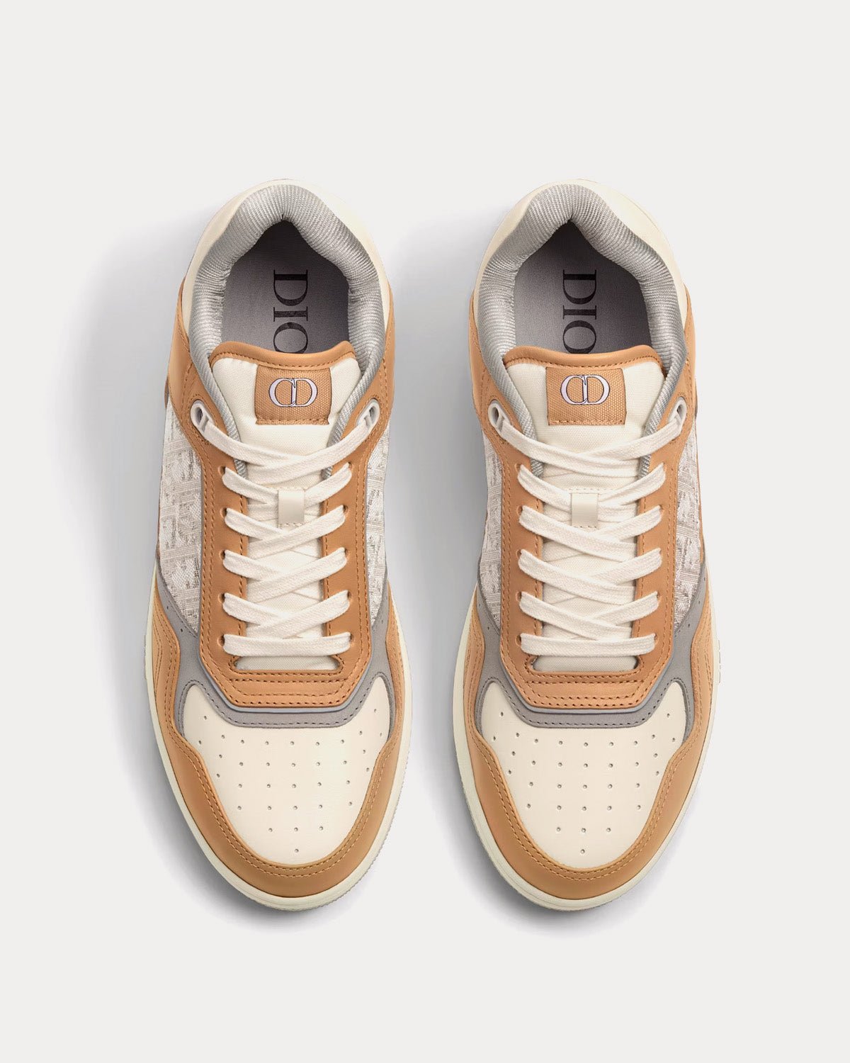 Baskets basses Dior B27 en cuir de veau lisse beige et crème avec jacquard Dior Oblique crème