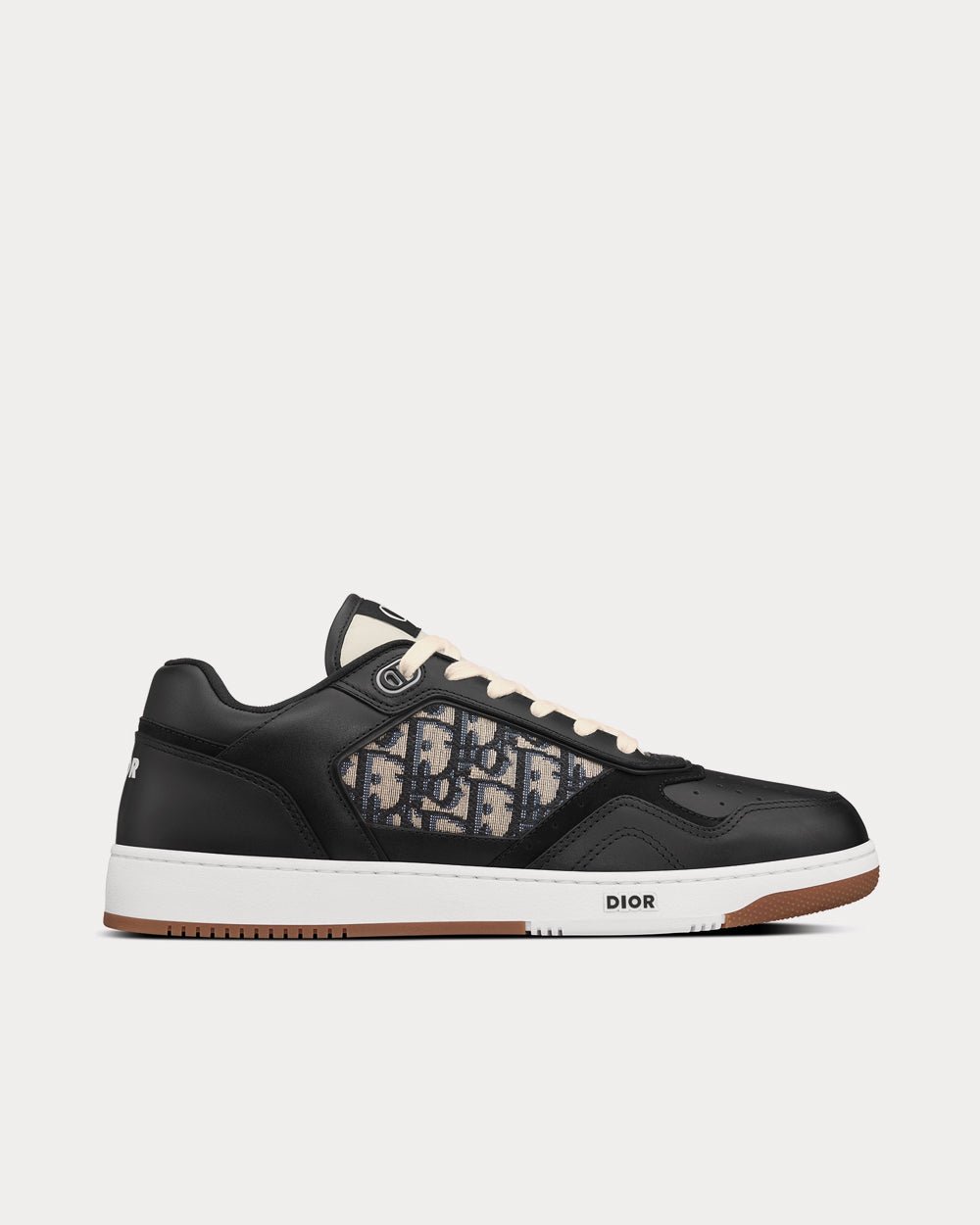 Baskets basses Dior B27 en cuir de veau lisse noir avec jacquard Dior Oblique beige et noir