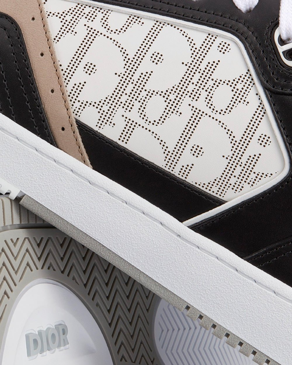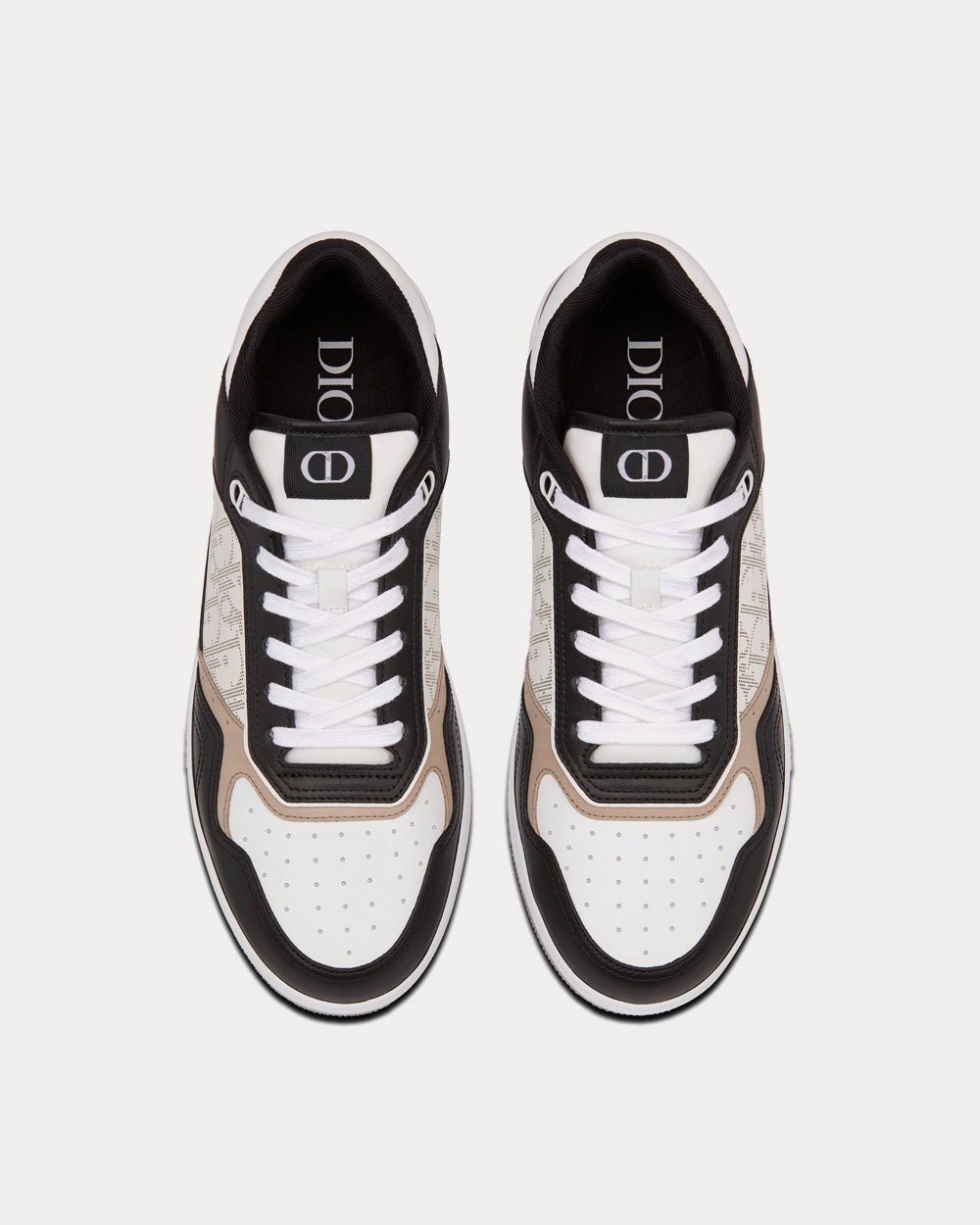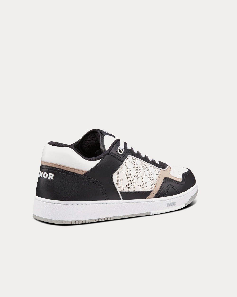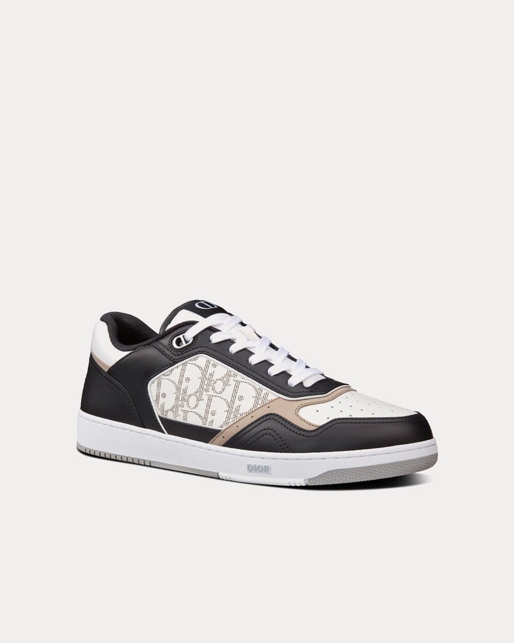 Baskets basses Dior B27 en cuir de veau lisse noir, blanc et beige avec cuir Dior Oblique Galaxy blanc