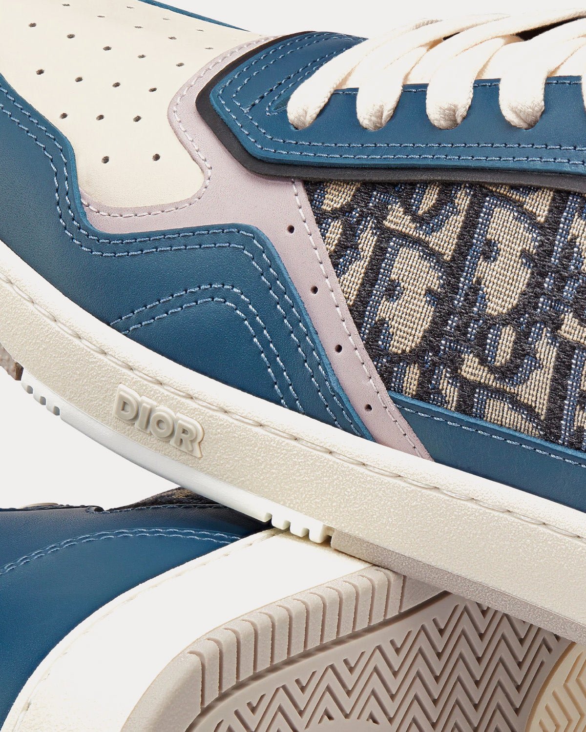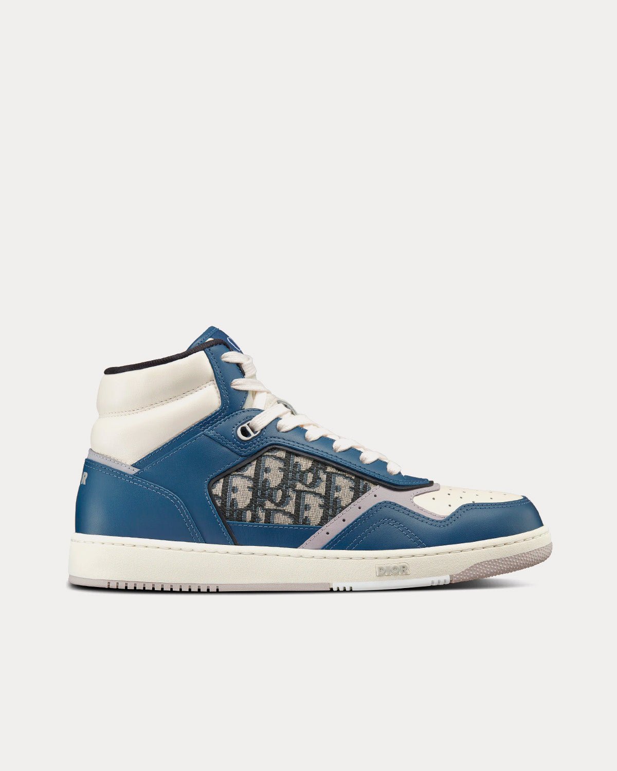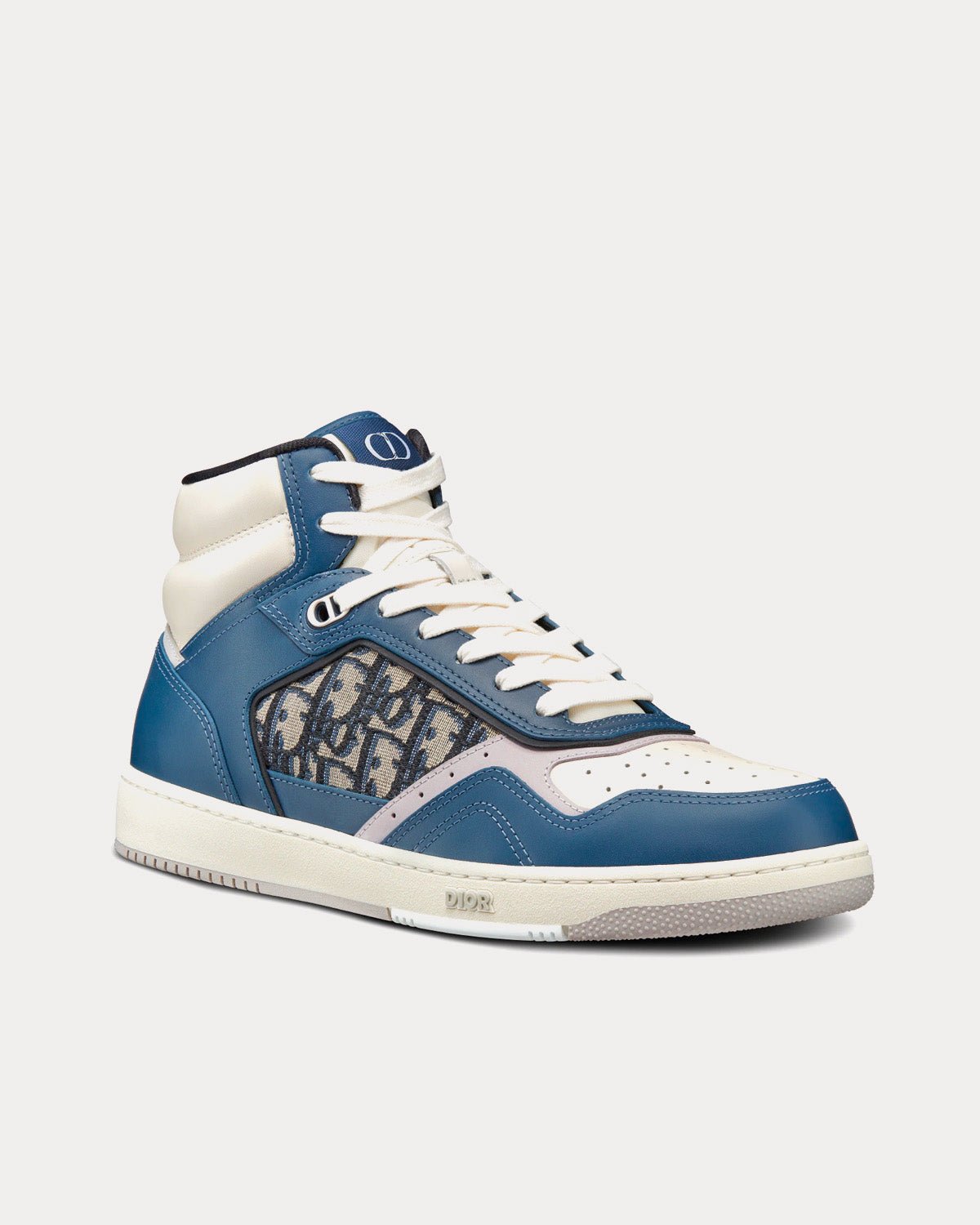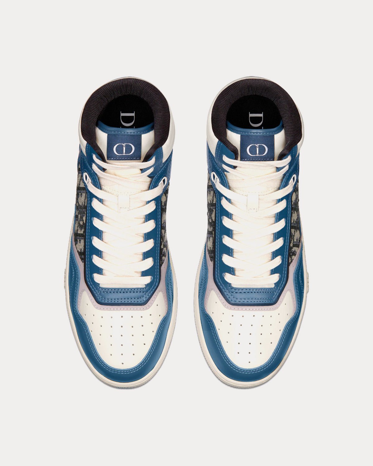 Baskets montantes Dior B27 en cuir de veau lisse bleu, crème et gris Dior avec jacquard Dior Oblique beige et noirBaskets montantes Dior B27 en cuir de veau lisse bleu, crème et gris Dior avec jacquard Dior Oblique beige et noir