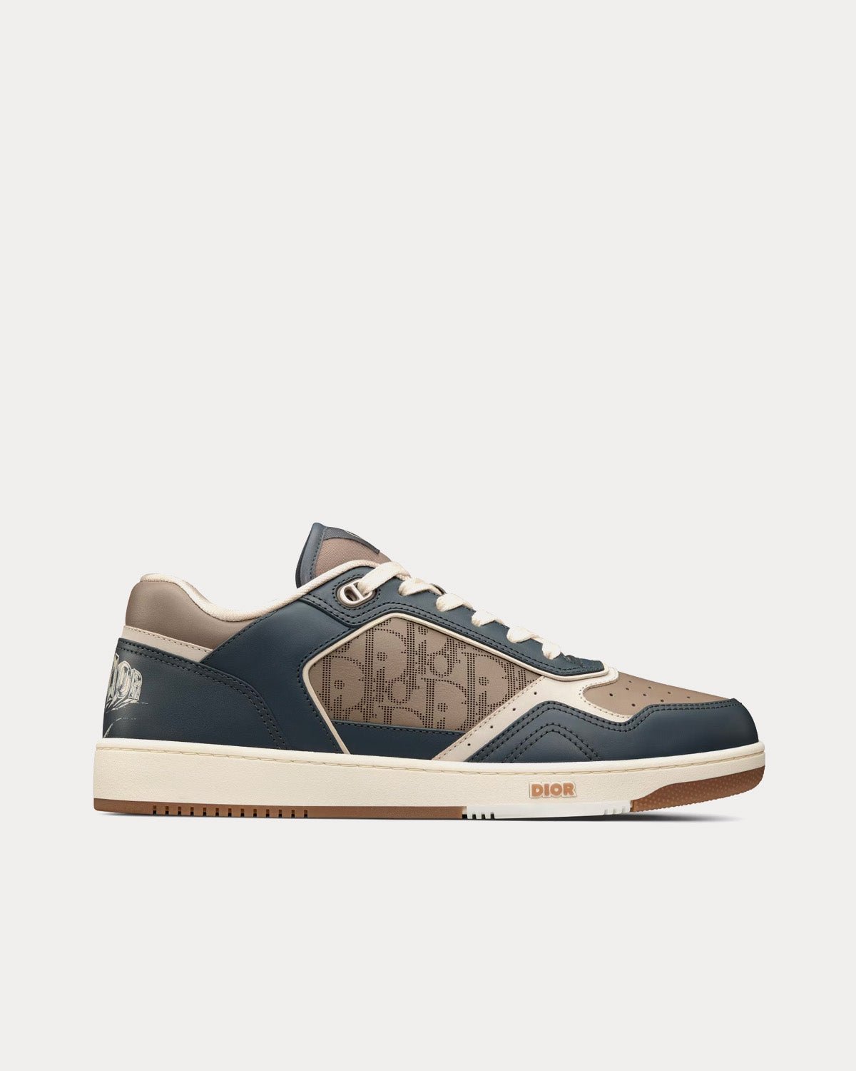 Baskets basses Dior B27 en cuir de veau lisse marron et gris foncé avec cuir Dior Oblique Galaxy marron