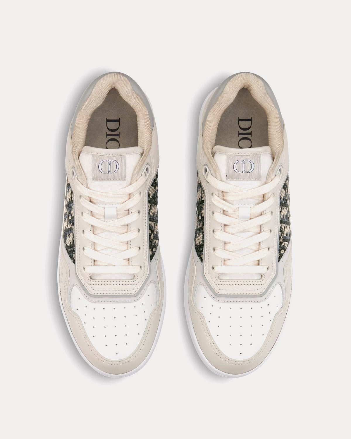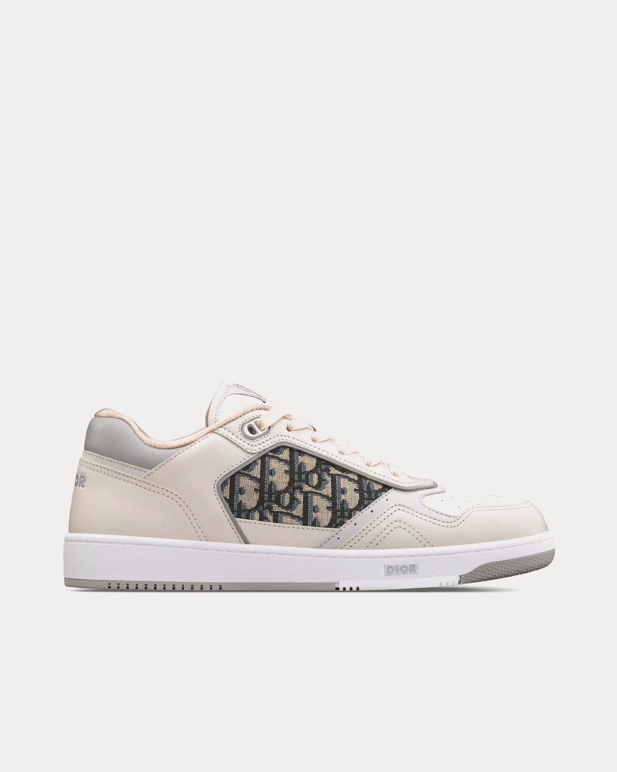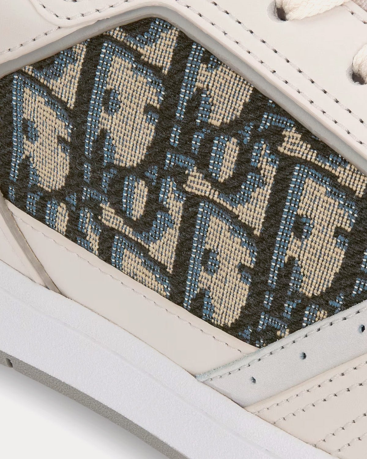 Baskets basses Dior B27 en cuir de veau lisse crème et blanc avec jacquard Dior Oblique beige et noir