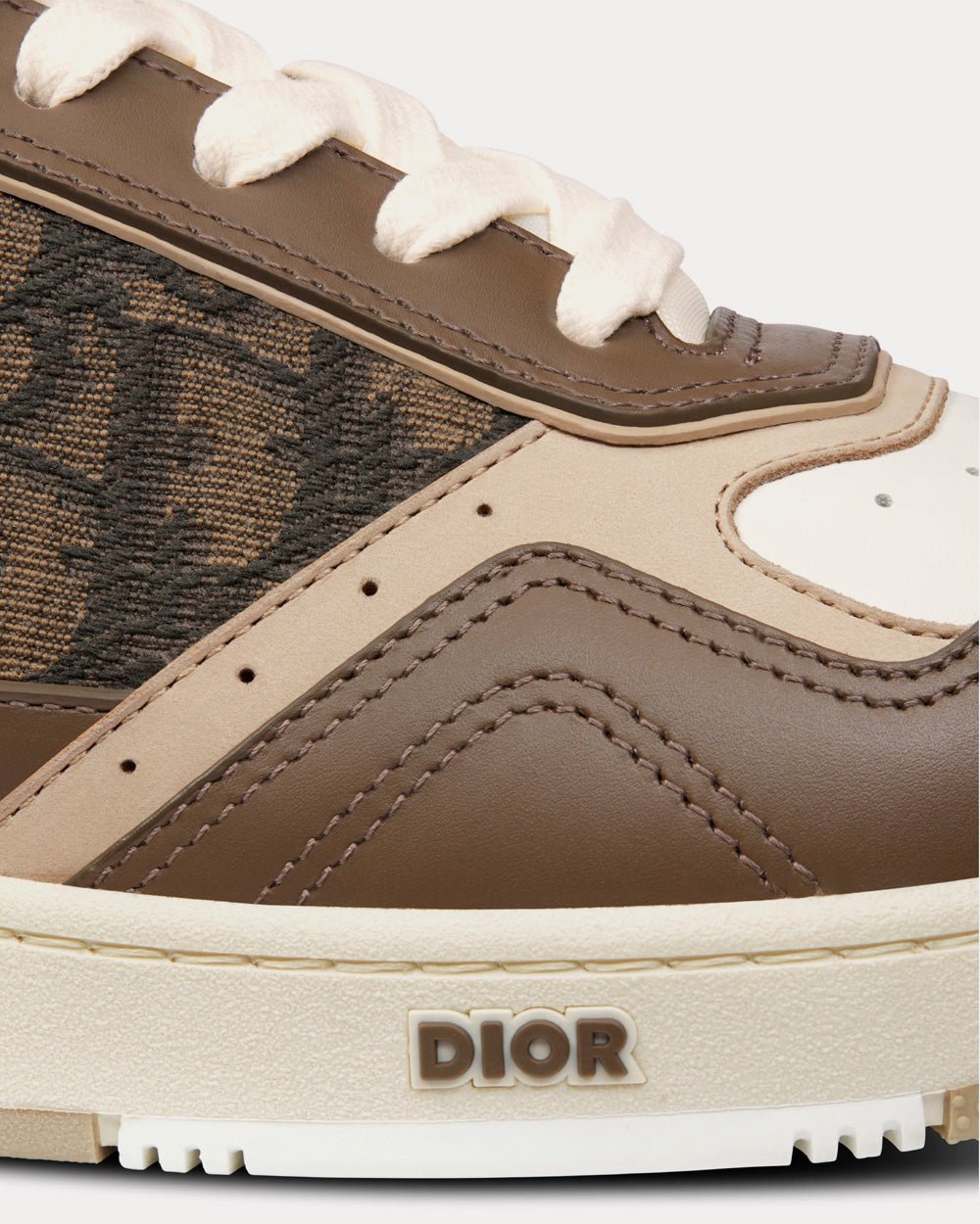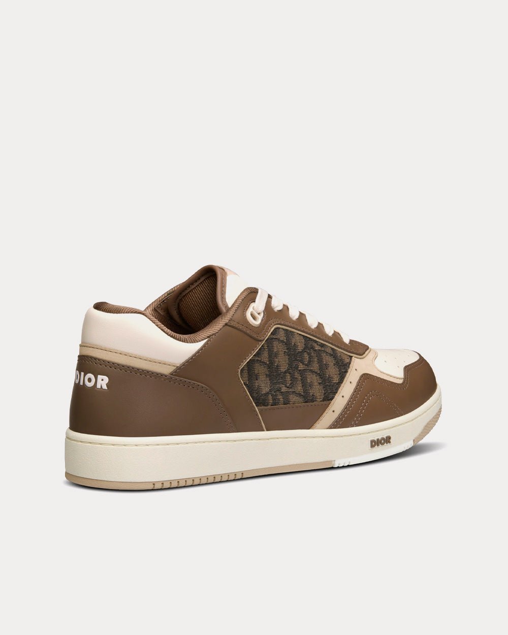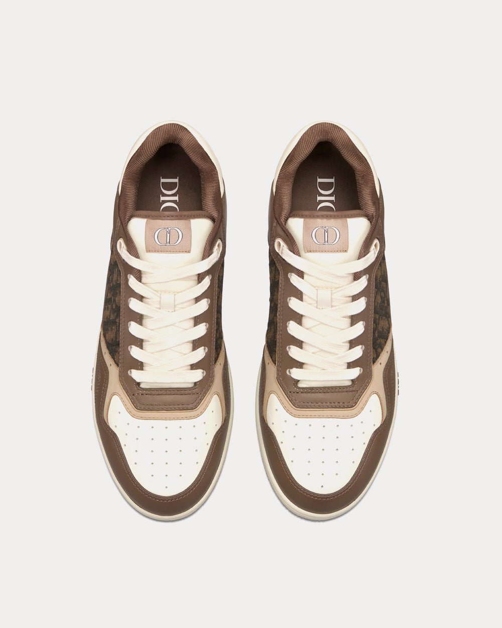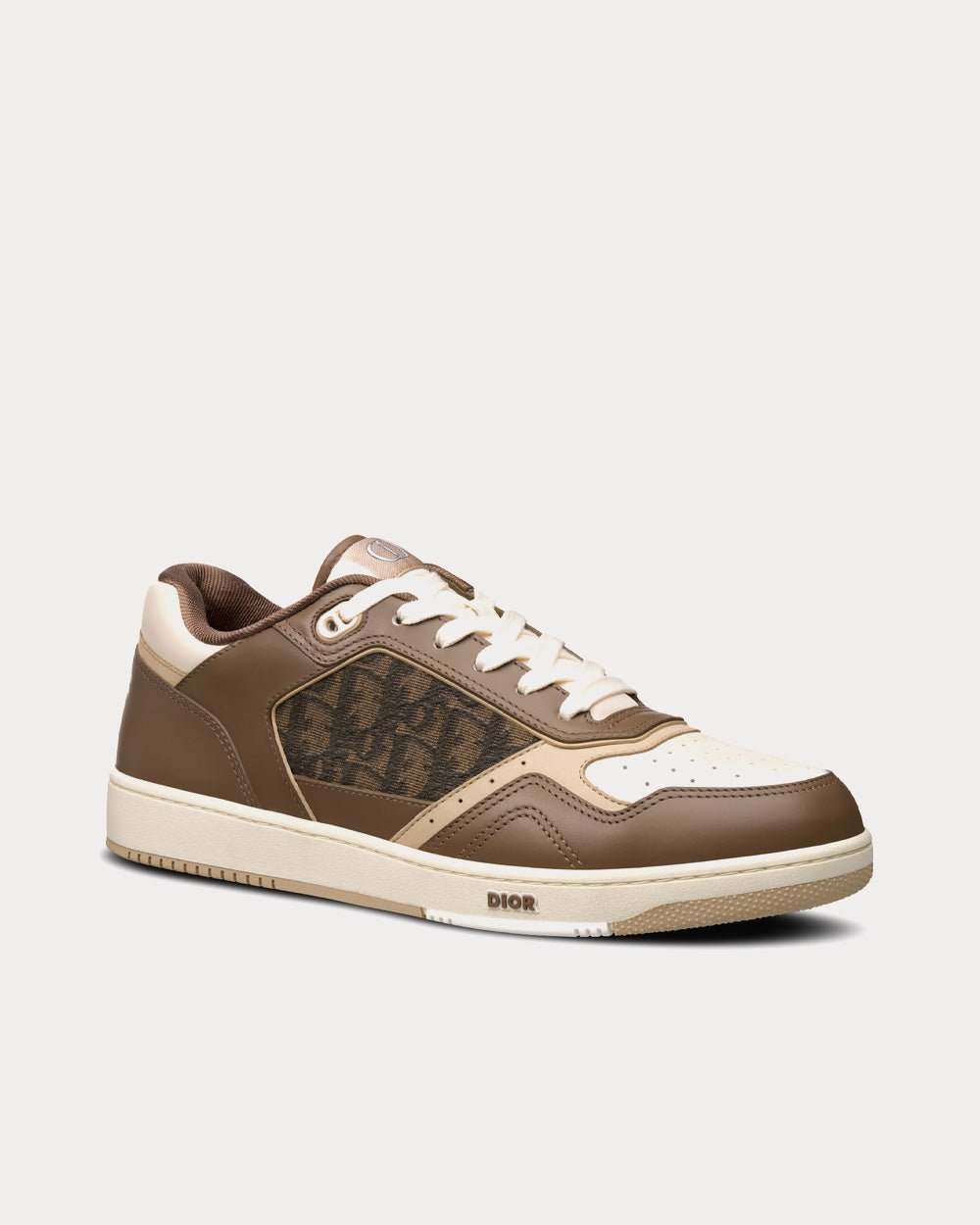 Baskets basses Dior B27 en cuir de veau lisse ébène, crème et blanc avec jacquard Dior Oblique ébène et noir