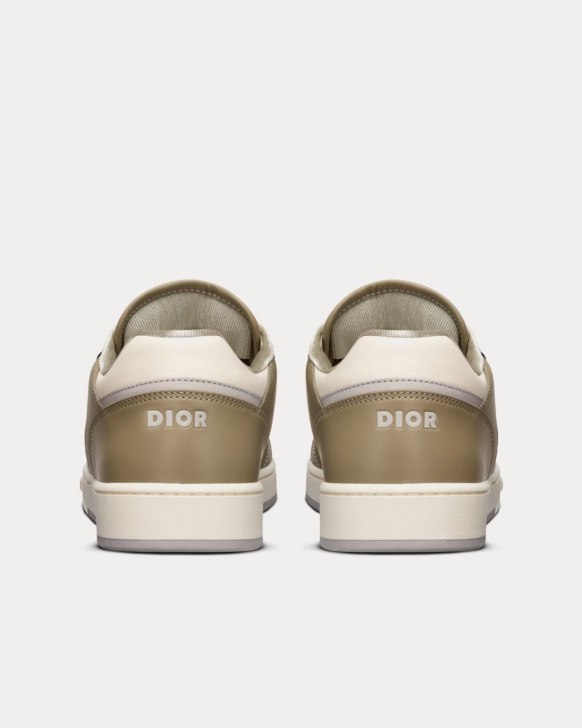 Baskets basses Dior B27 en cuir de veau lisse kaki et crème avec cuir Dior Oblique Galaxy crème
